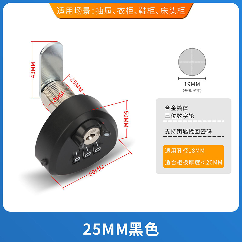 柜子抽屉锁办公桌家具锁芯更衣柜文件柜门信箱奶箱转舌暗锁密码锁