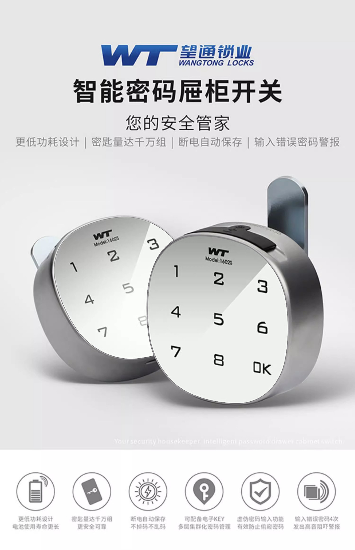白色电子密码锁转舌锁铁皮柜锁更衣柜密码锁文件柜智能锁鞋柜锁