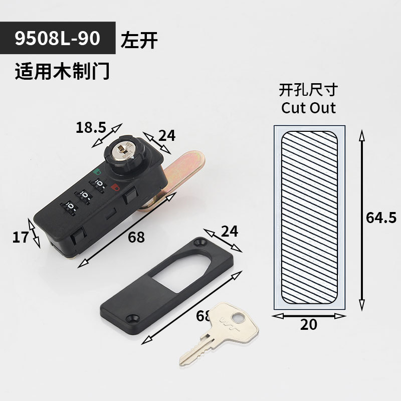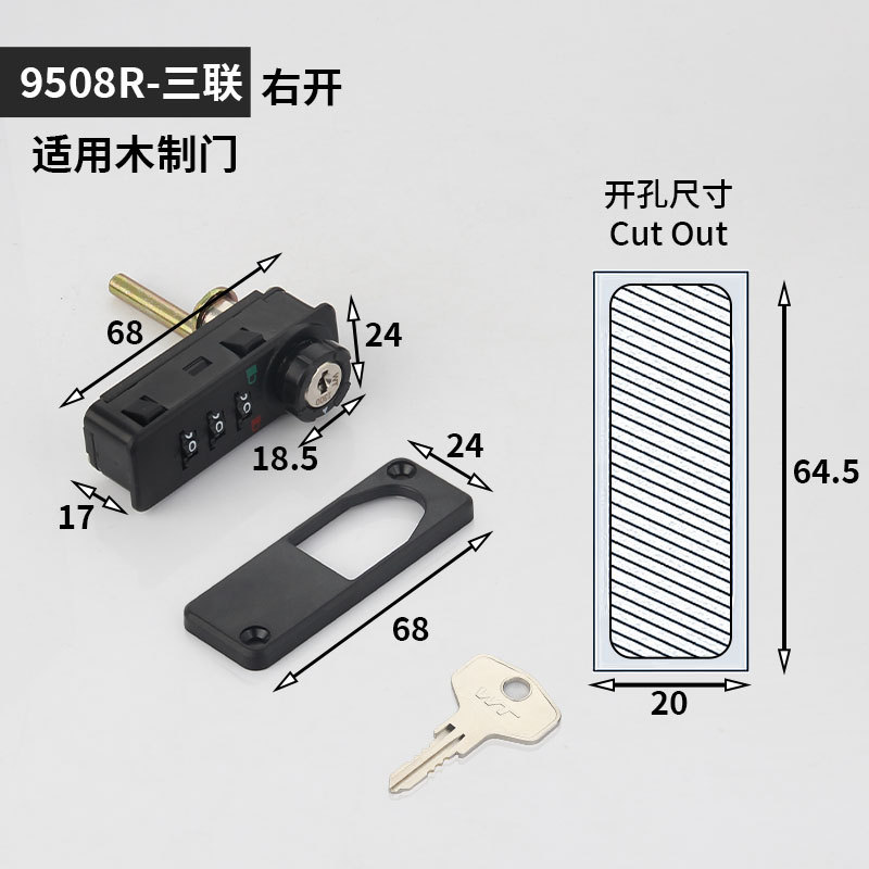 橱门密码锁机械锁木柜铁皮文件柜衣柜办公档案柜抽屉锁转舌锁9508