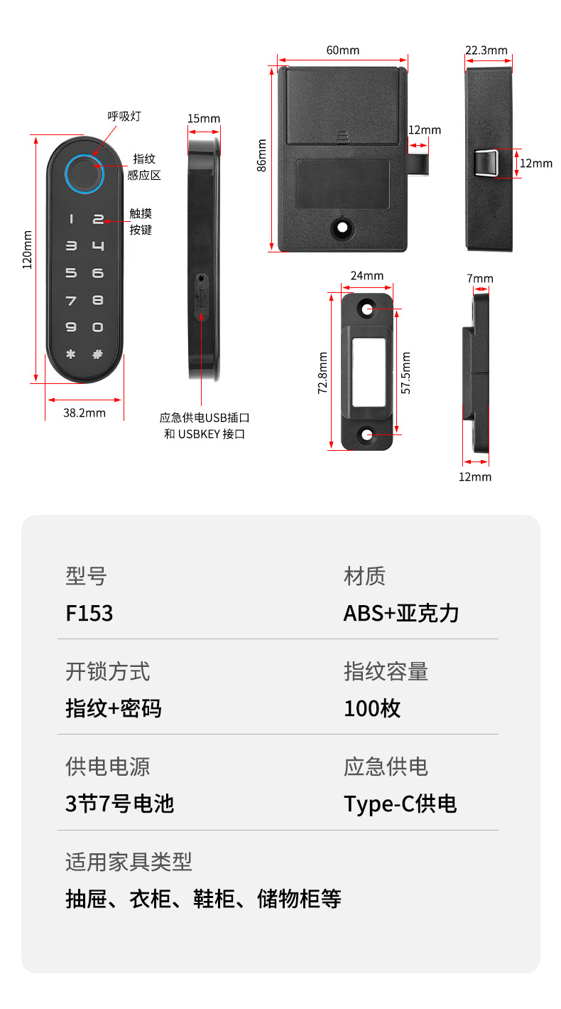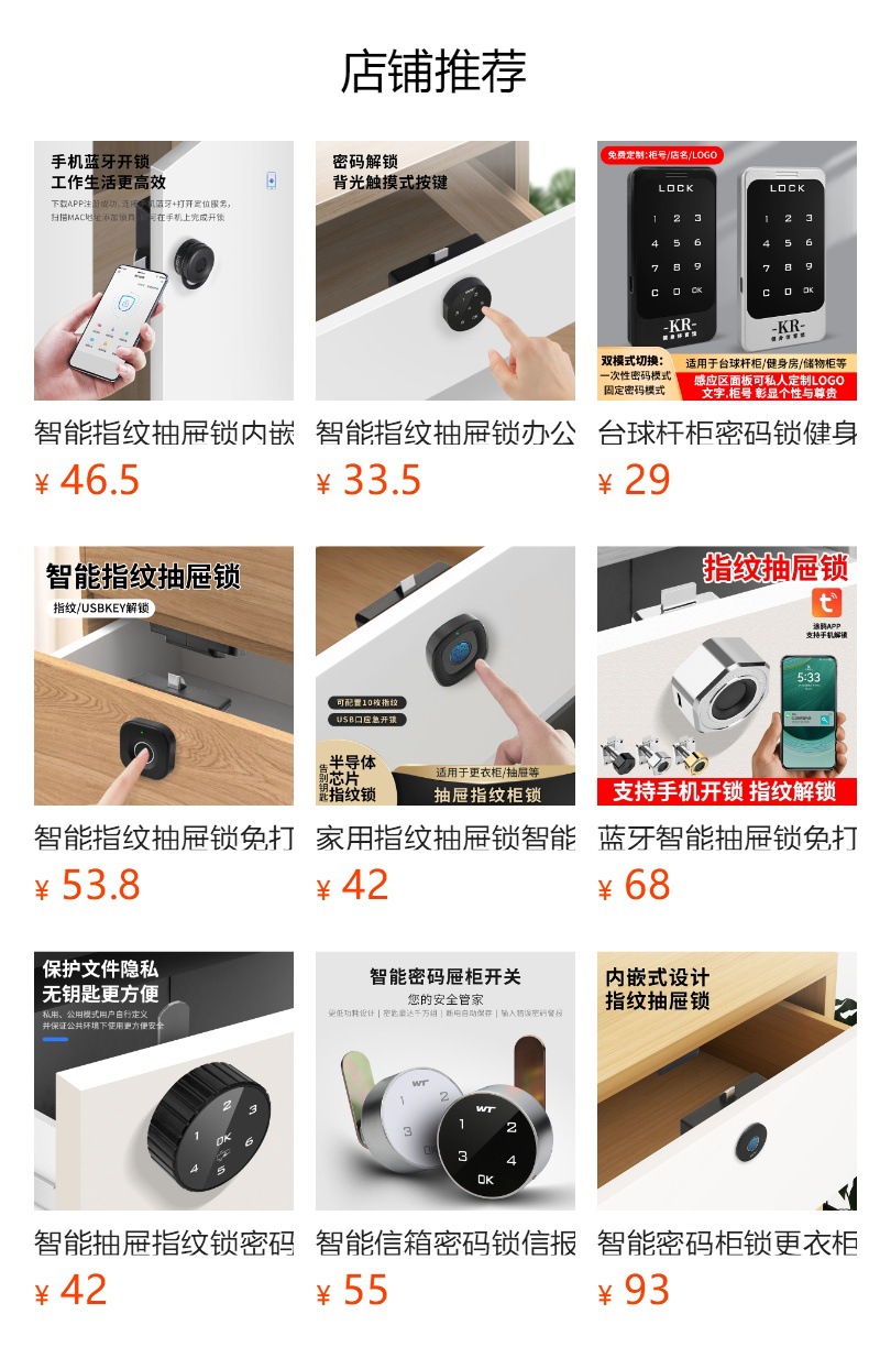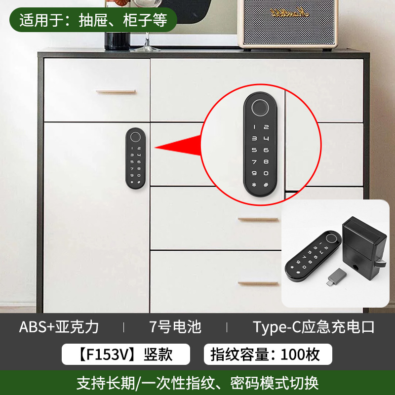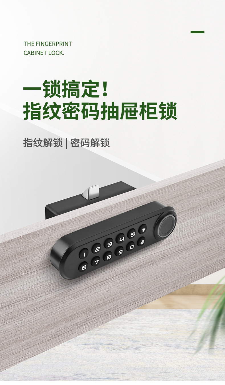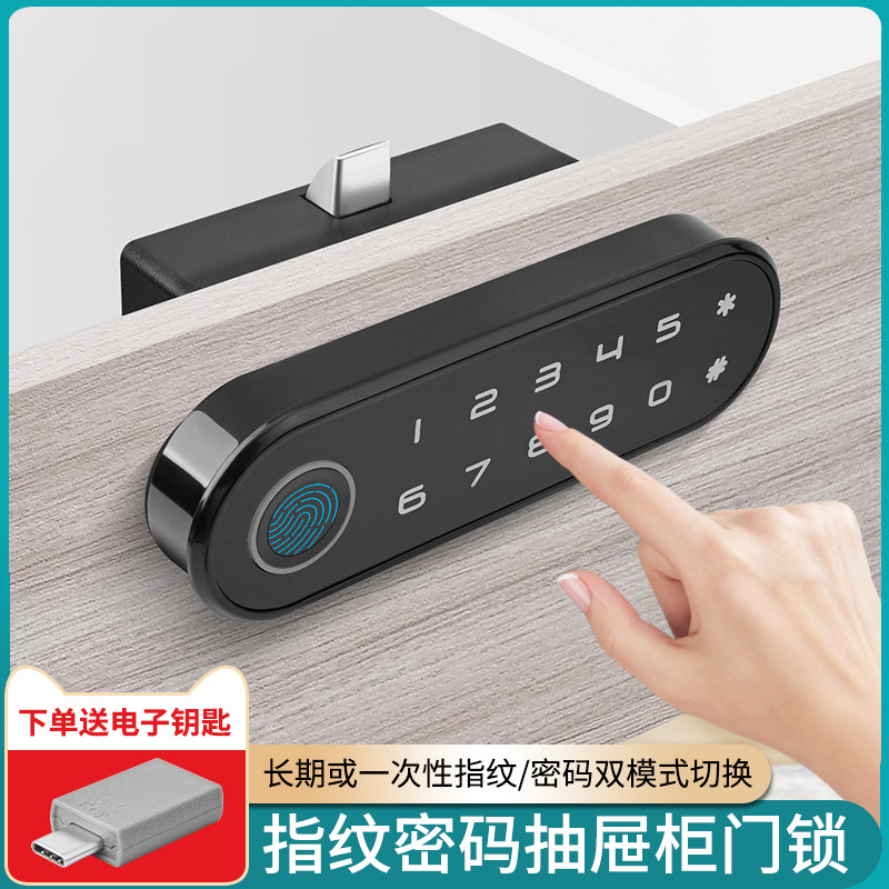 智能指纹抽屉锁办公室文件柜门外鞋柜锁家用床头储物柜防盗密码锁