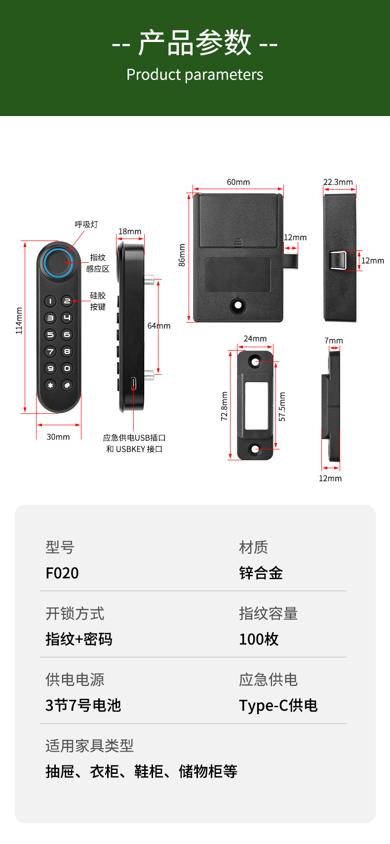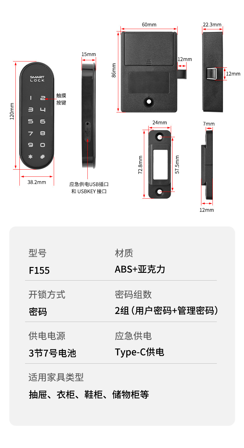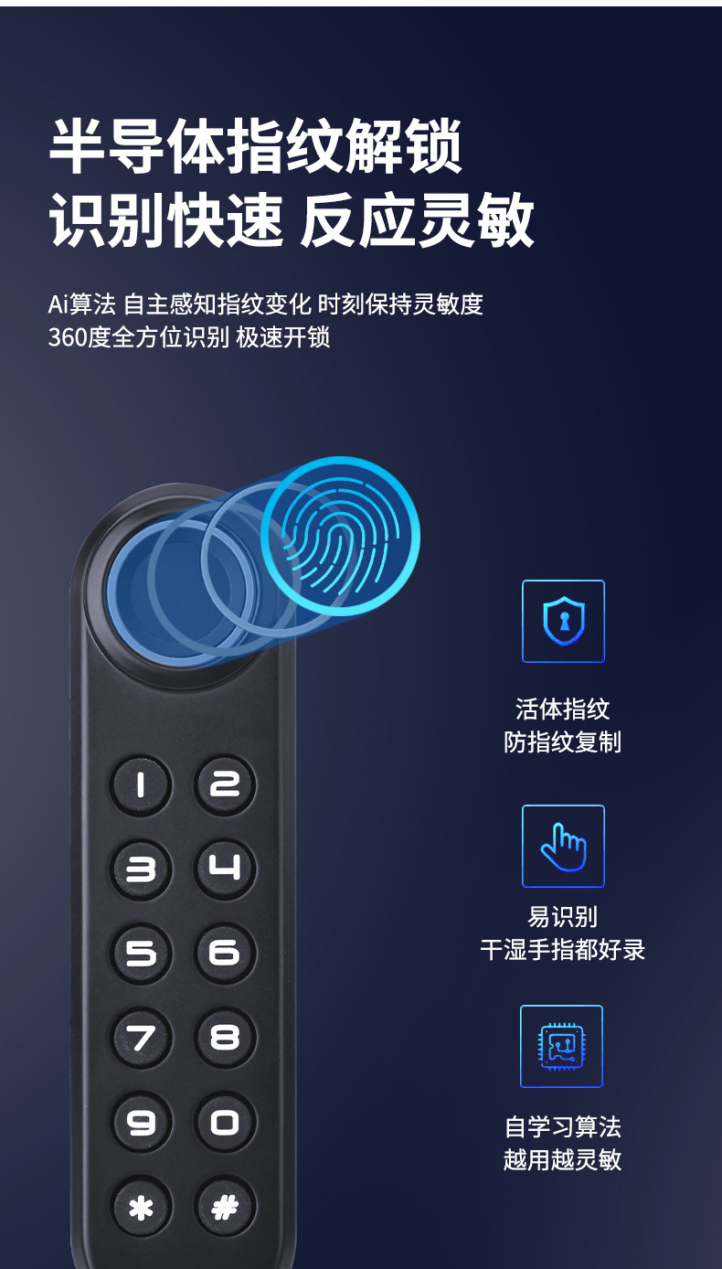 智能指纹抽屉锁办公室文件柜门外鞋柜锁家用床头储物柜防盗密码锁