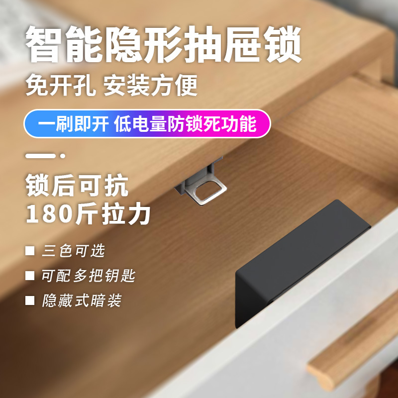 免打孔电子感应锁抽屉锁暗锁办公桌抽屉衣柜锁智能刷卡对开门柜锁