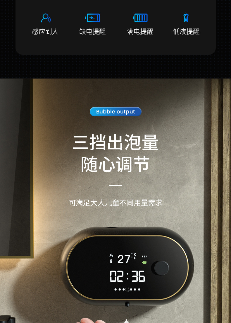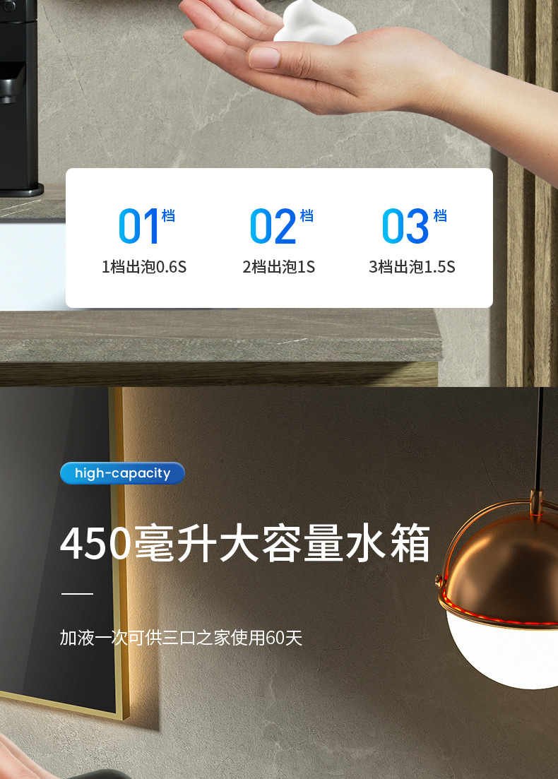 W2弘雅智能自动泡沫洗手机感应皂液器电动洗手液机壁挂式usb充电