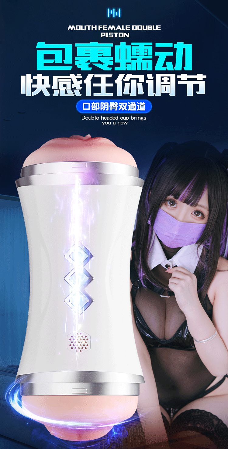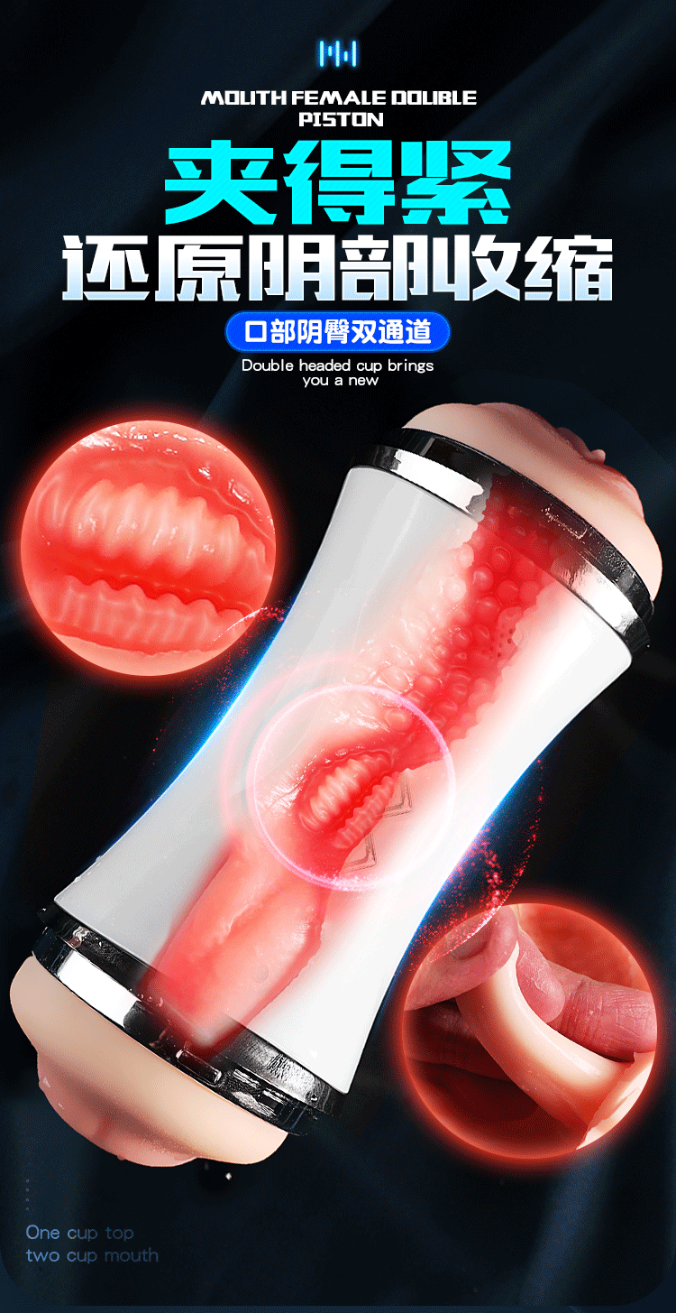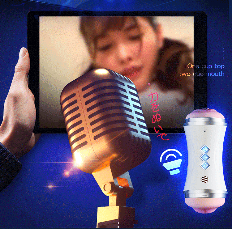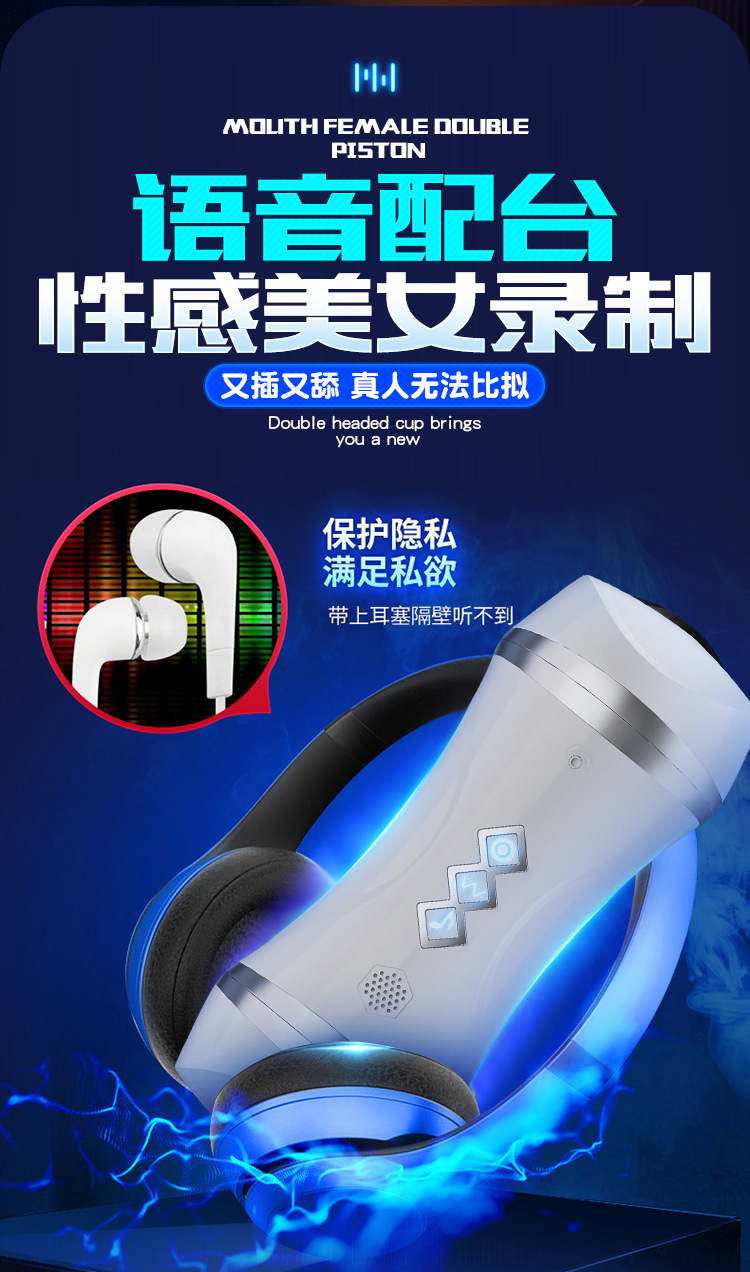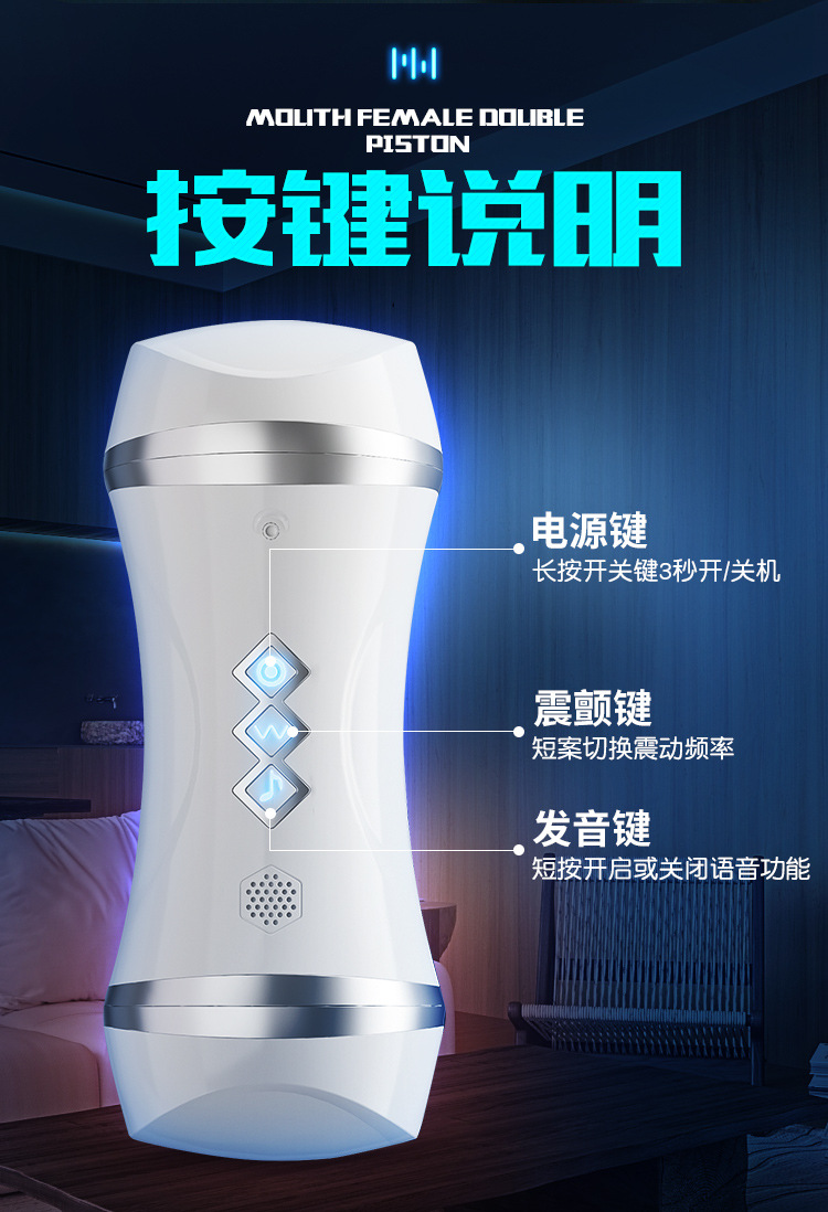 双头口阴飞机杯带吸盘互动发音成人用品玩具名器舌舔男用性自慰器