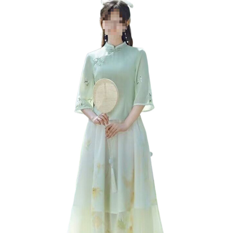 新中式汉元素禅意茶服旗袍两件套改良汉服女文艺国风仙气上衣套装