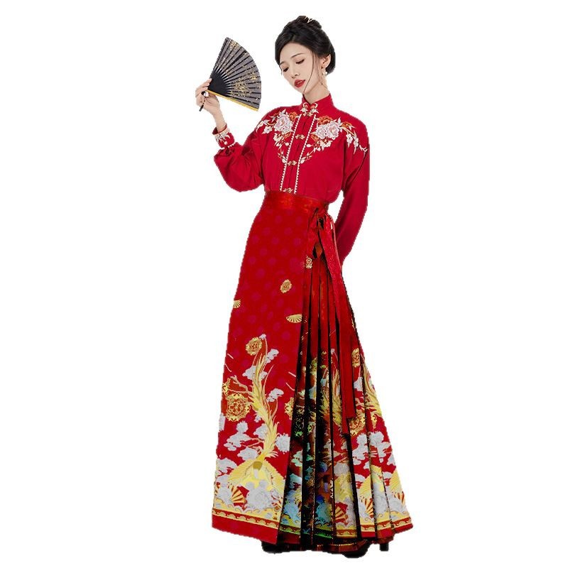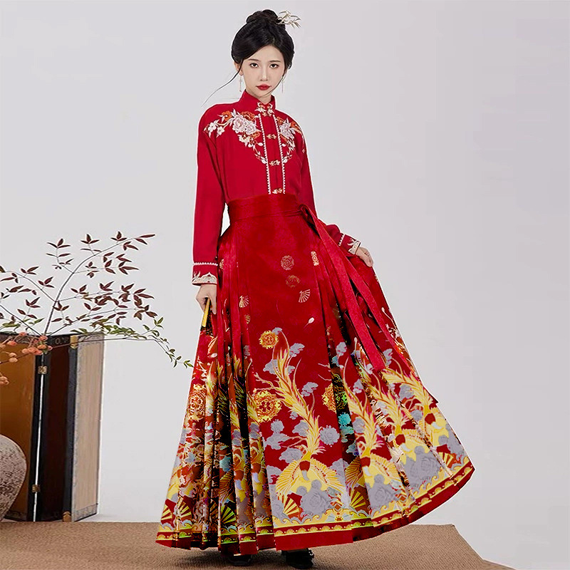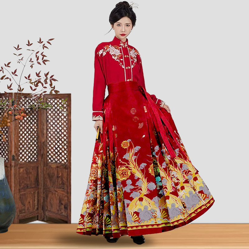 马面裙女春秋冬季高级感套装马面百褶批发垂感汉服女【玫影凤姿】