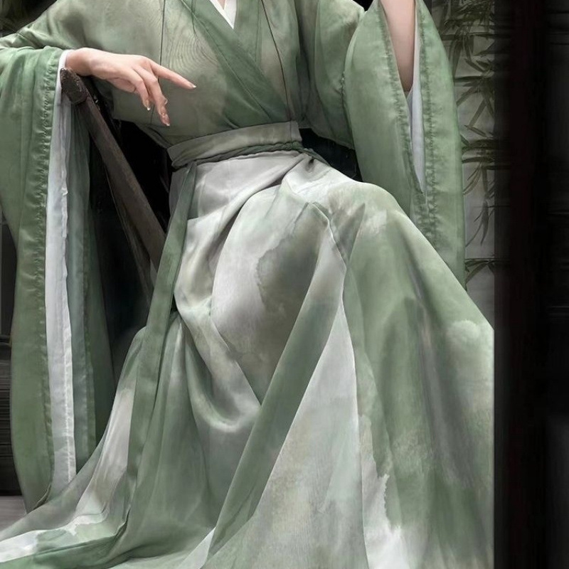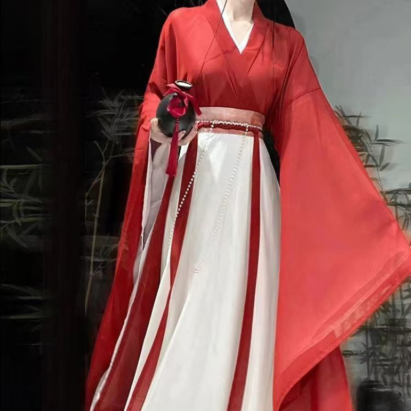 汉服女魏晋风交领大袖襦齐腰八破裙春秋战国袍款套装亚马逊跨境