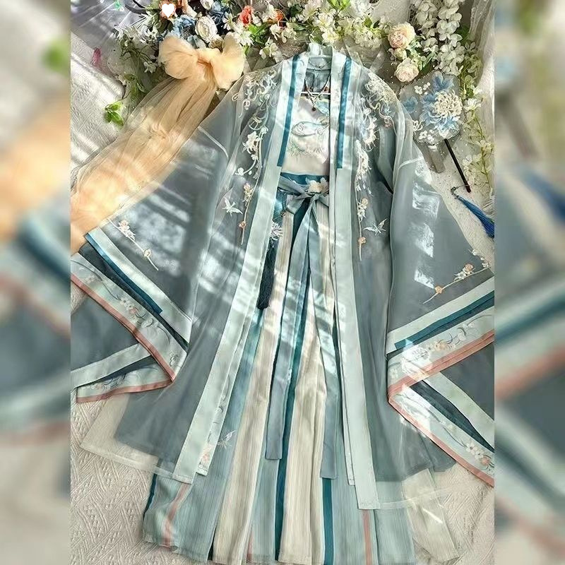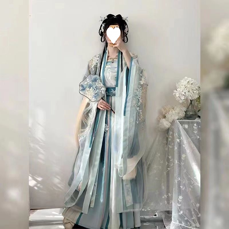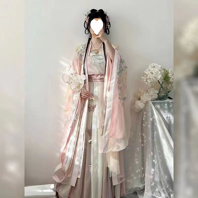花汀月正版汉服裙蝶恋花语齐腰大袖衫百褶绣花宋制汉服马面裙厂家