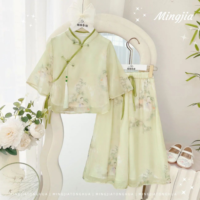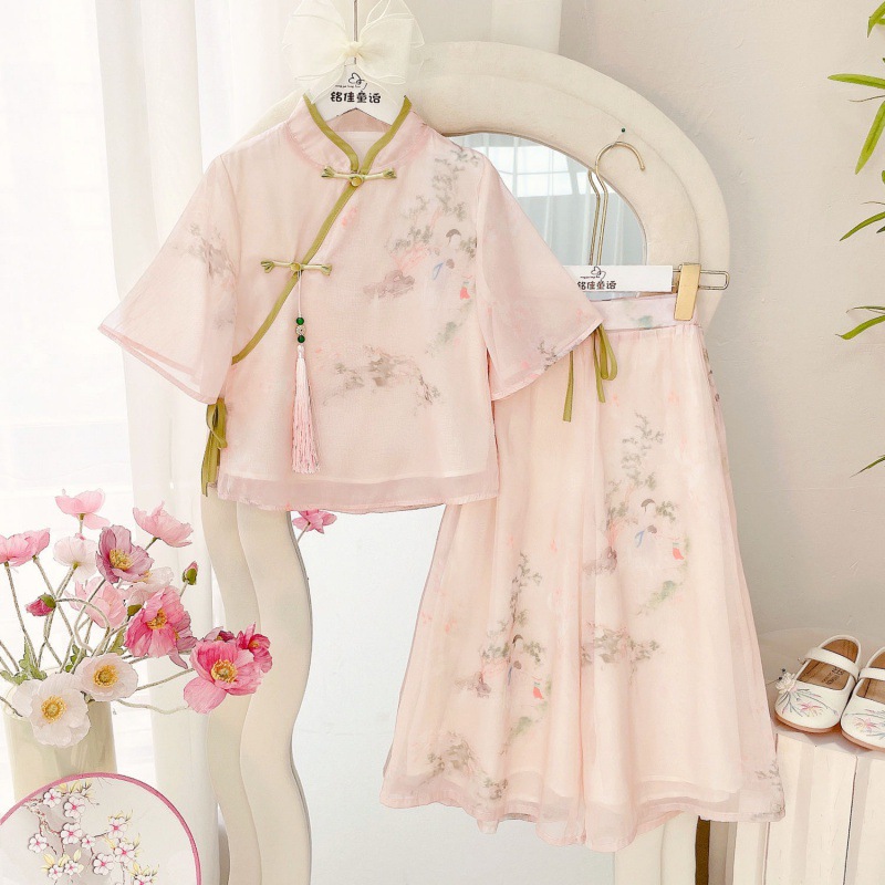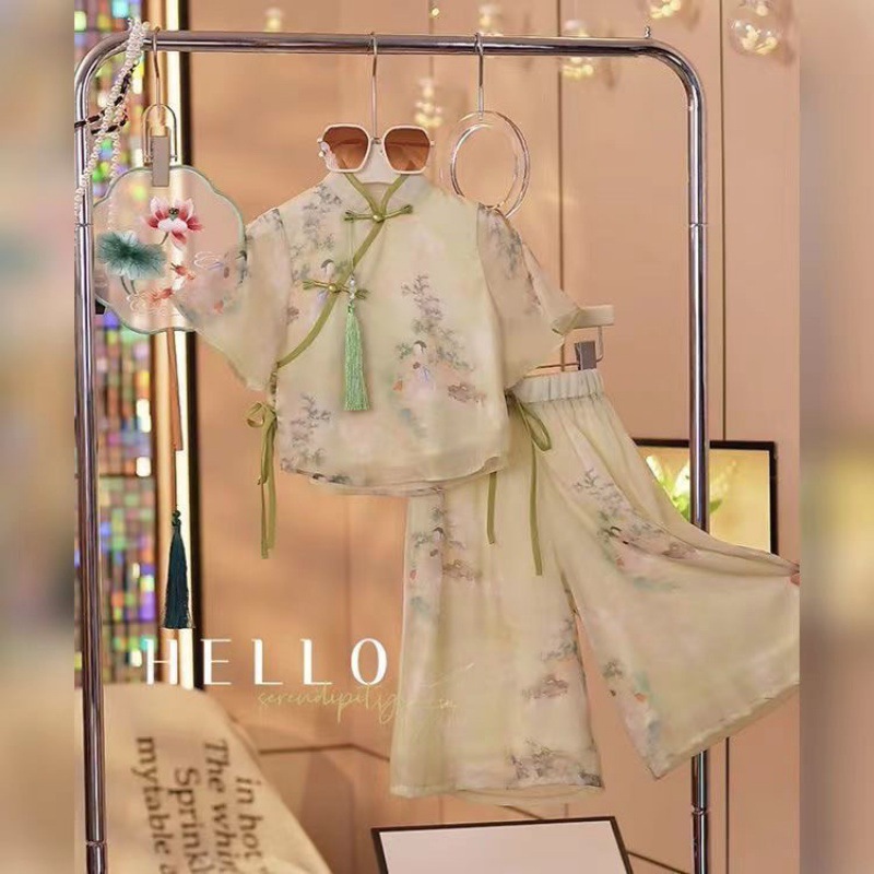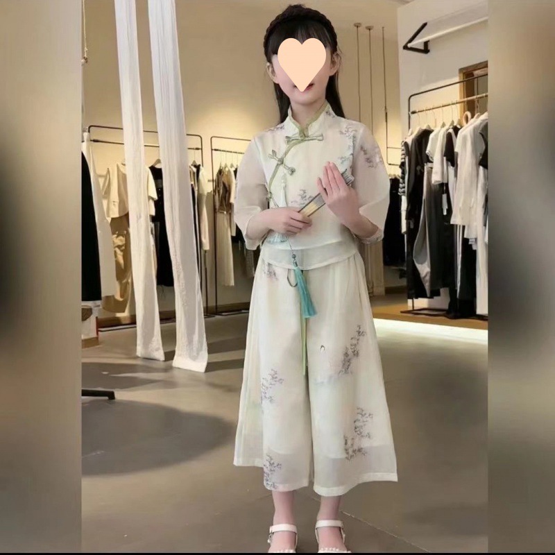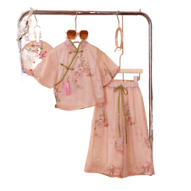 女童夏装汉服套装2024新款中国风唐装中大儿童女孩新中式古装短袖