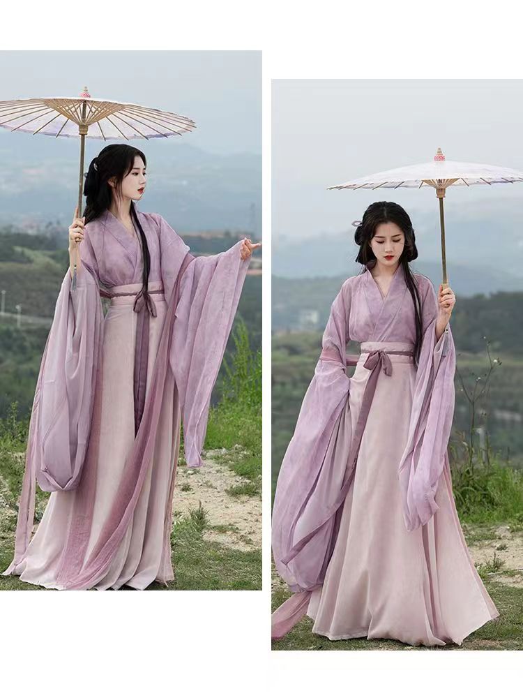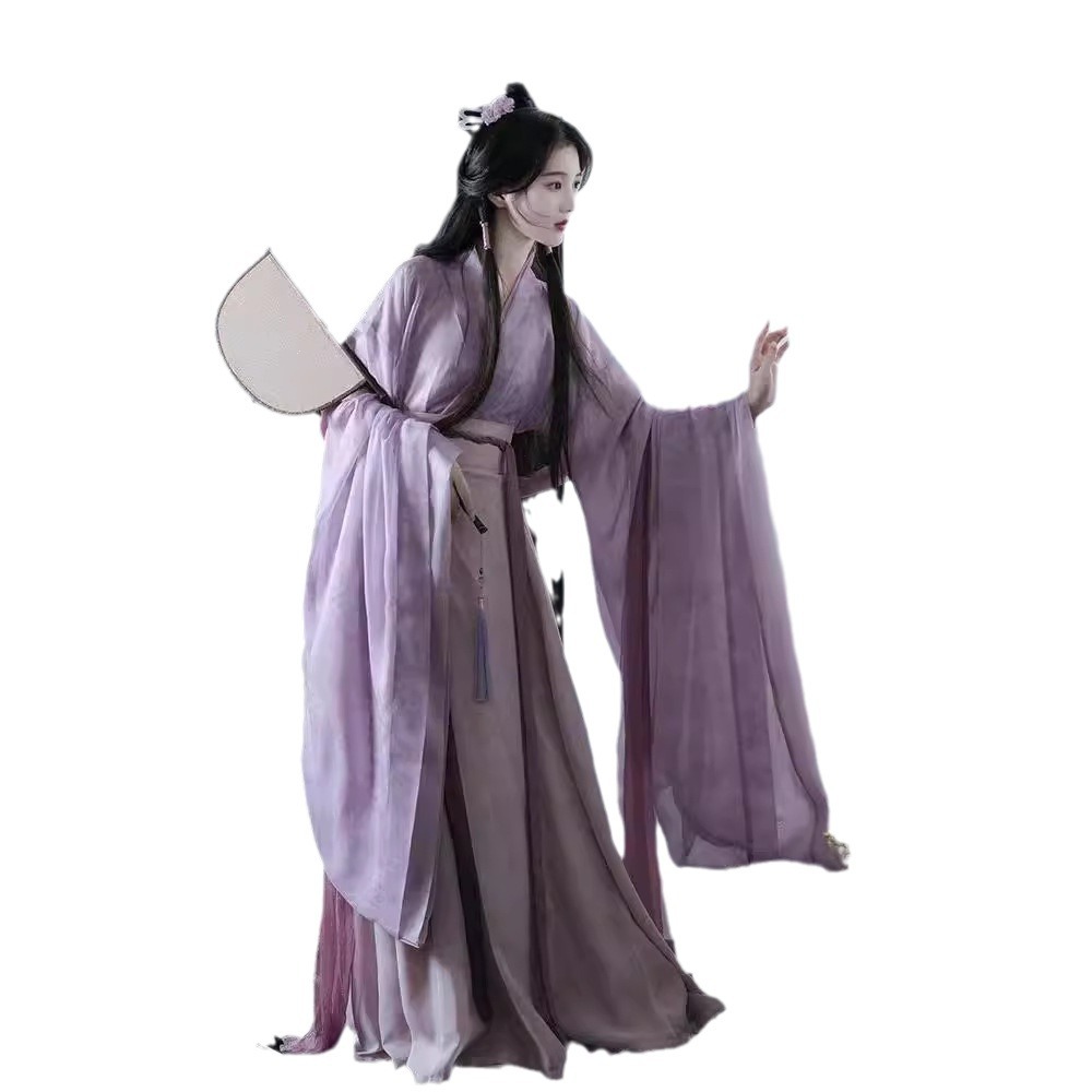 半夏正品魏晋风成人汉服女学生印花交领广袖中国风八破裙古装日常