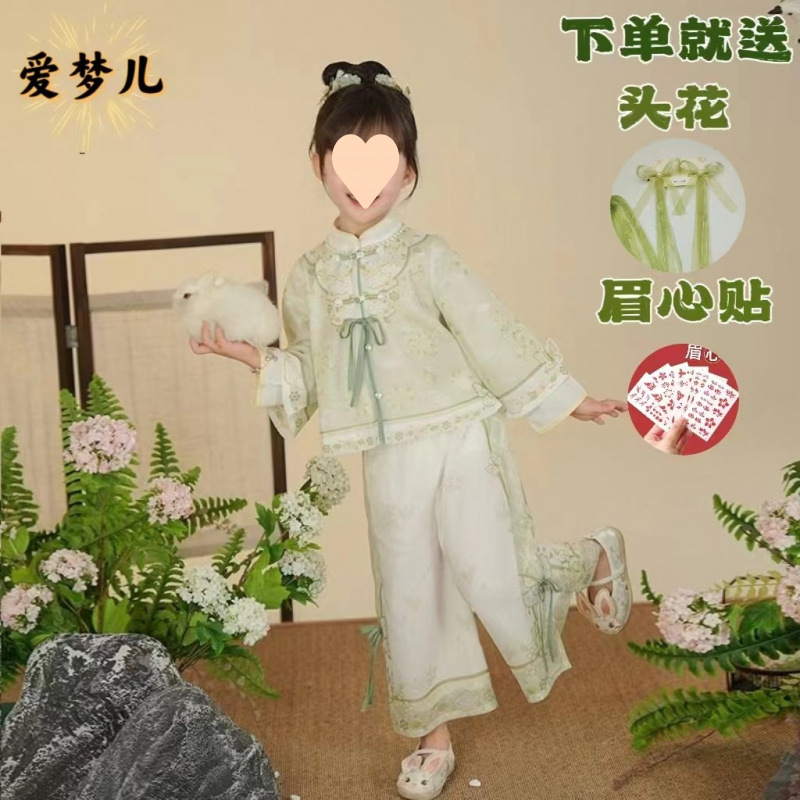 女童夏装汉服套装2024新款中国风唐装中式儿童古装复古潮款两件套