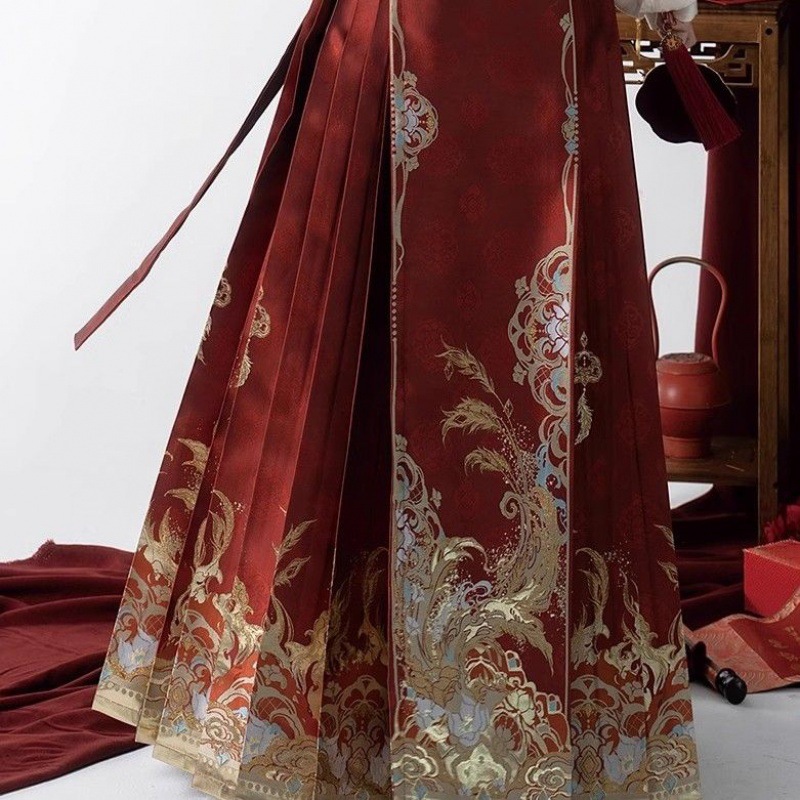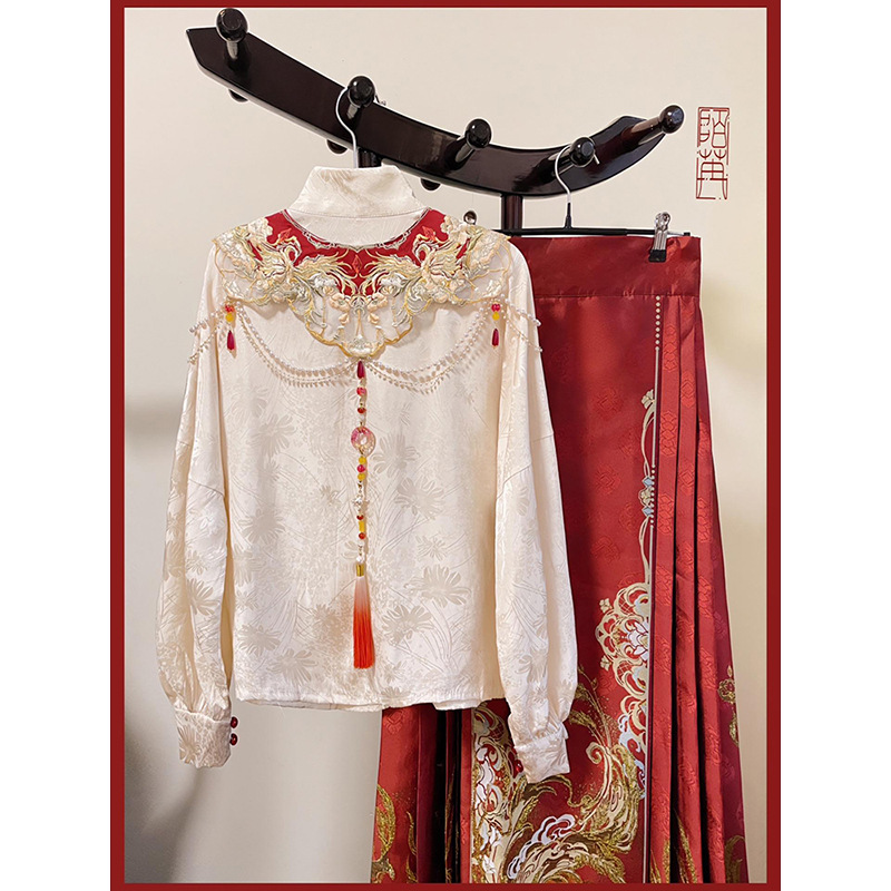 中式汉服女敬酒服订婚服套装刺绣上衣马面裙云肩国风红色马面裙女