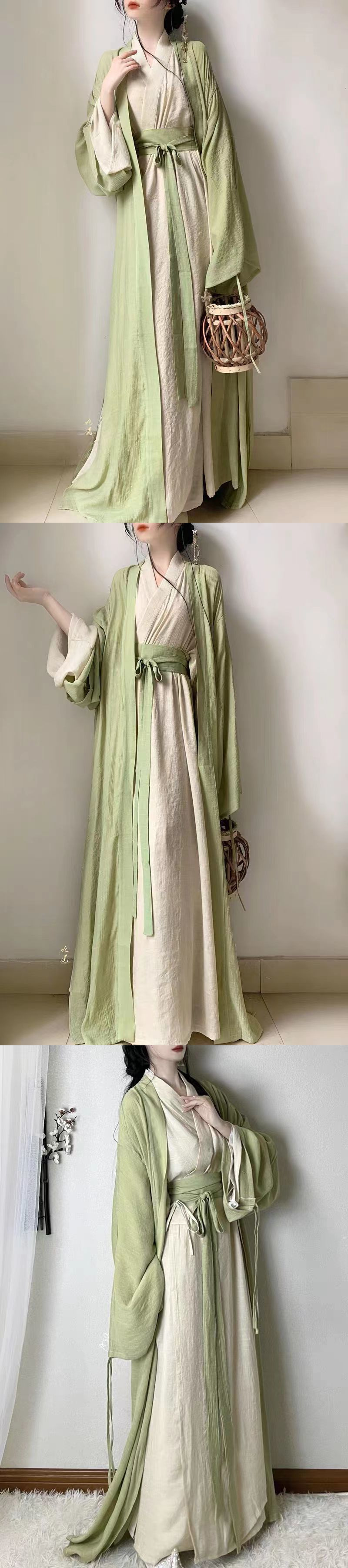 晋制汉服女中国风直裾大袖衫套装改良魏晋风新款日常春秋