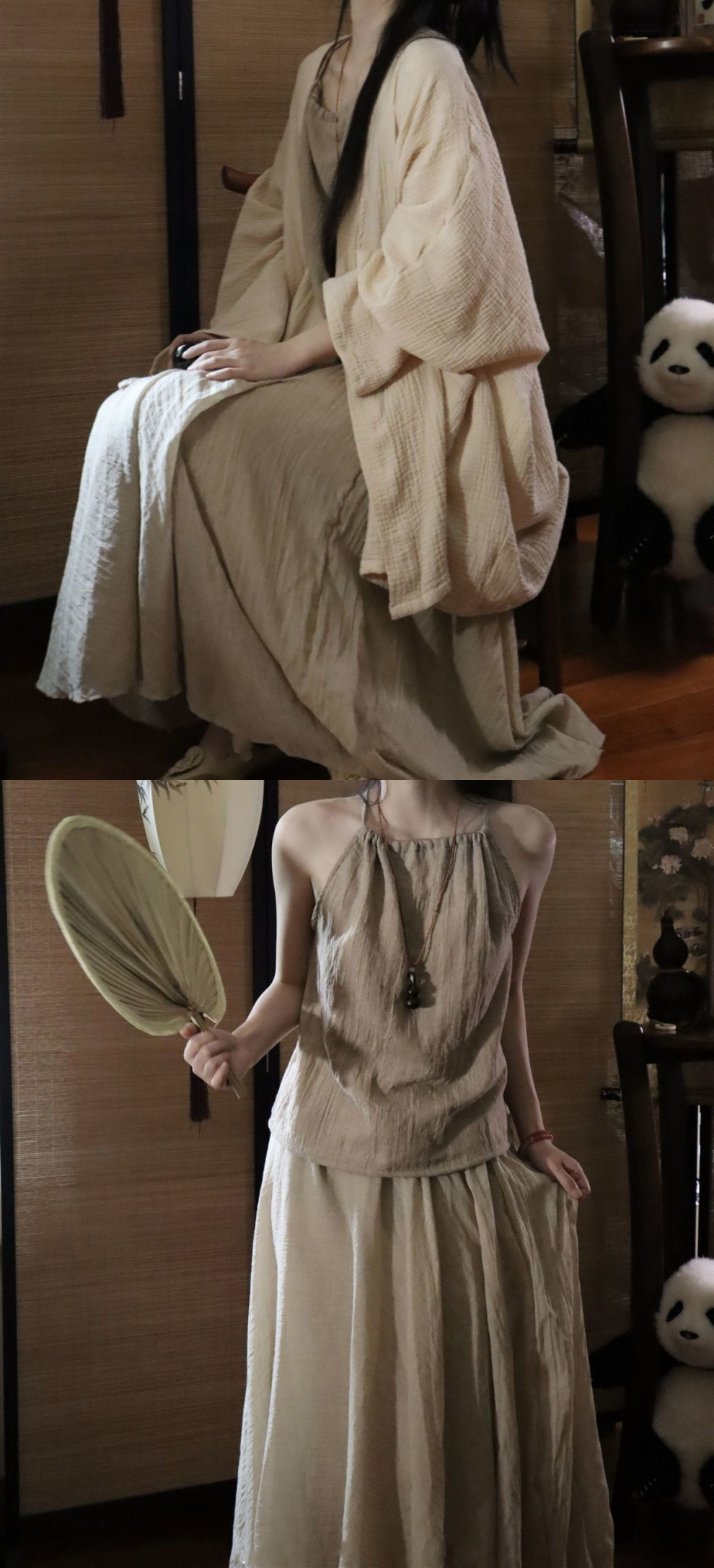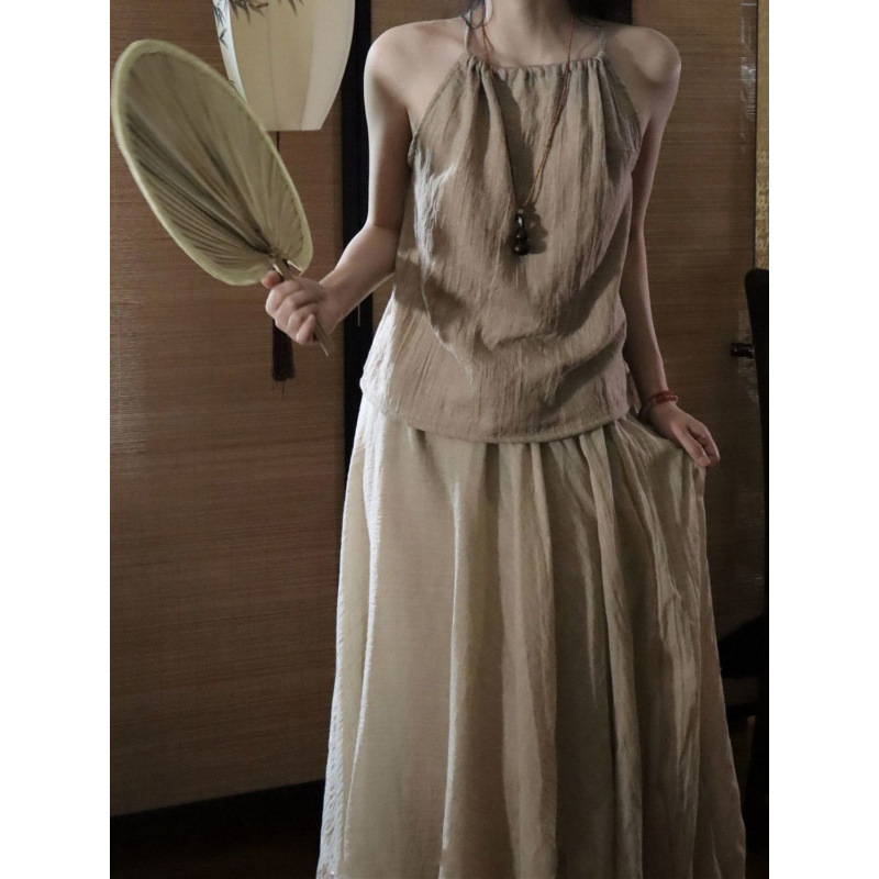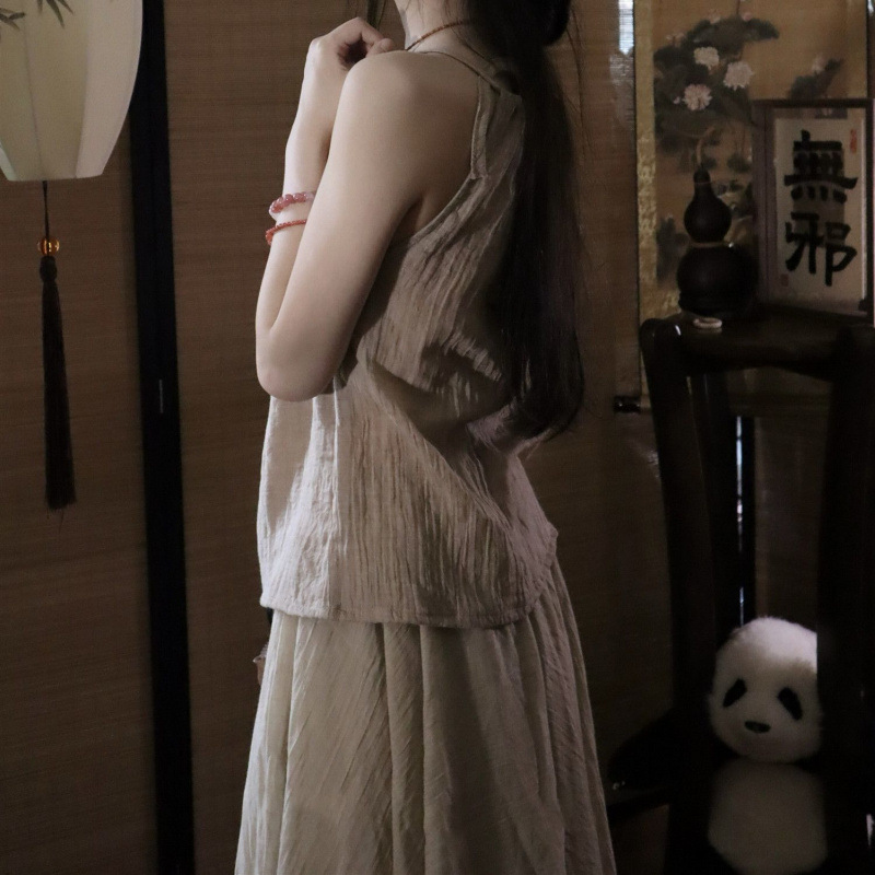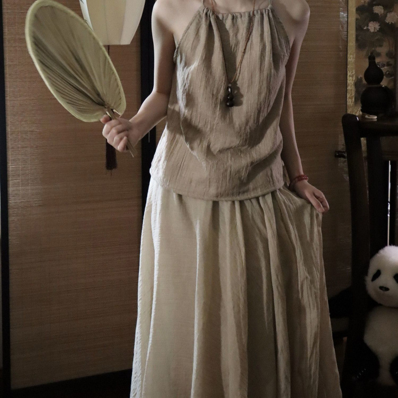 禅意风外套挂脖吊带飘逸半身裙棉麻禅服女装清冷茶服汉服