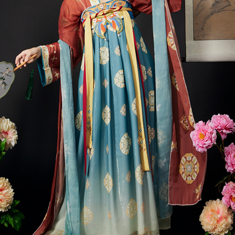 汉服女唐制刺绣民国风复原款齐胸大袖衫破裙春夏款闺蜜款国潮广袖