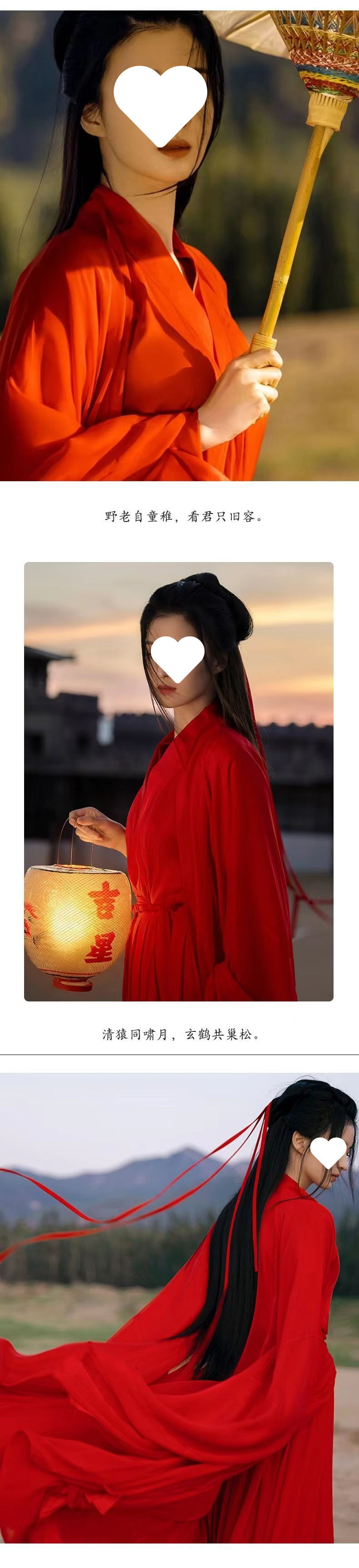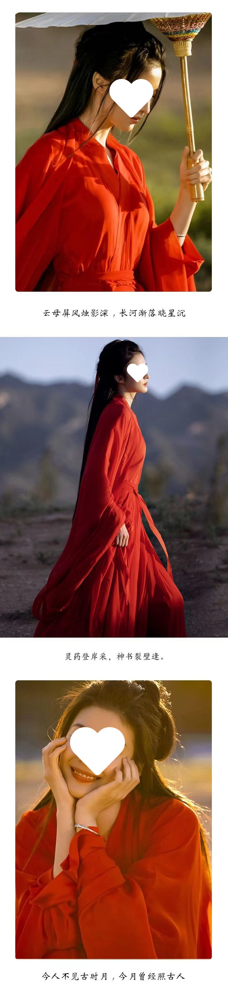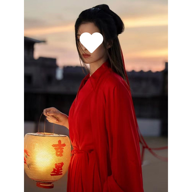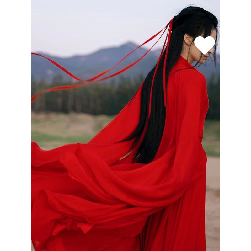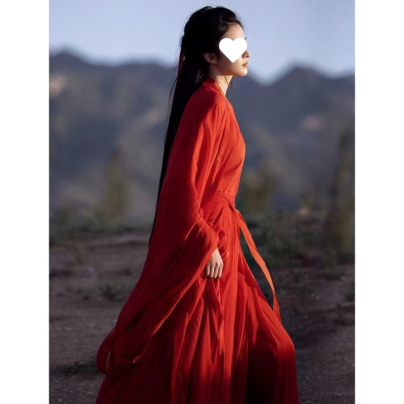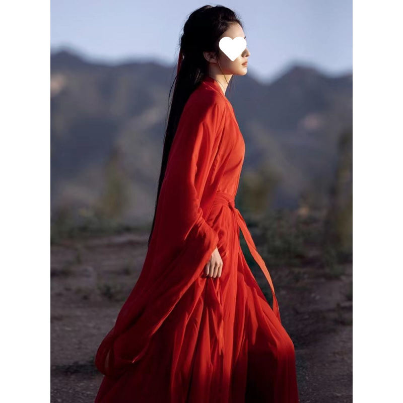 魏晋风汉服女飘逸超仙红色古装大袖衫古风广袖流仙裙