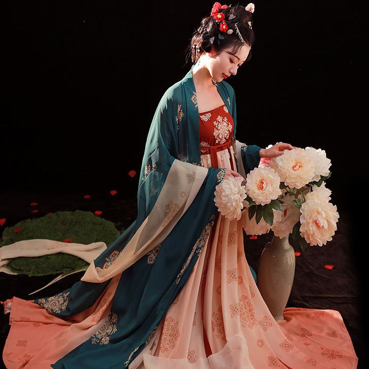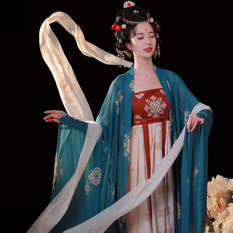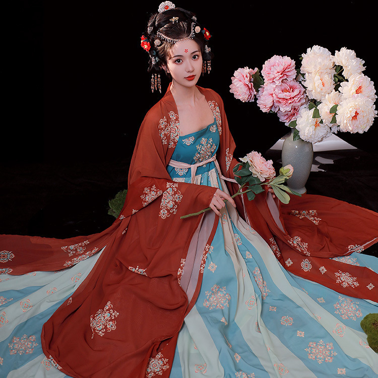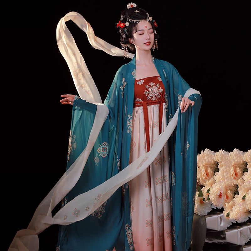 原创汉服女2025新款唐制诃子裙【潇湘语】大袖衫夏季唐风刺绣套装