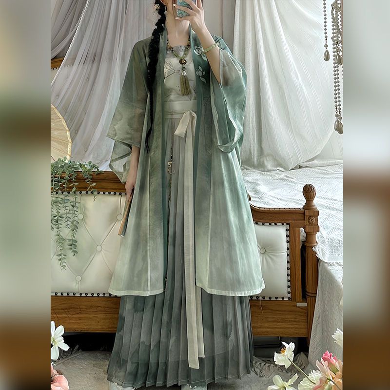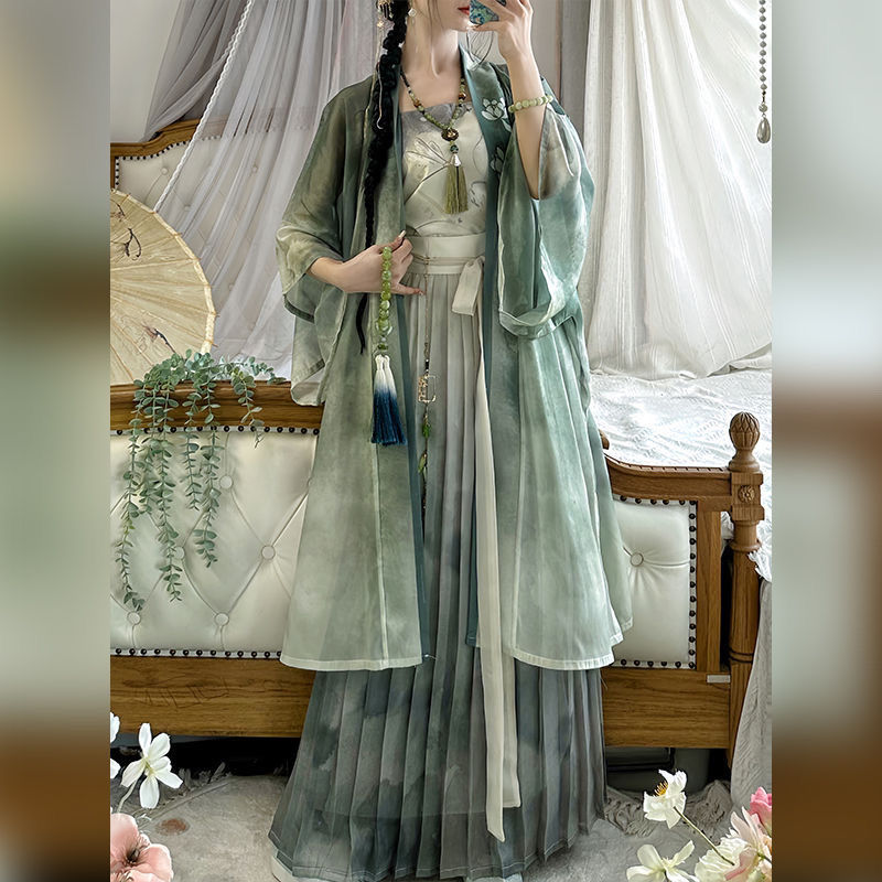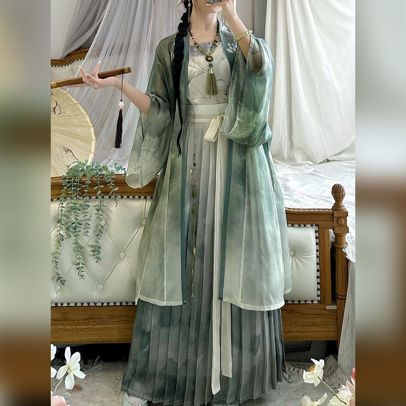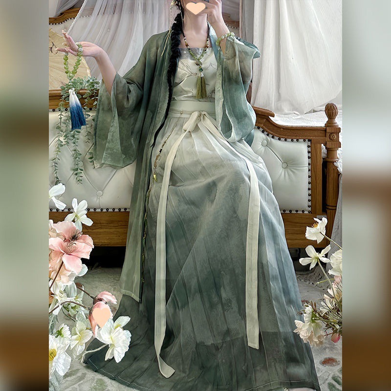 大码汉服女200斤胖宋制汉服女仙显瘦齐腰百褶裙日常春夏款