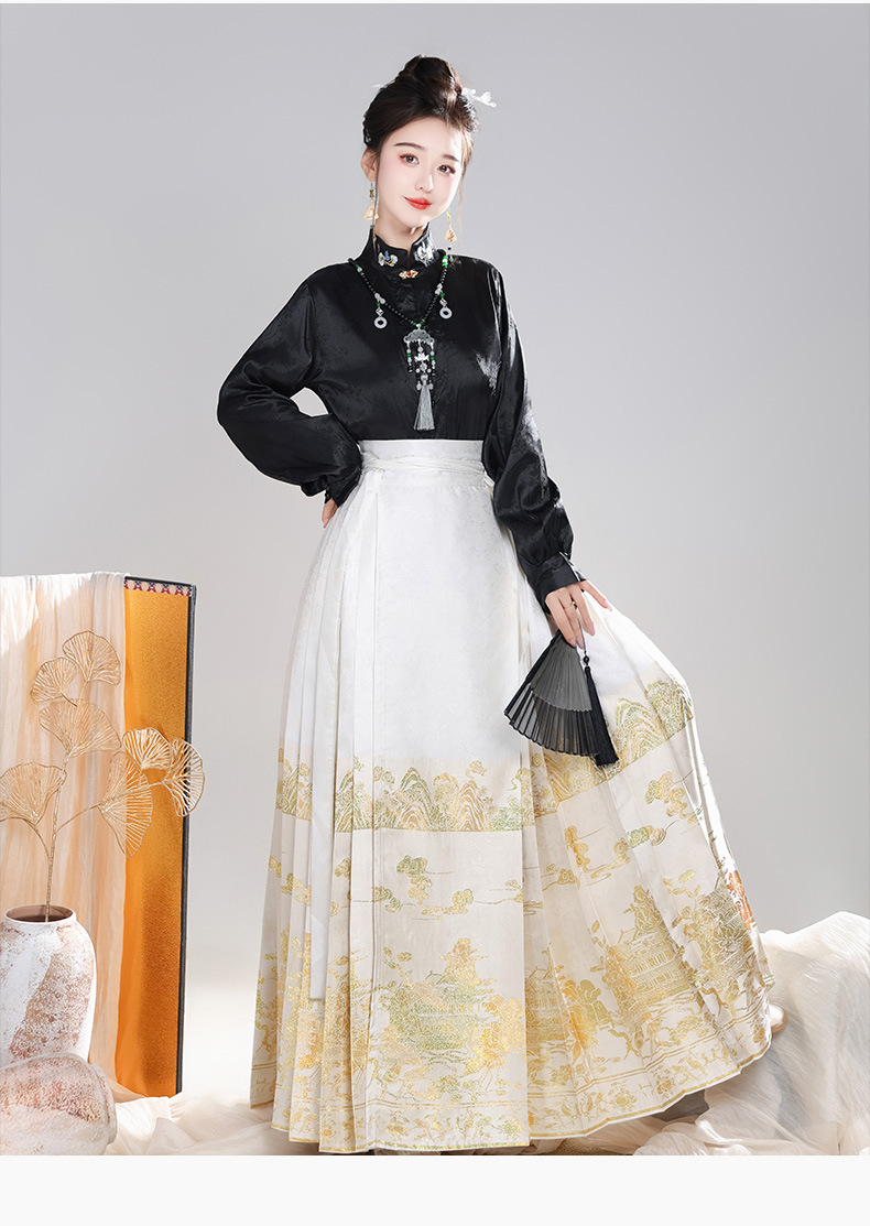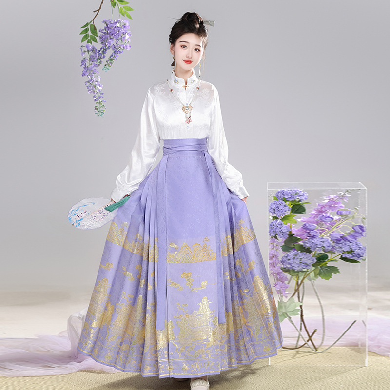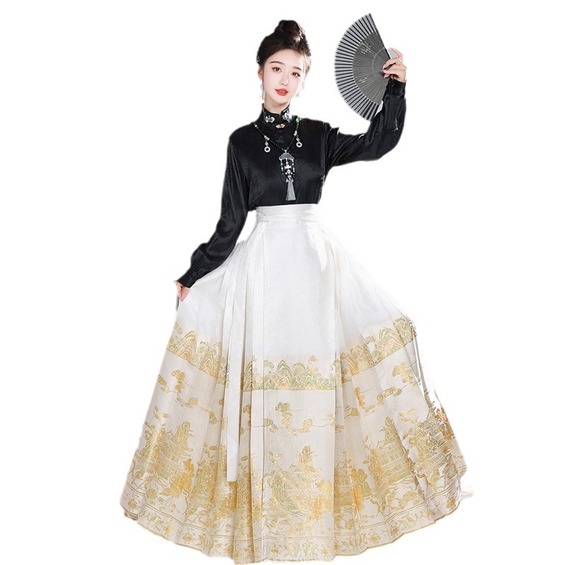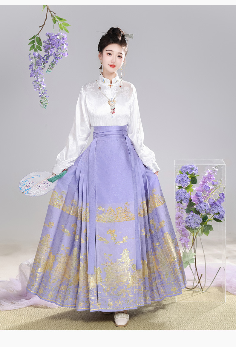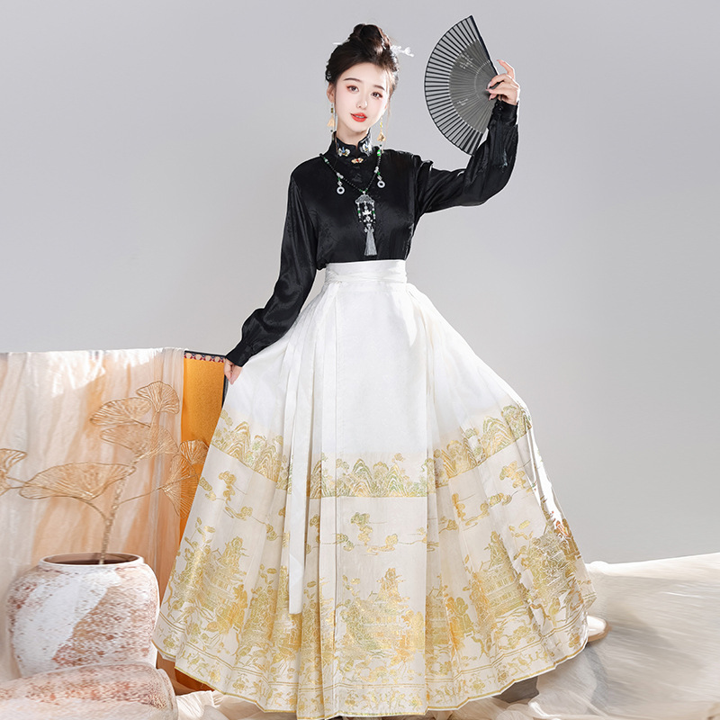 更上一层楼织金织银螺钿马面裙汉服女日常通勤配提花刺绣新中式