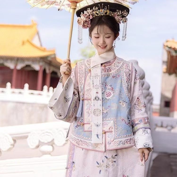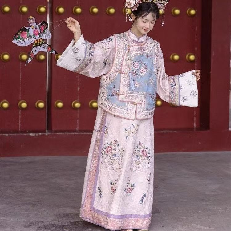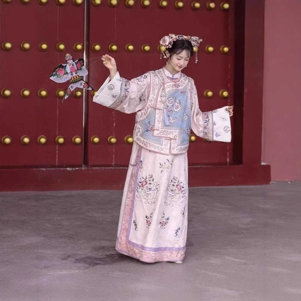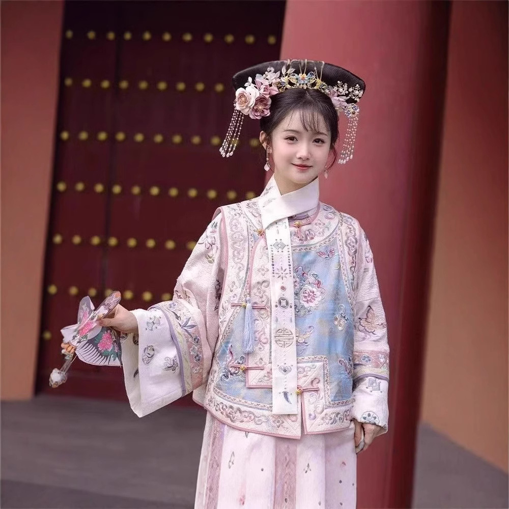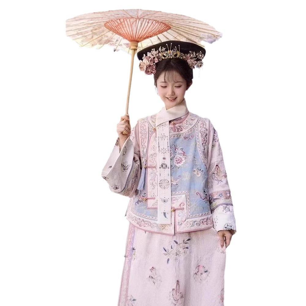 汉服女清代印花古装清朝延吉公主旗袍宫廷格格服两件套旅拍服装女