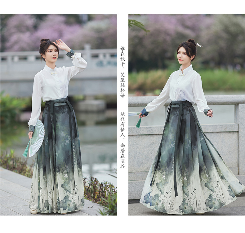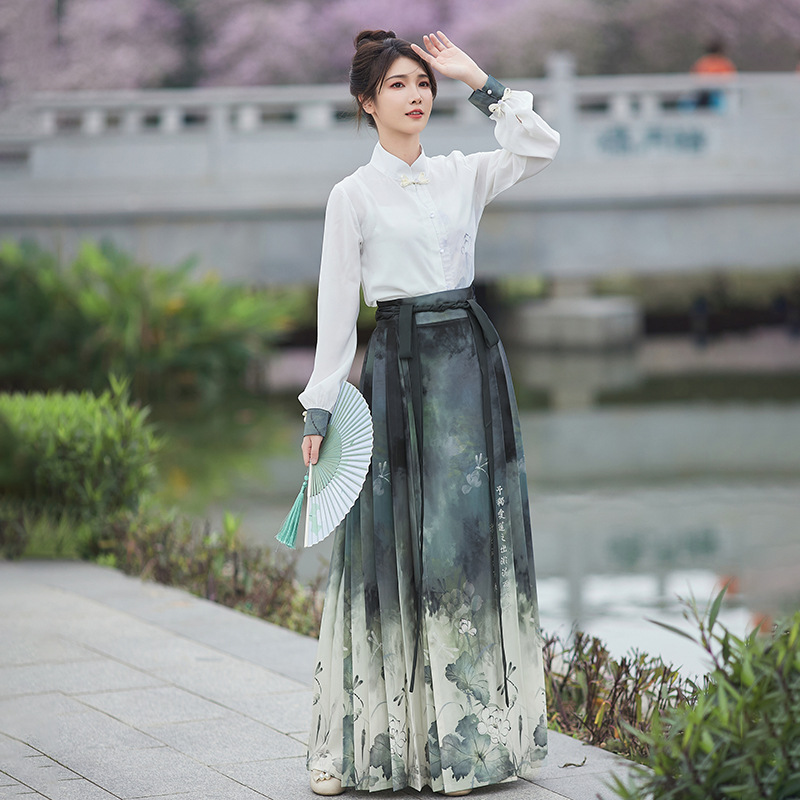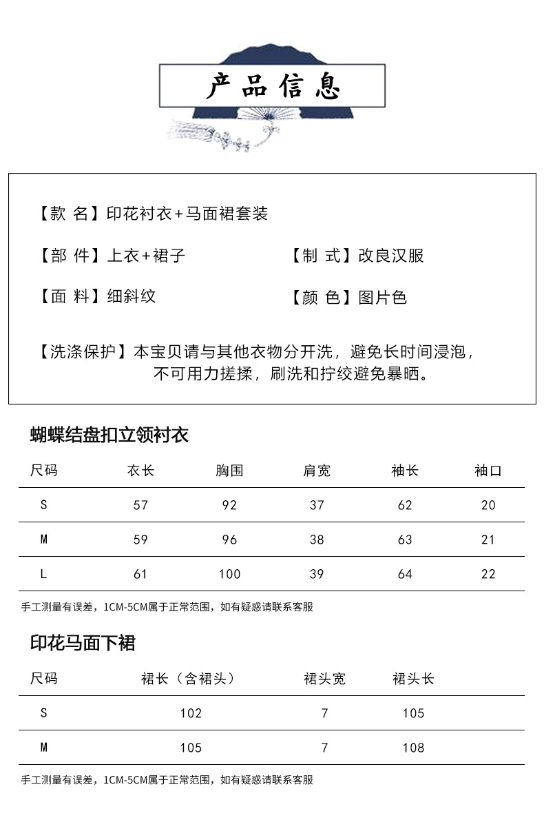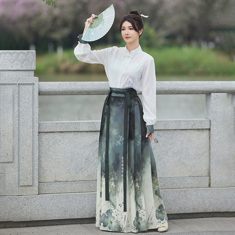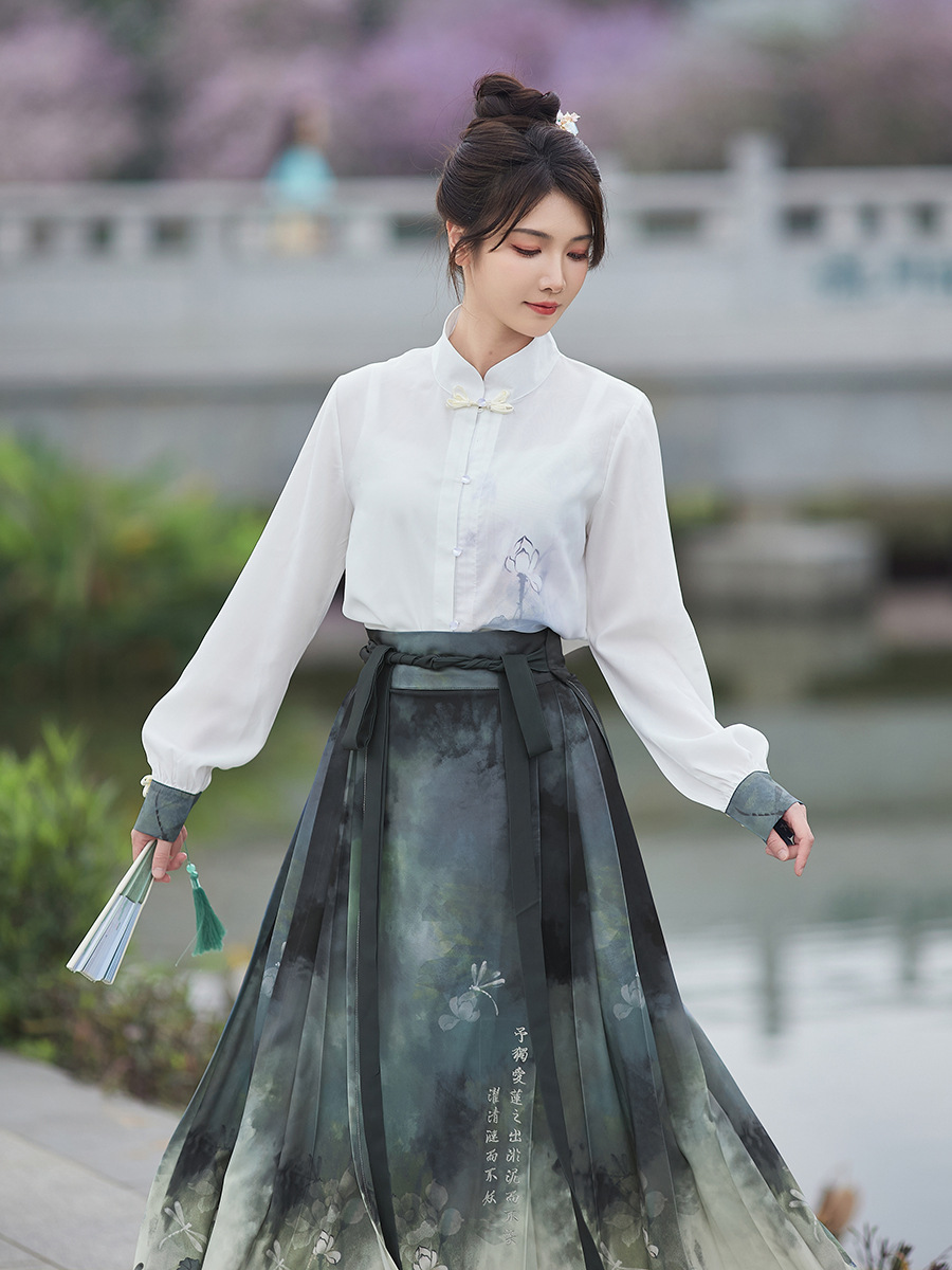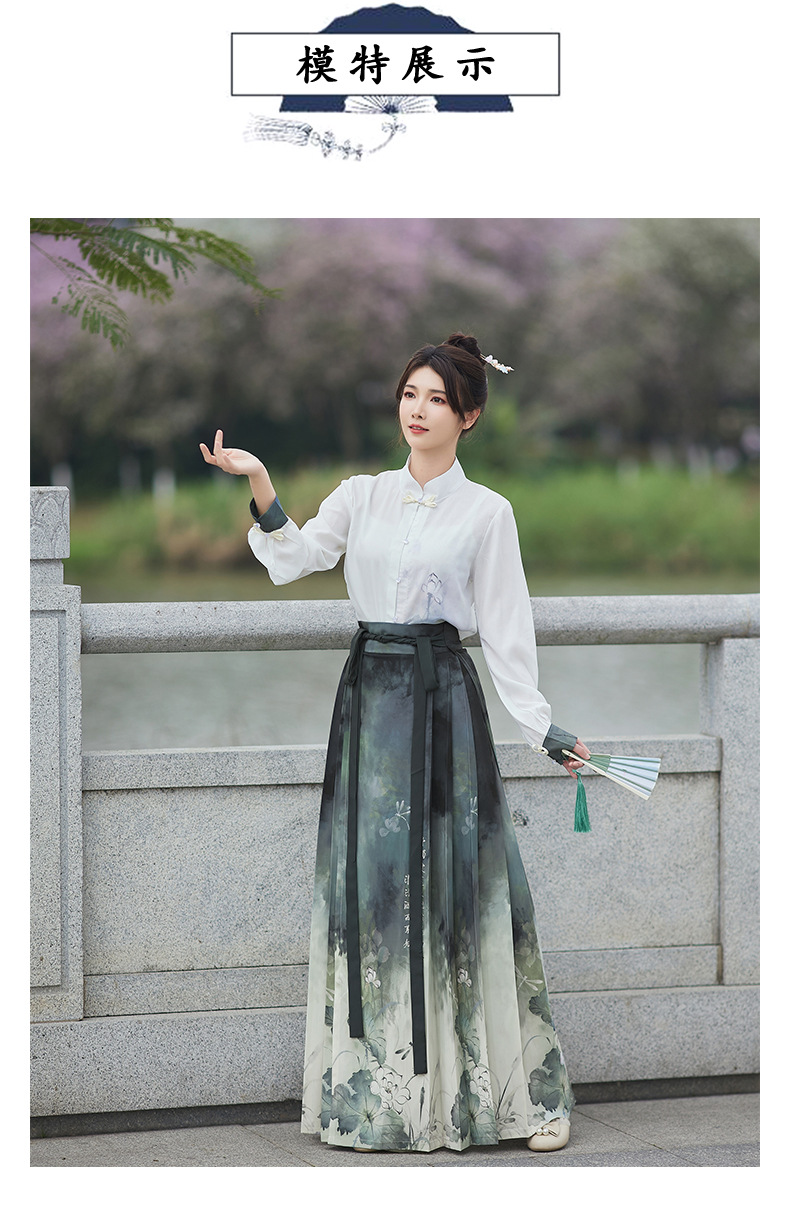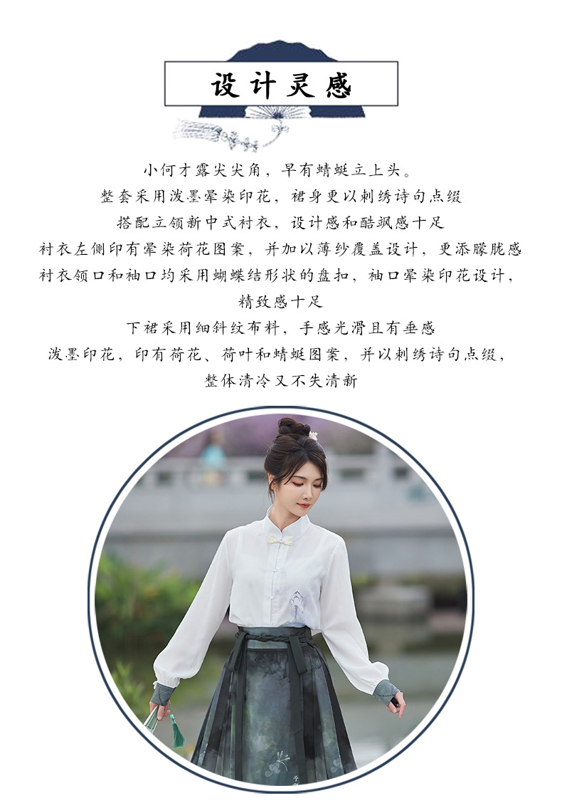 墨莲原创印花汉服女国风新中式衬衫马面裙春夏套装日常