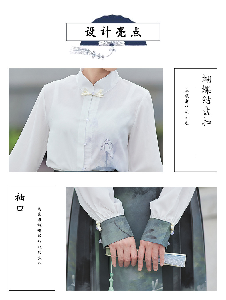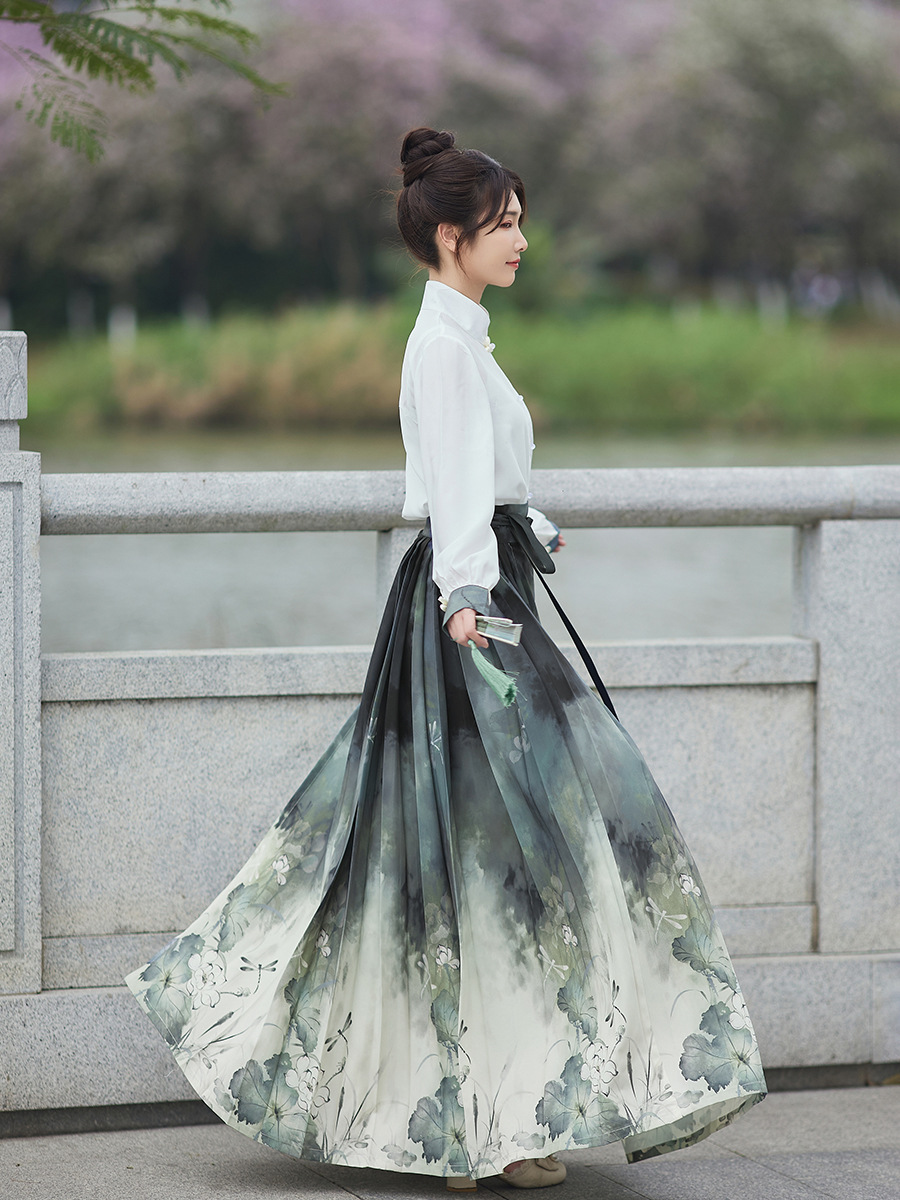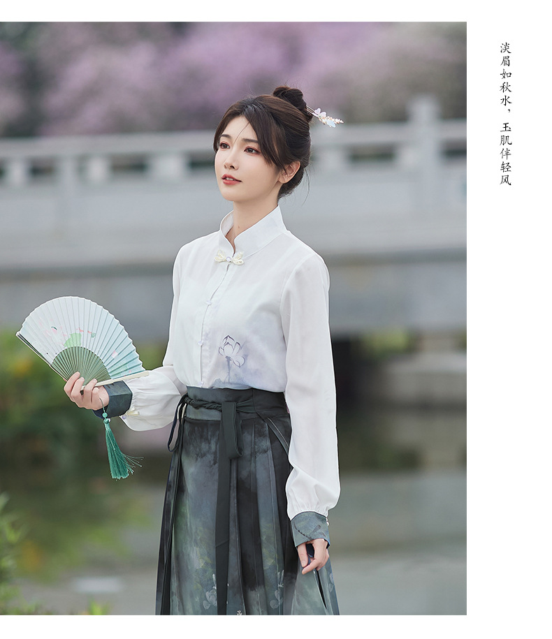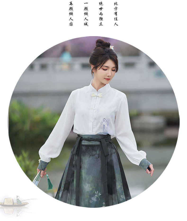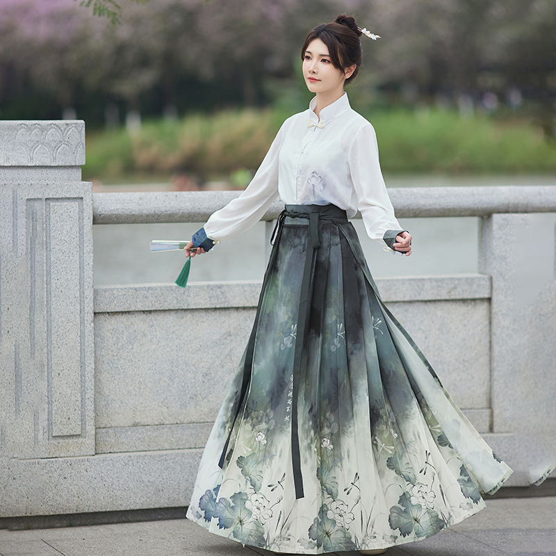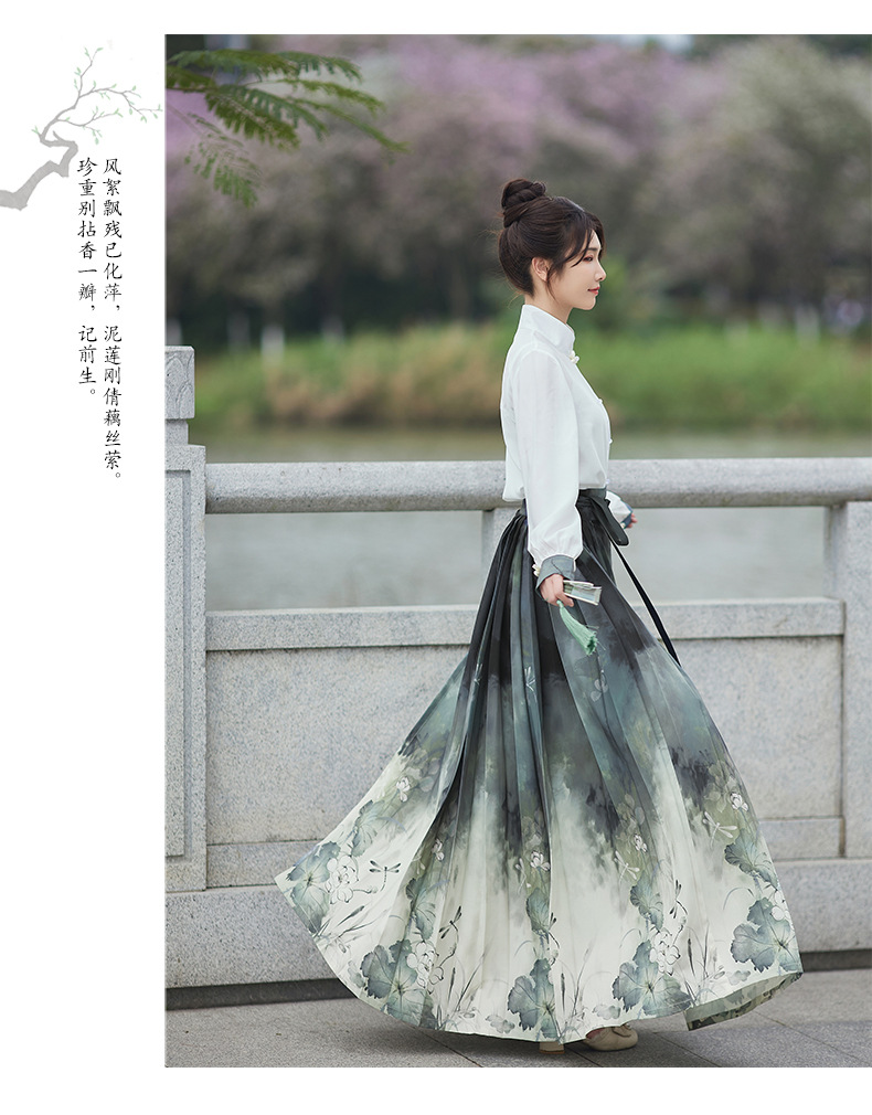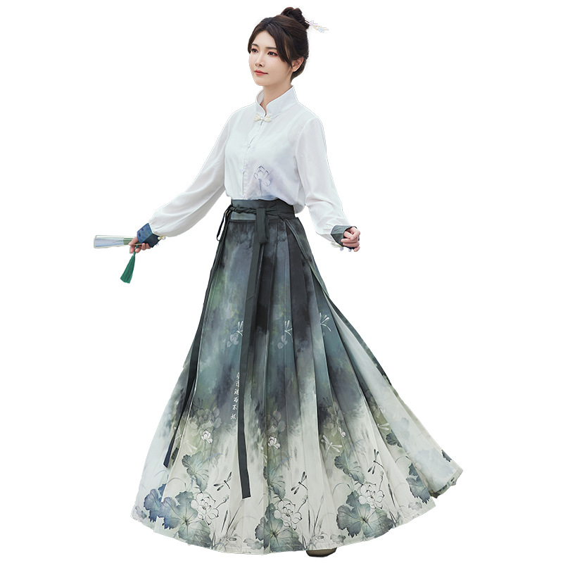 墨莲原创印花汉服女国风新中式衬衫马面裙春夏套装日常