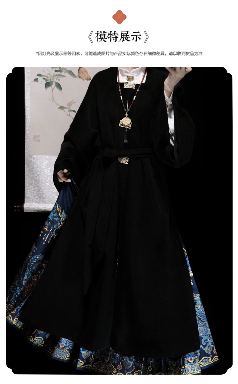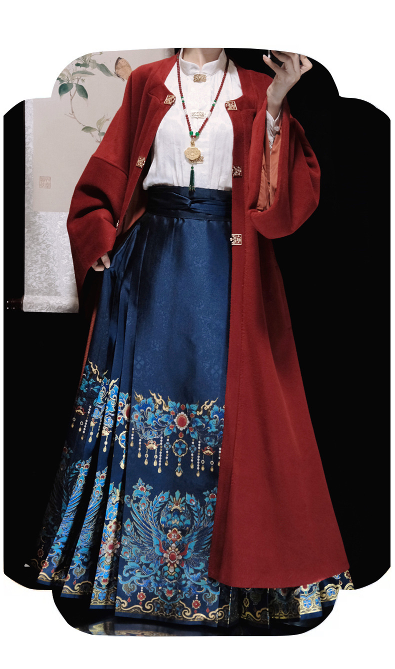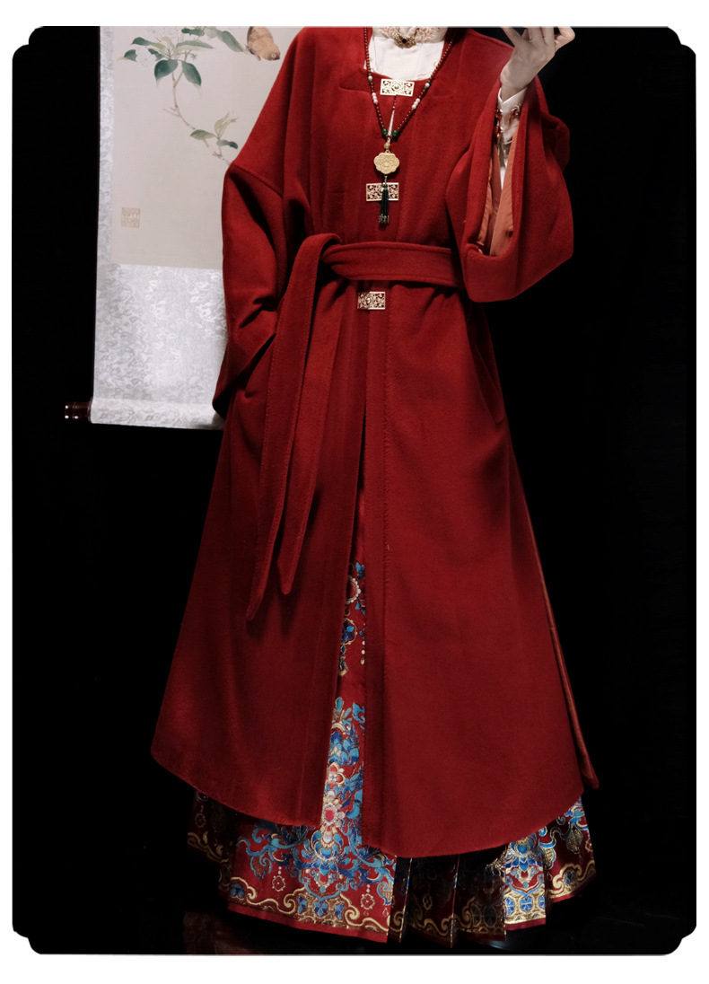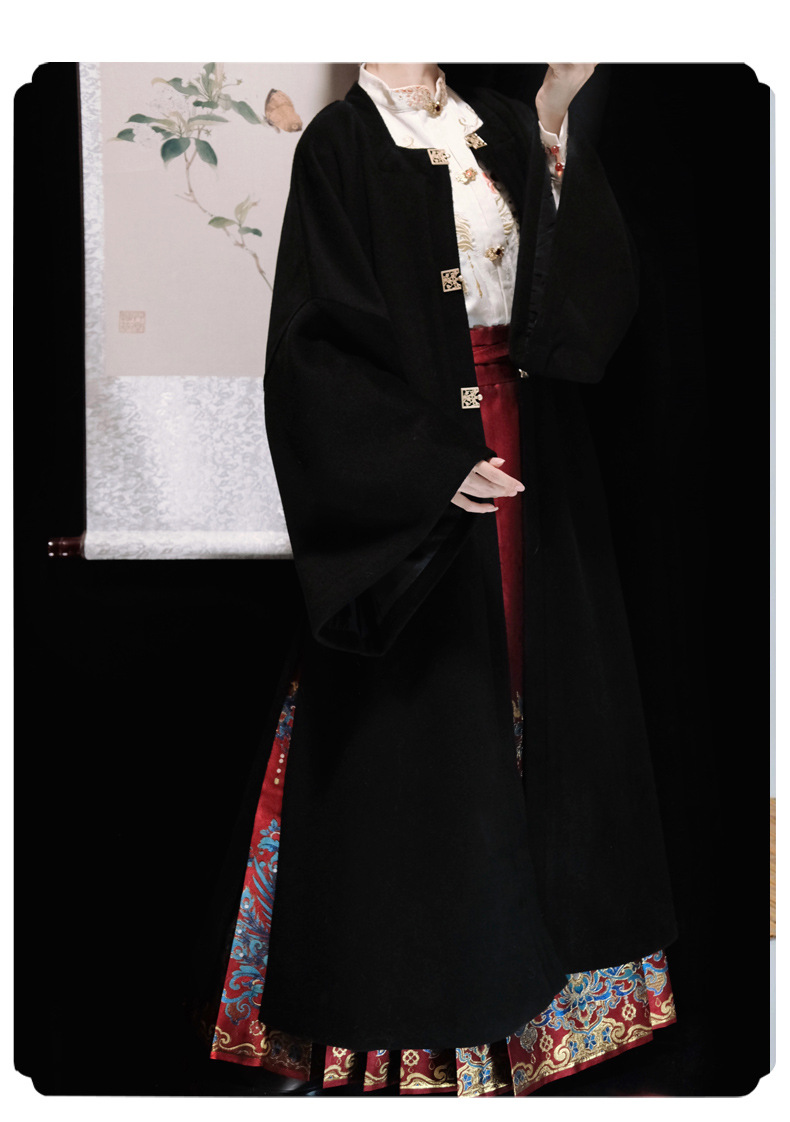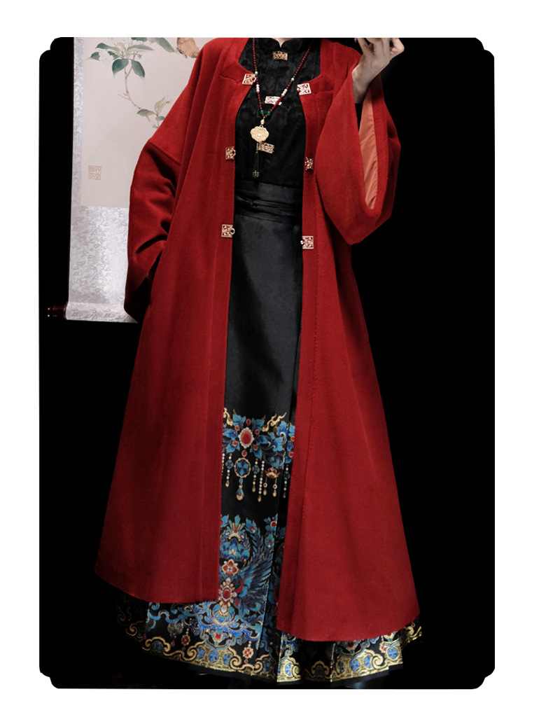 秋冬汉服女【翠鸾】明制马面裙新中式国风立领衬衣厚毛呢大衣通勤