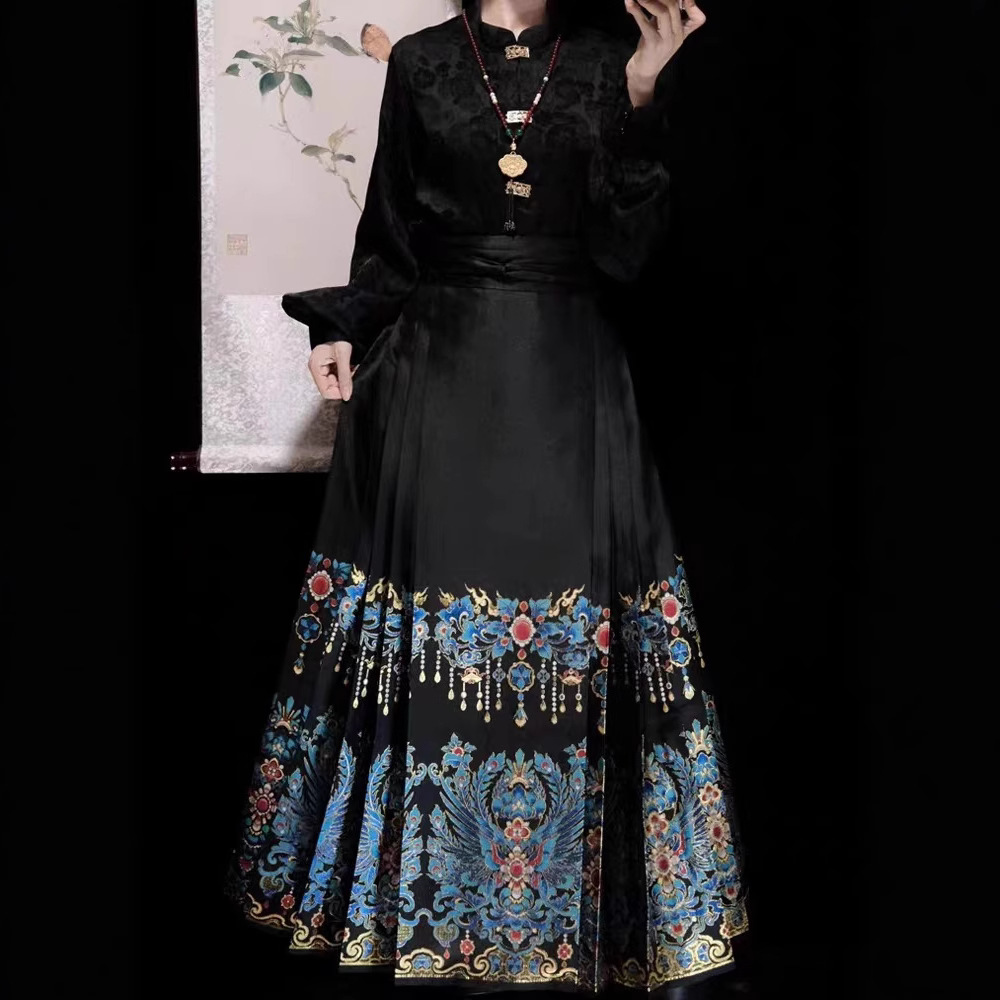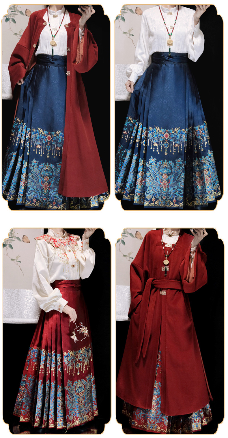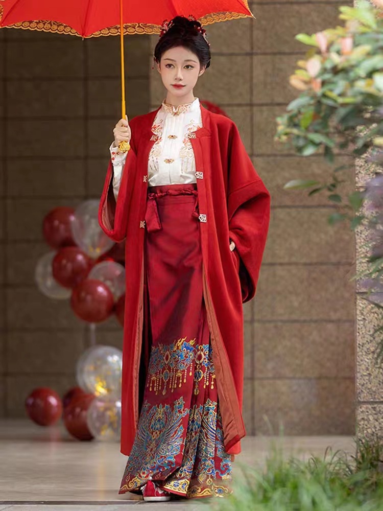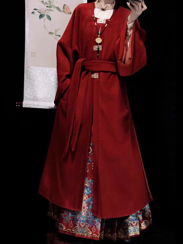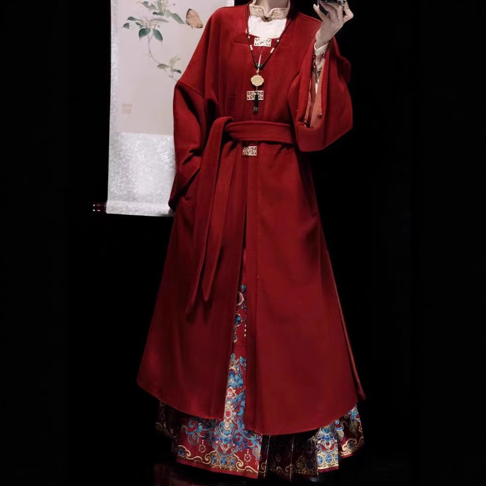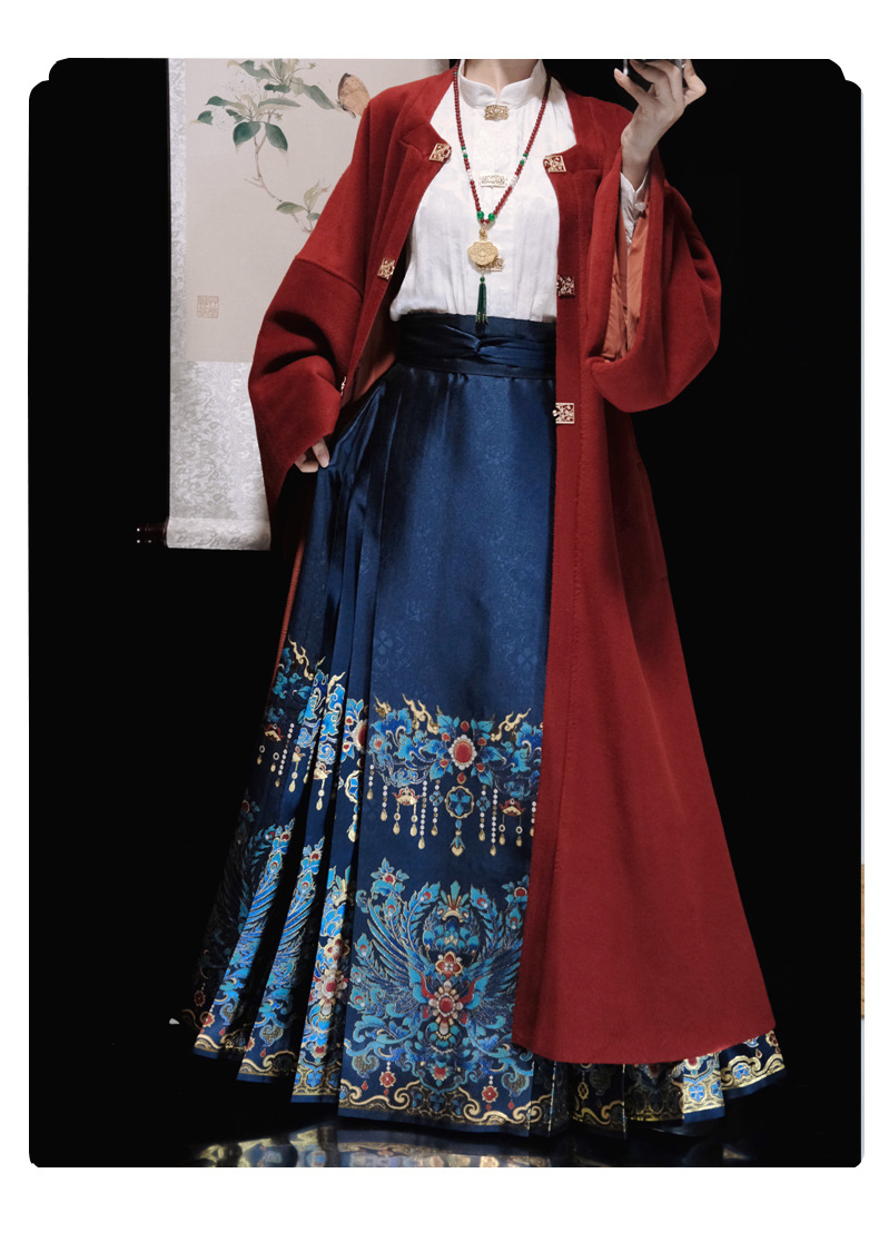 秋冬汉服女【翠鸾】明制马面裙新中式国风立领衬衣厚毛呢大衣通勤