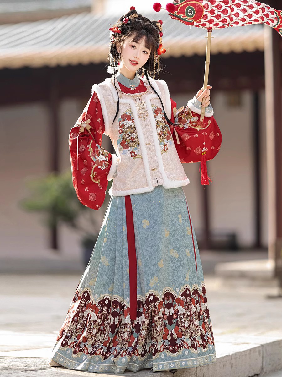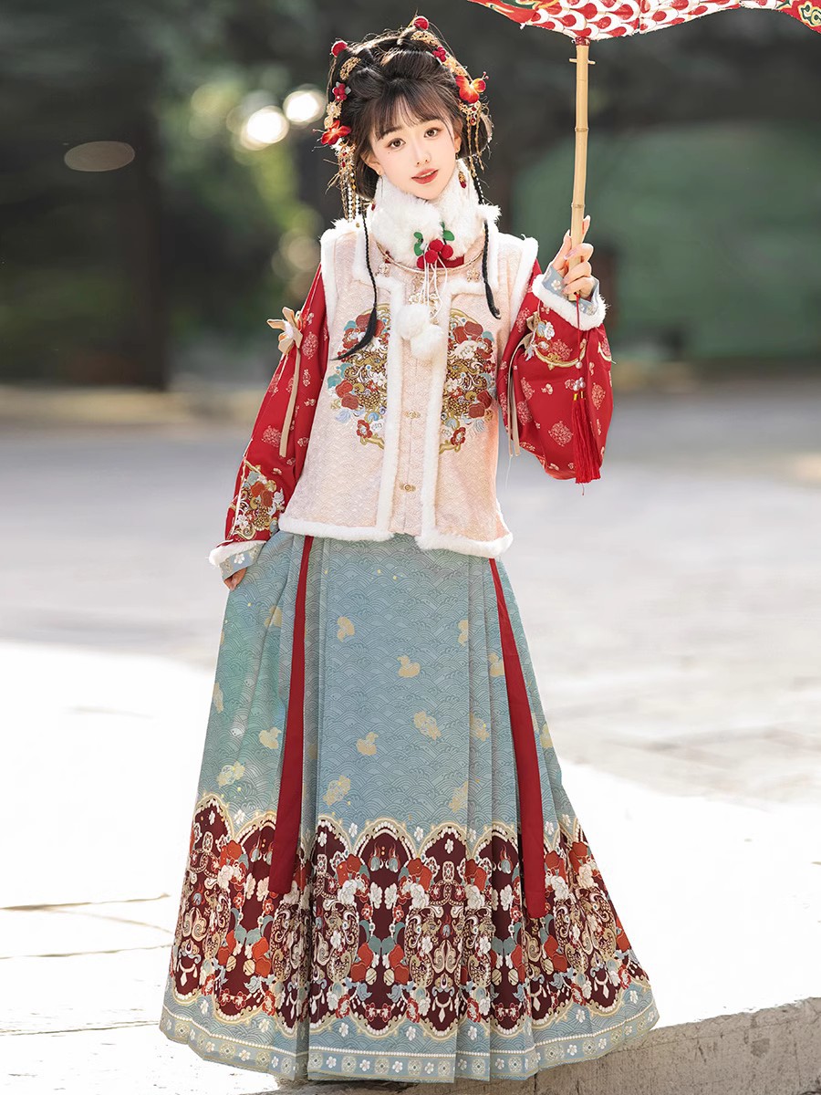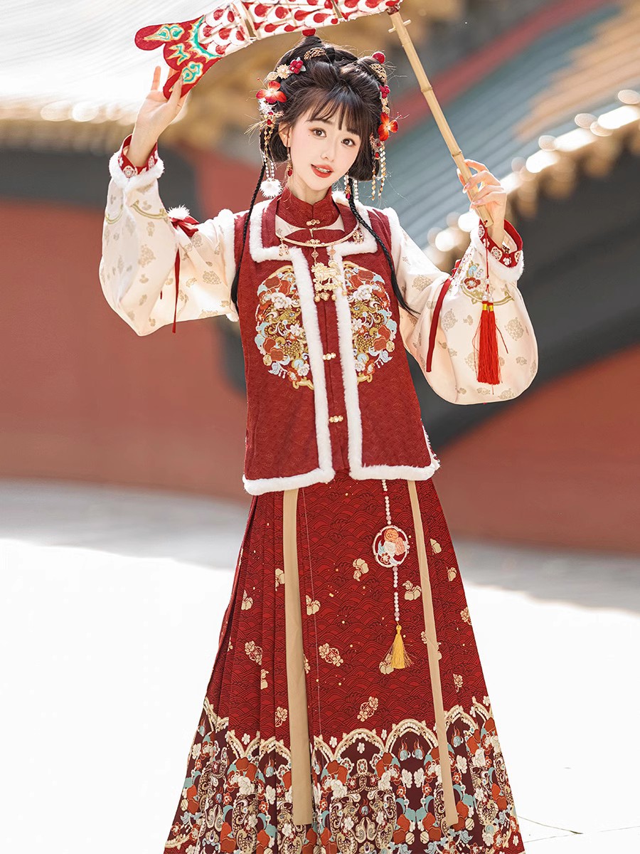 桃之夭夭原创明制汉服女中国风加厚新年拜年服比甲马面裙古装全套