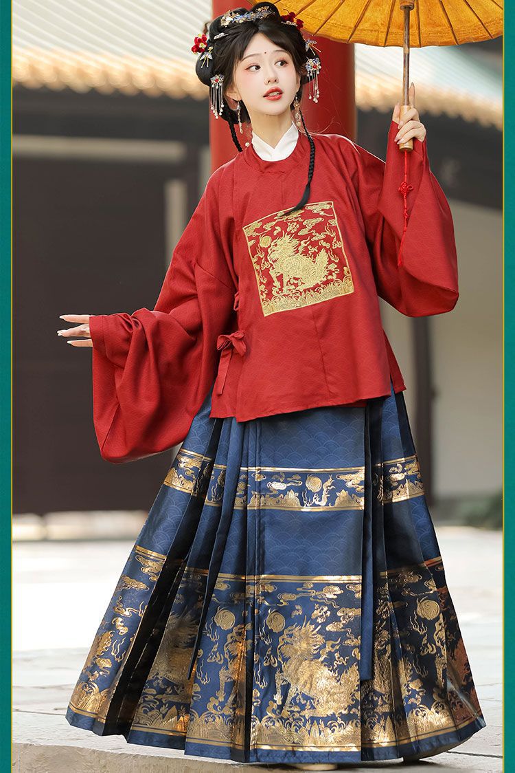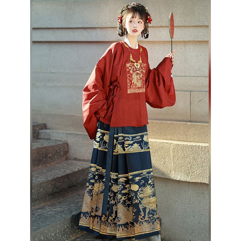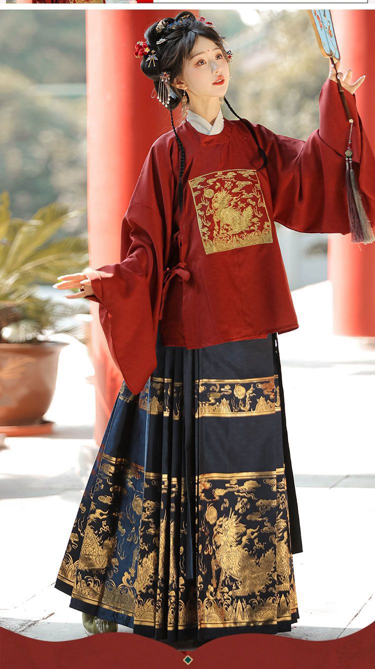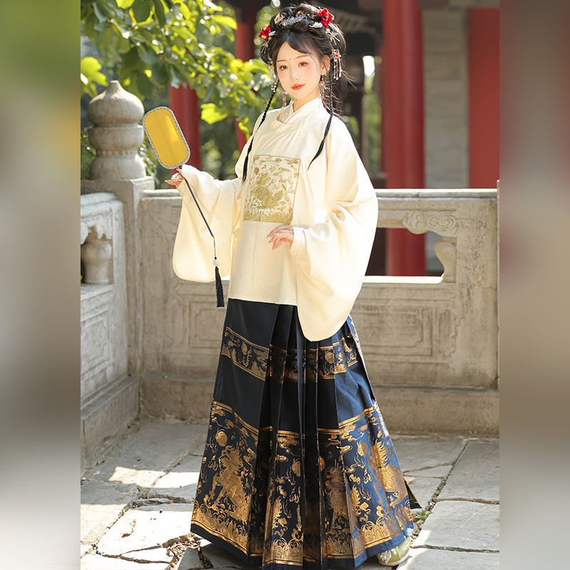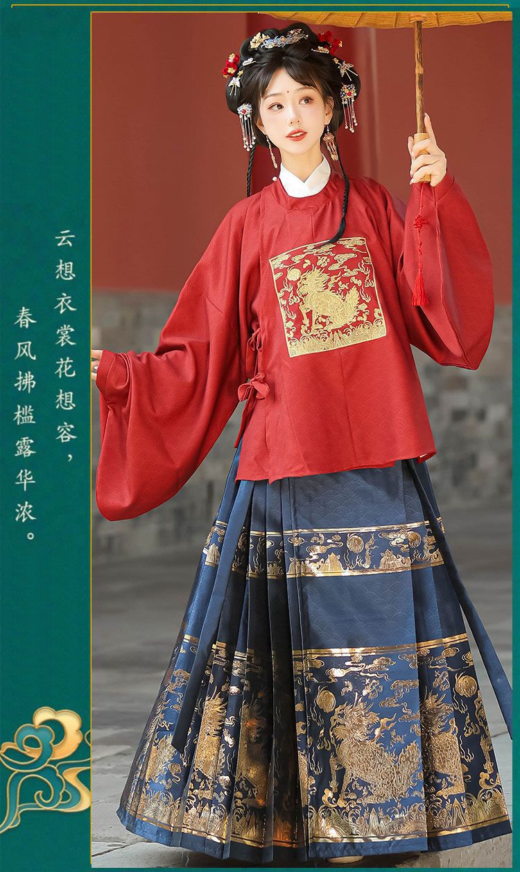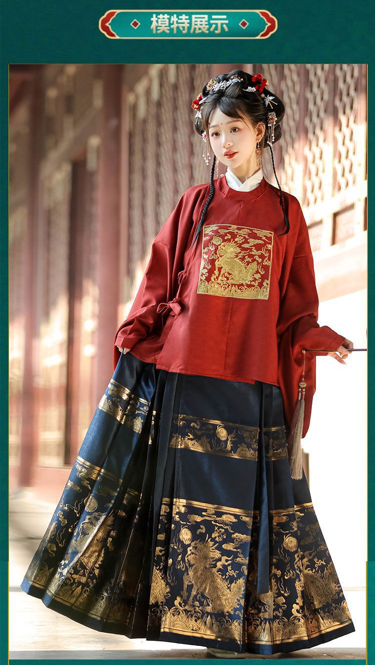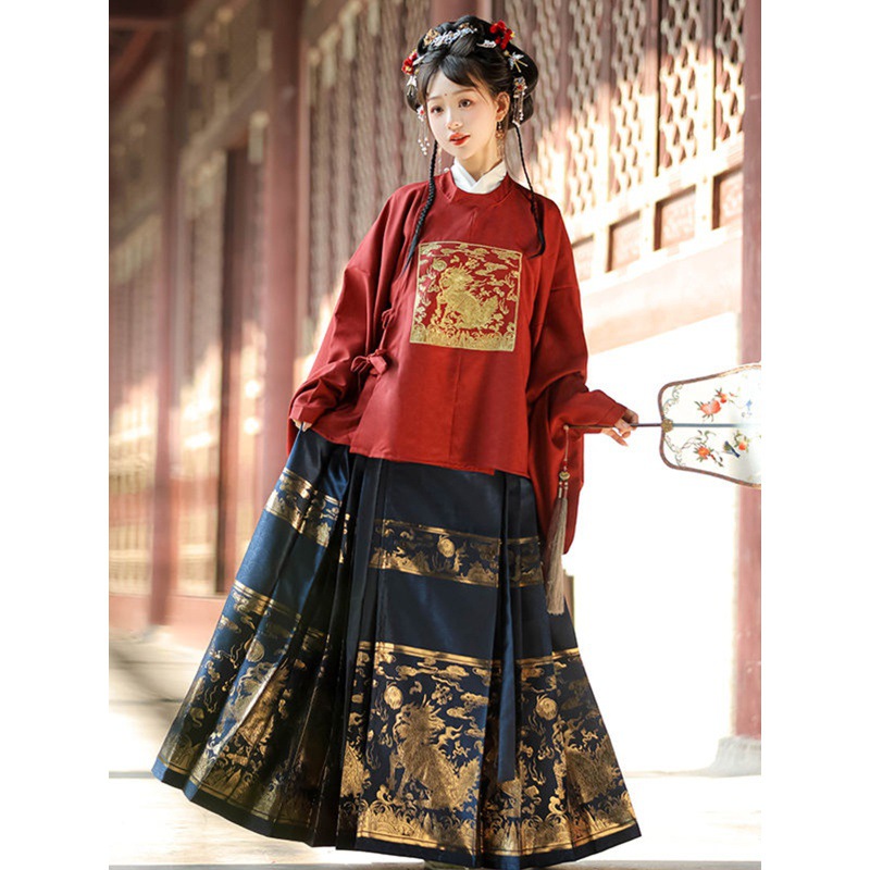 新款原创汉服女明制圆领大襟绣花琵琶袖短袄织金马面裙秋冬季套装