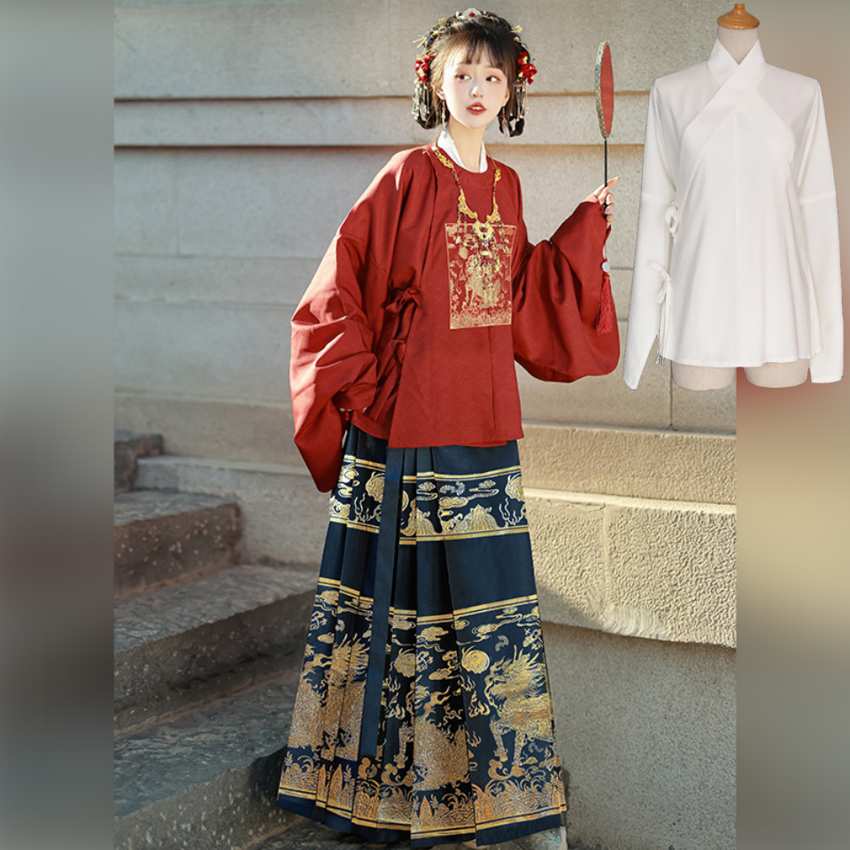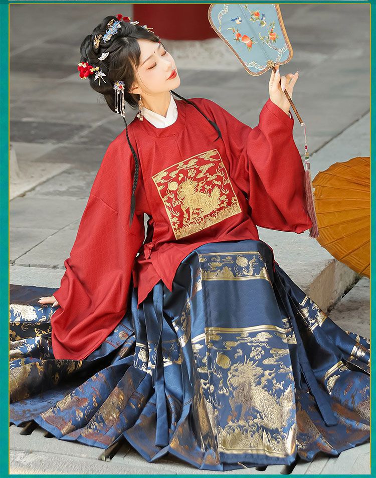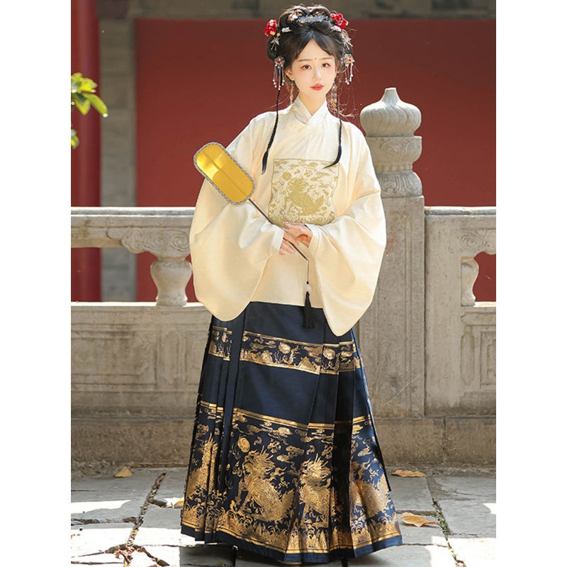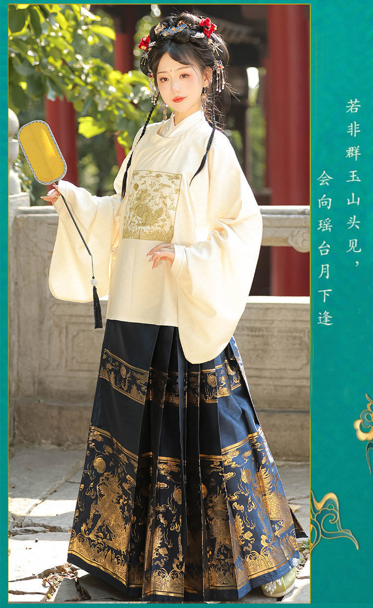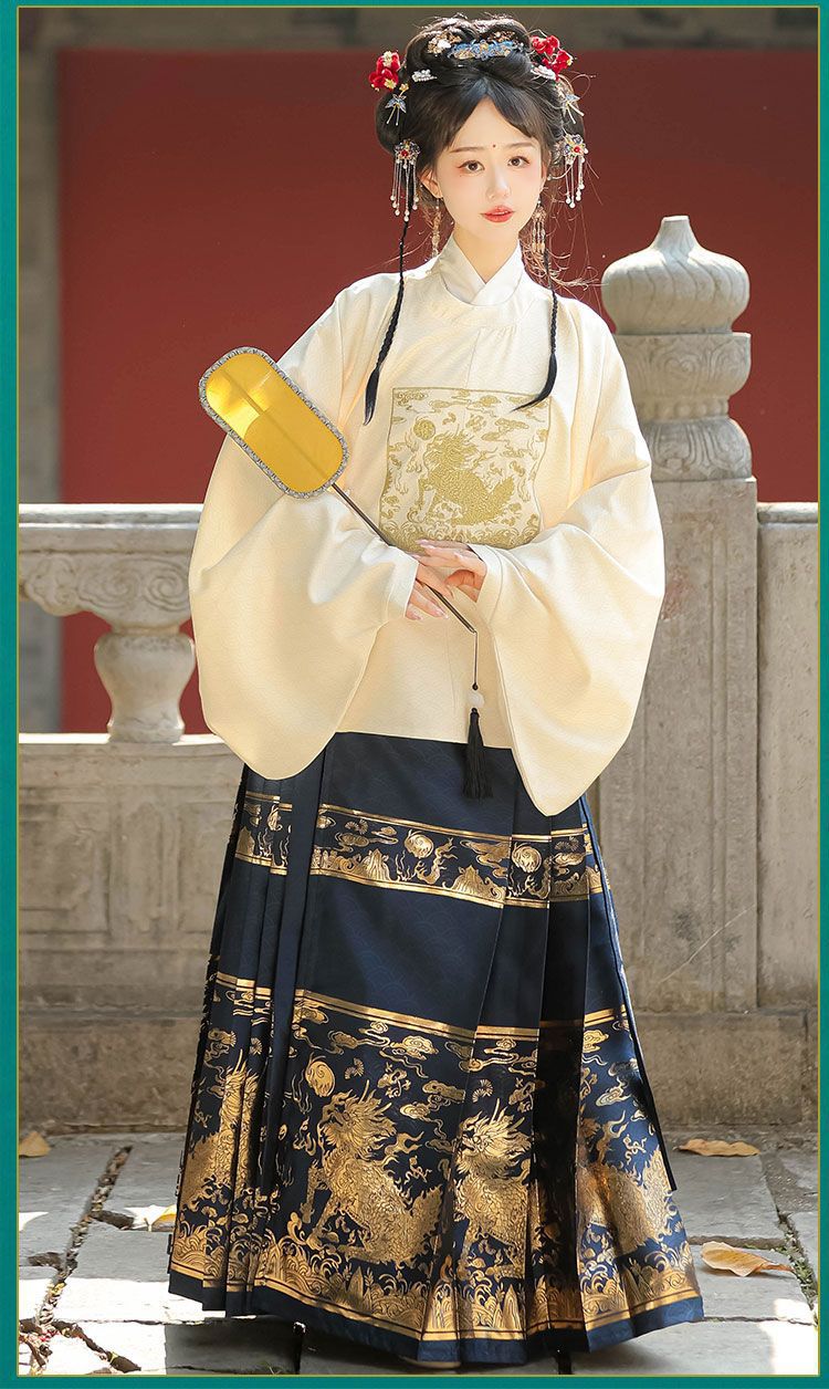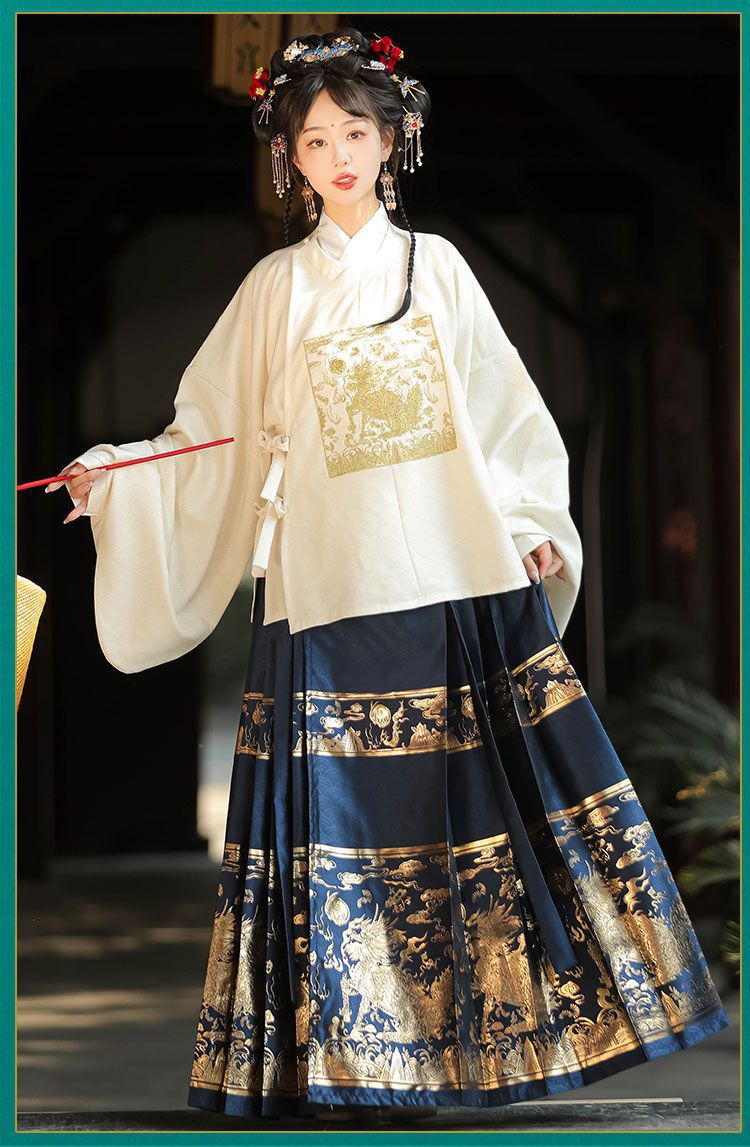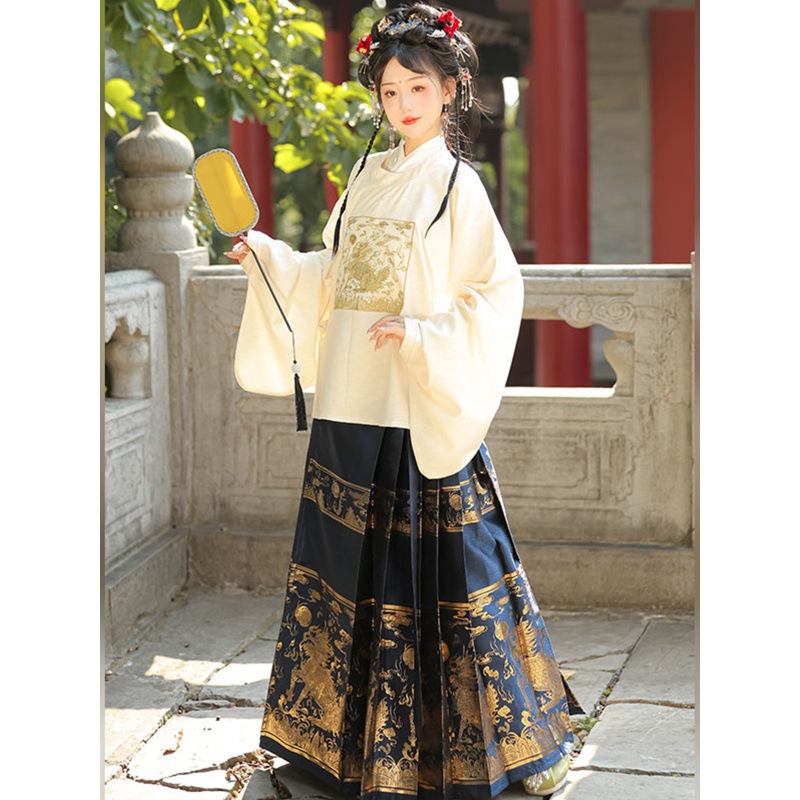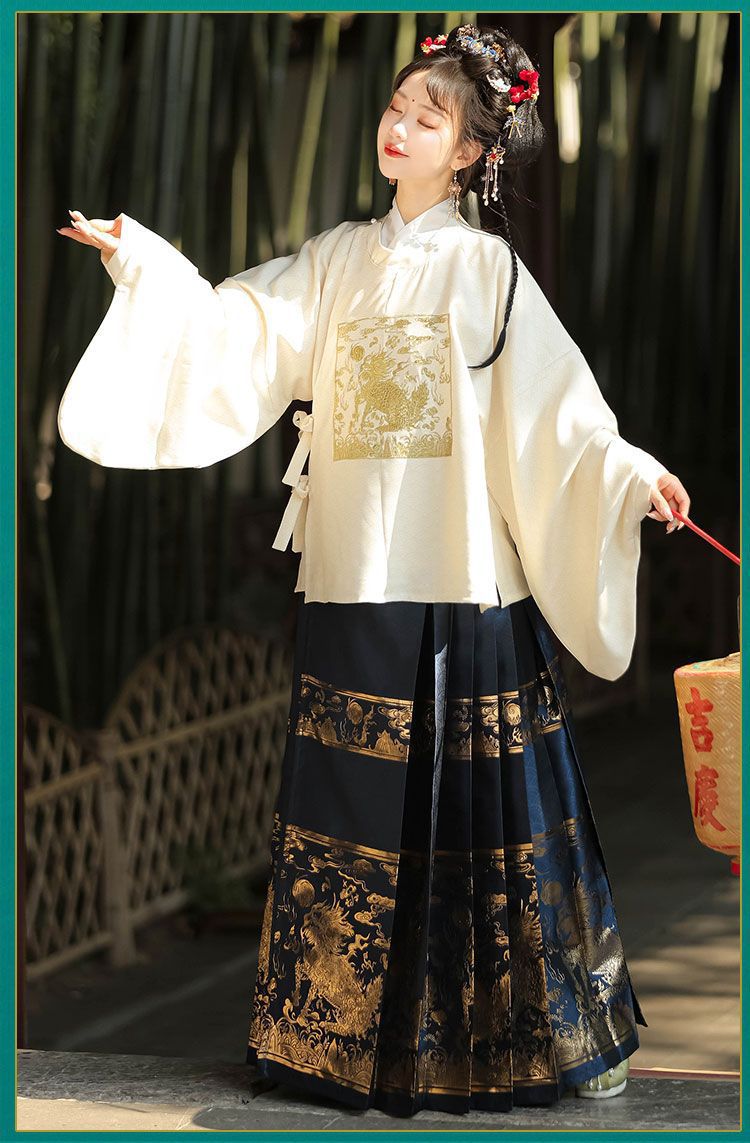 新款原创汉服女明制圆领大襟绣花琵琶袖短袄织金马面裙秋冬季套装