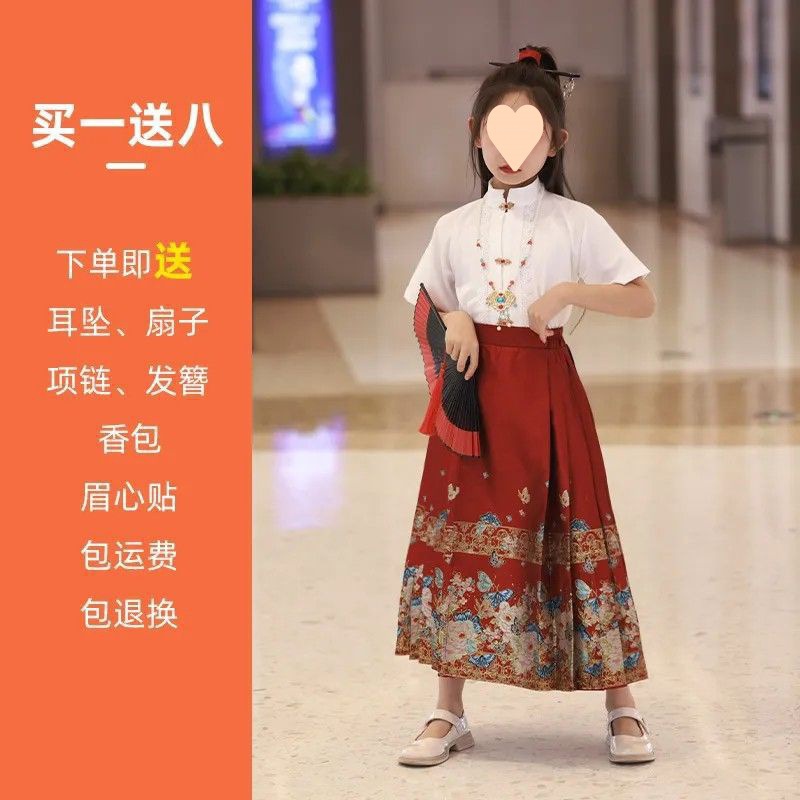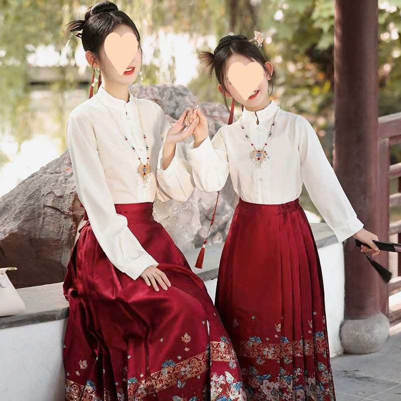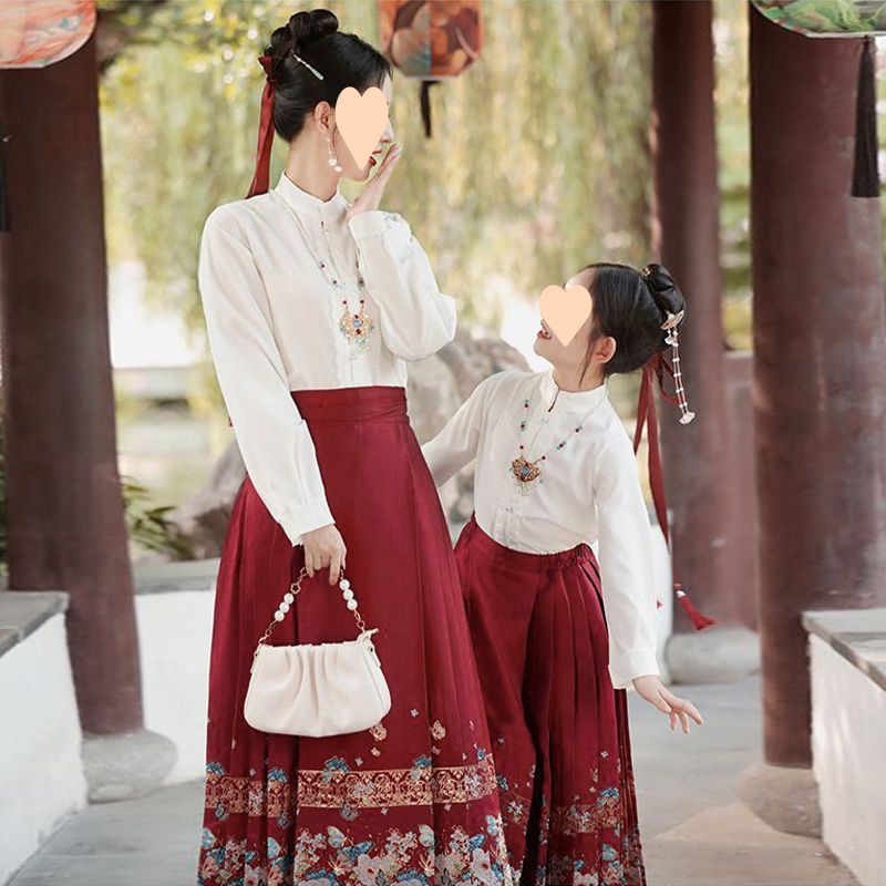 汉服国风女装童装儿童亲子新中式改良成人半身裙汉元素高档马面裙