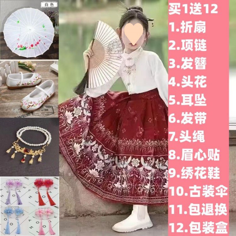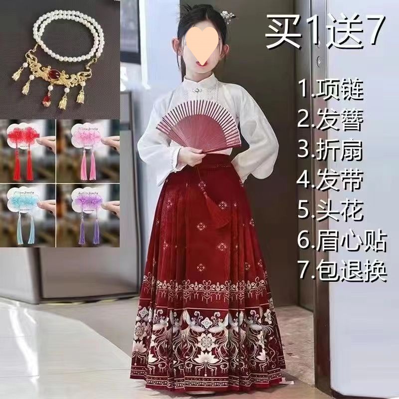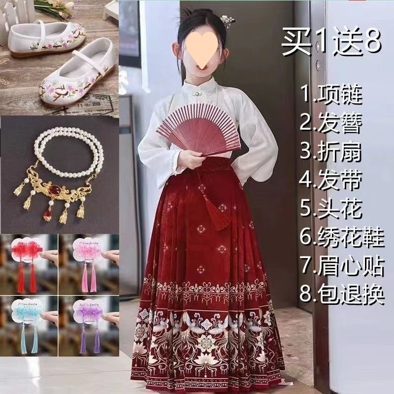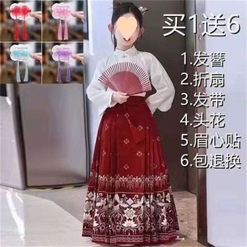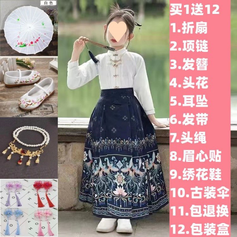 古风汉服裙女童汉服中国风明制马面裙儿童唐装复古仙女裙春秋夏
