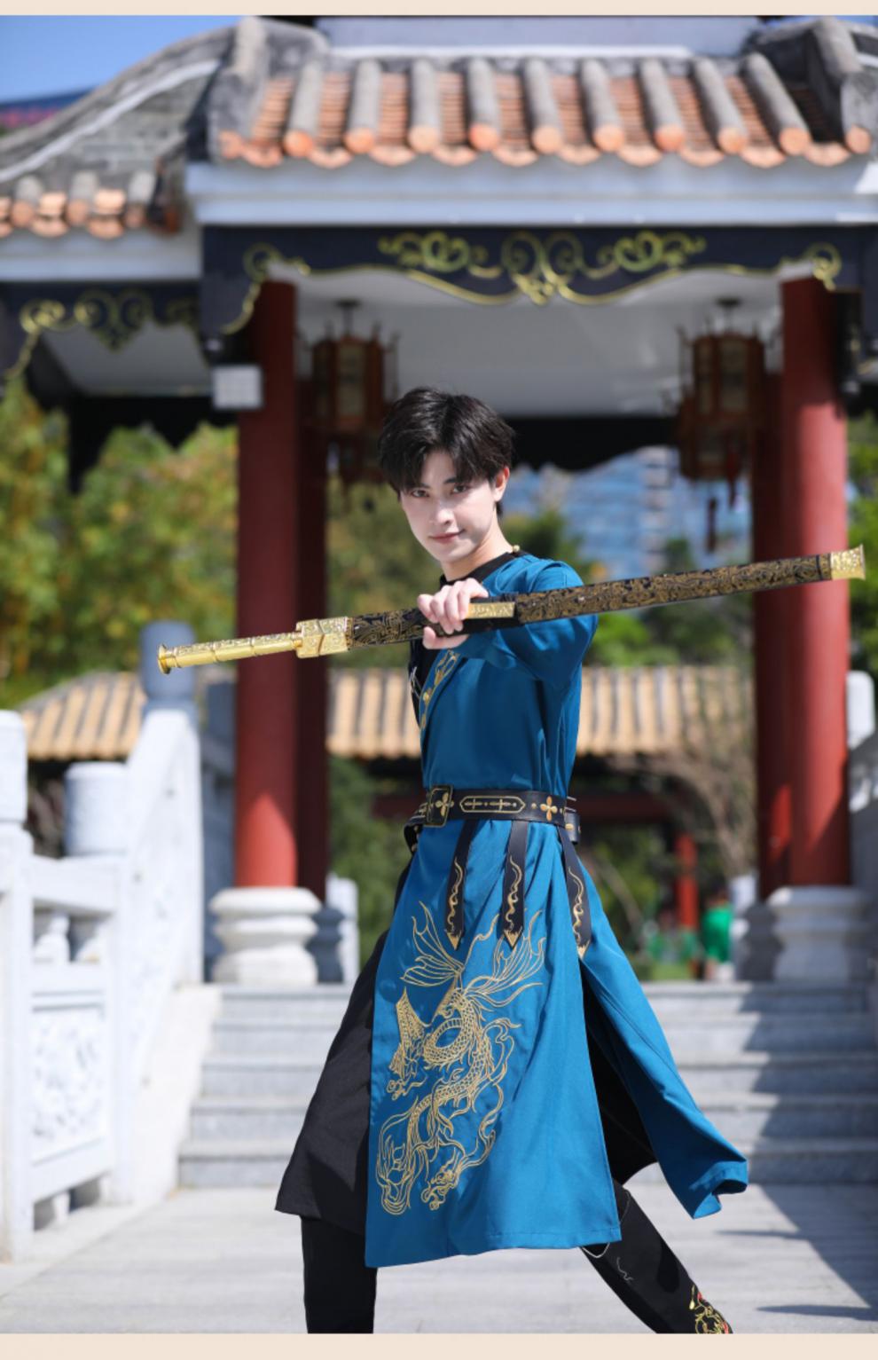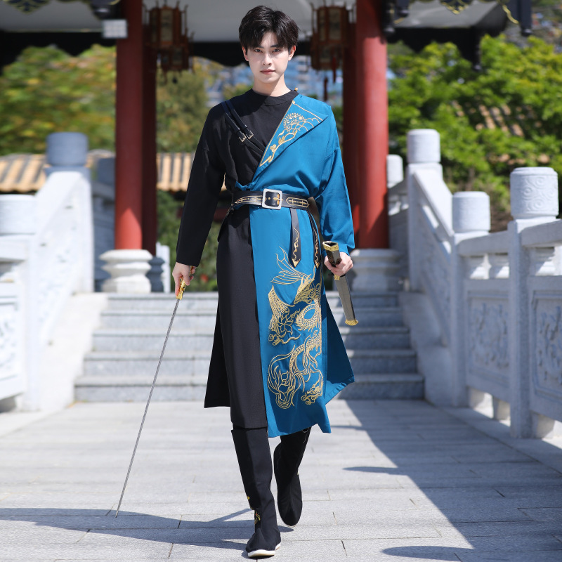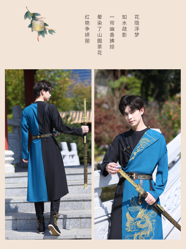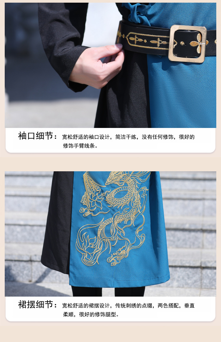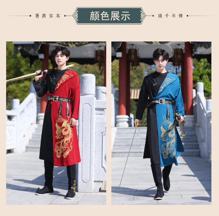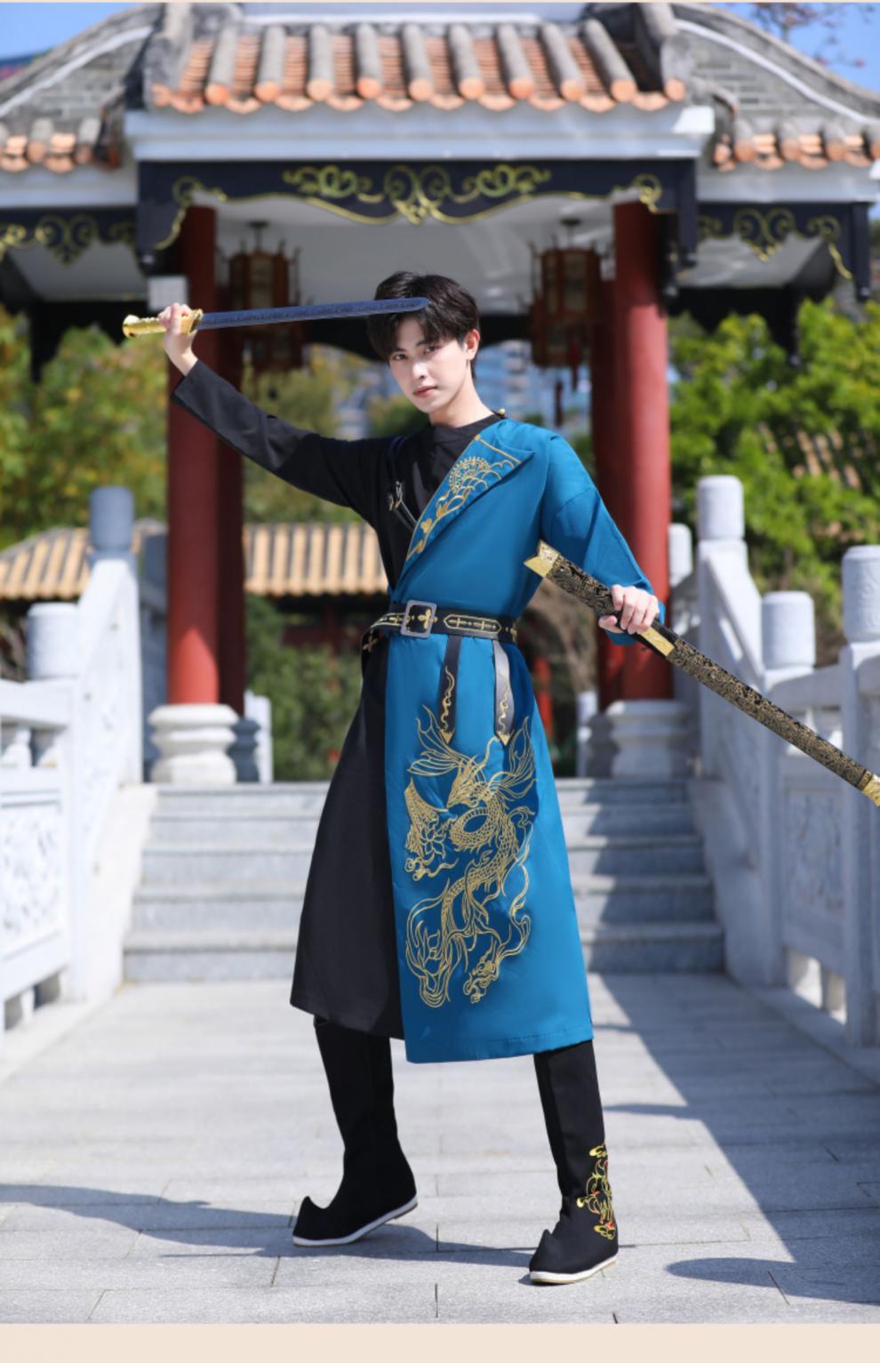 2022夏新款长袖男装汉服锦衣卫刺绣表演服班服绣花长衫腰带套装男