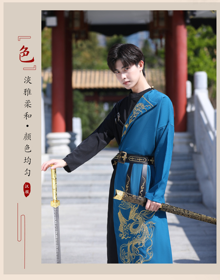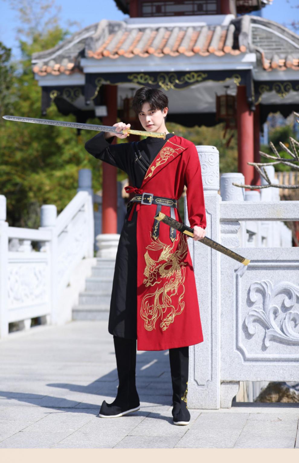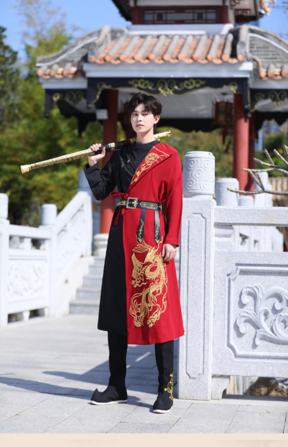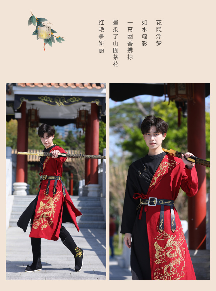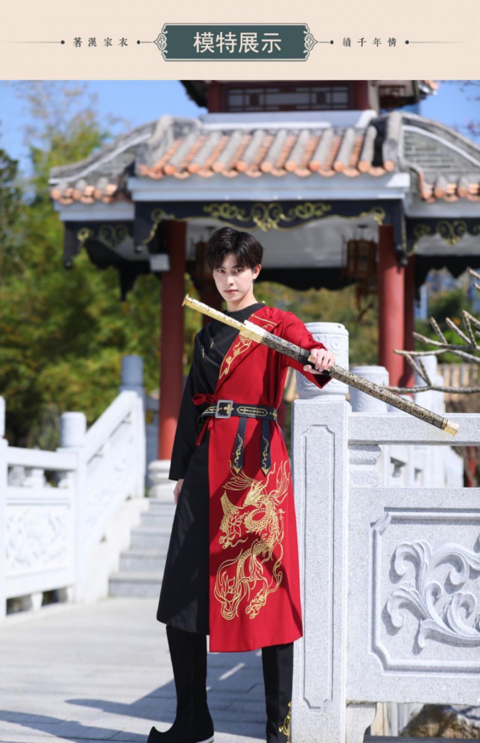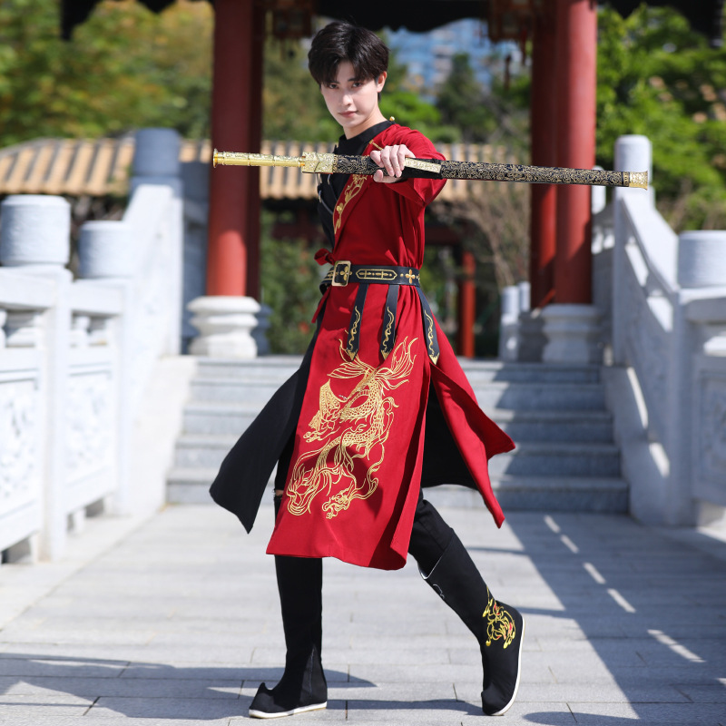 2022夏新款长袖男装汉服锦衣卫刺绣表演服班服绣花长衫腰带套装男