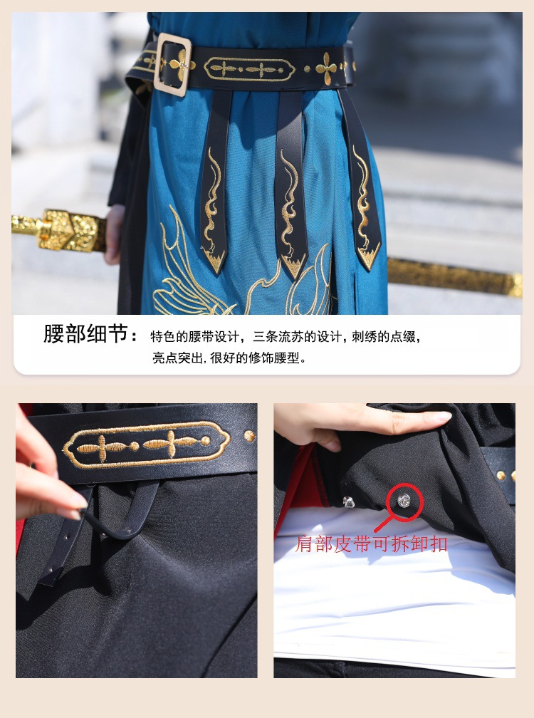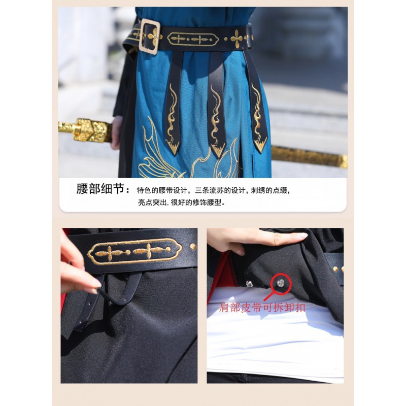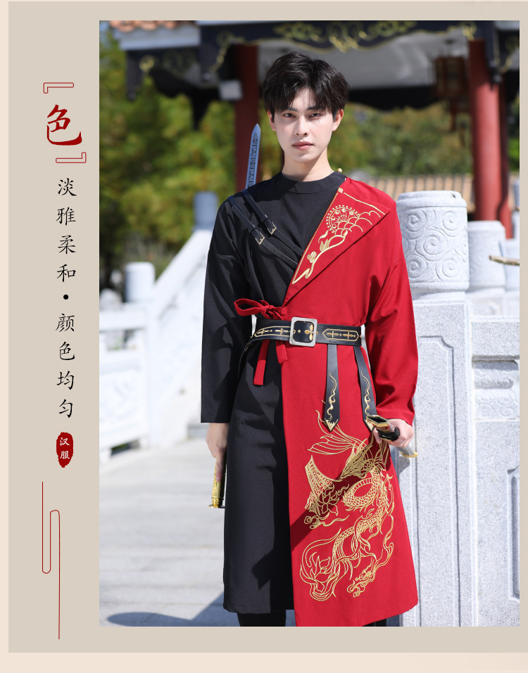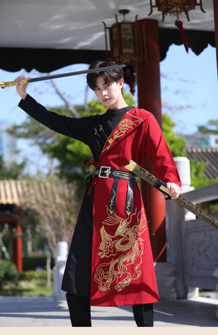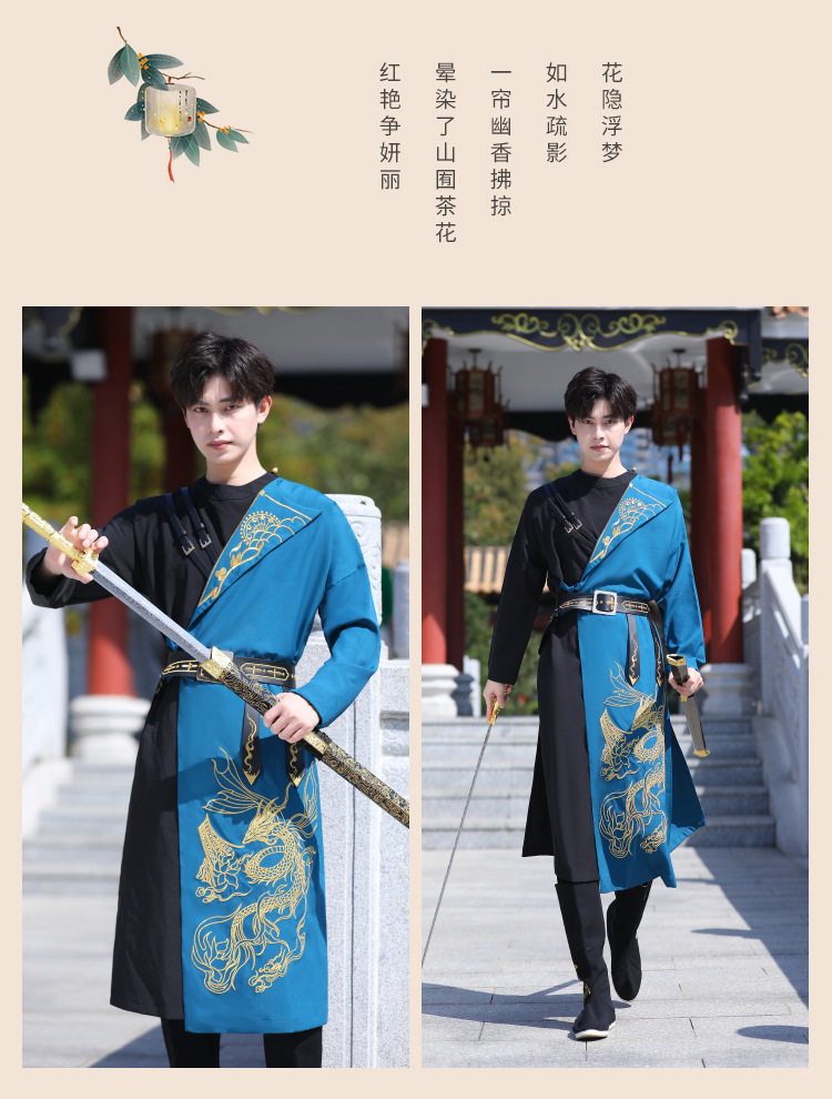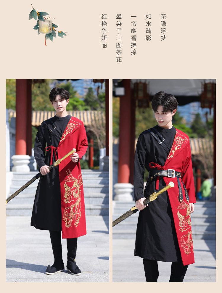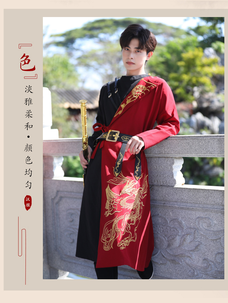 2022夏新款长袖男装汉服锦衣卫刺绣表演服班服绣花长衫腰带套装男