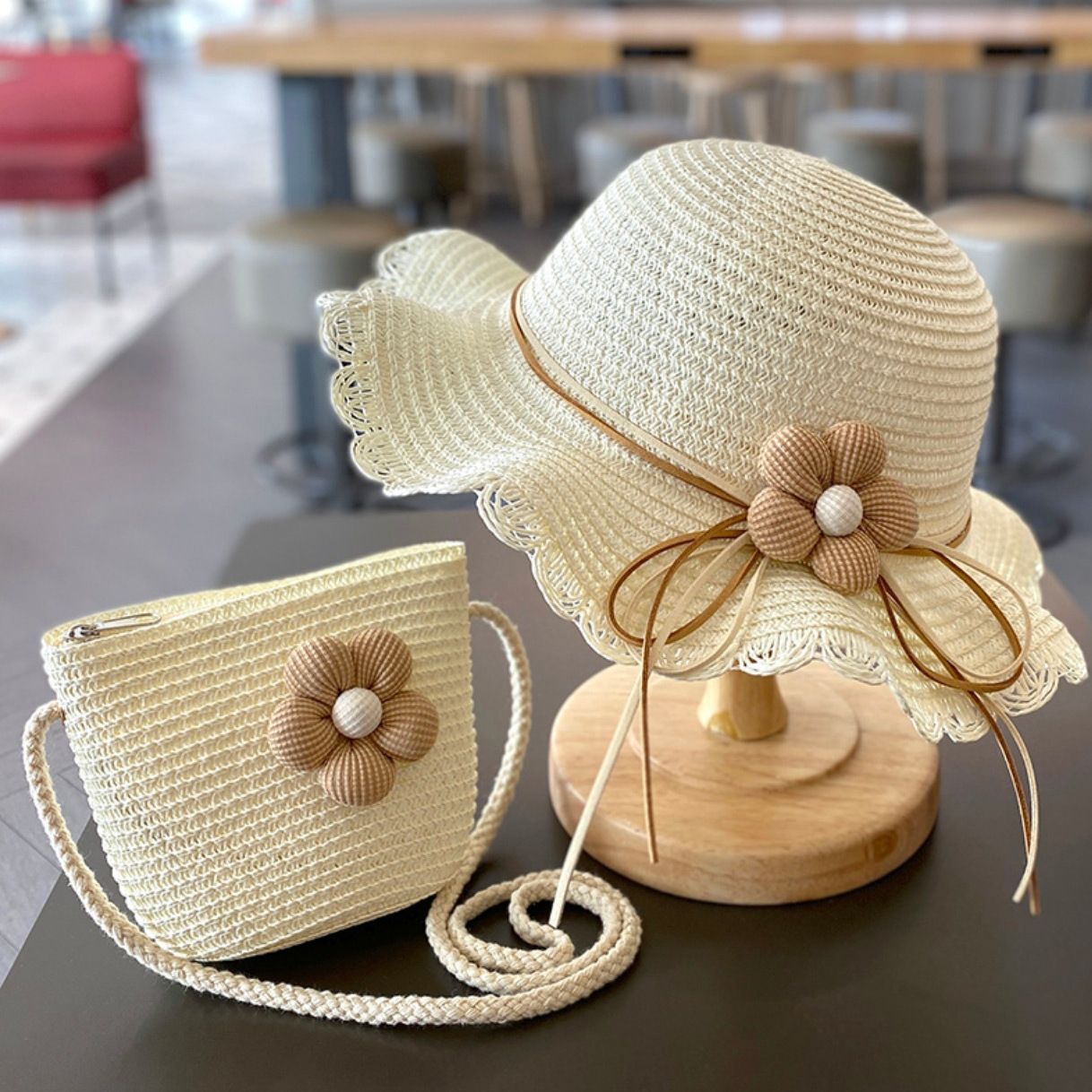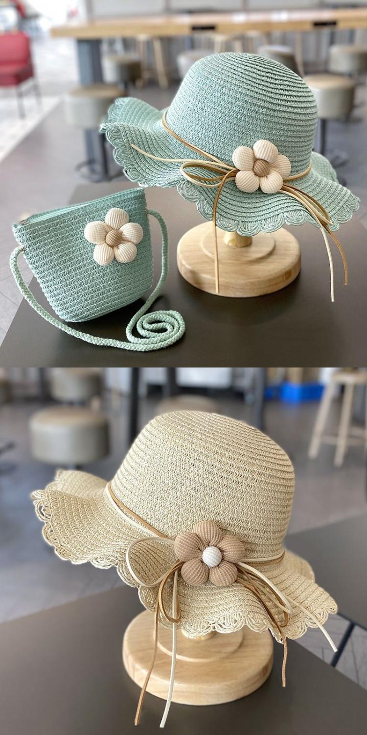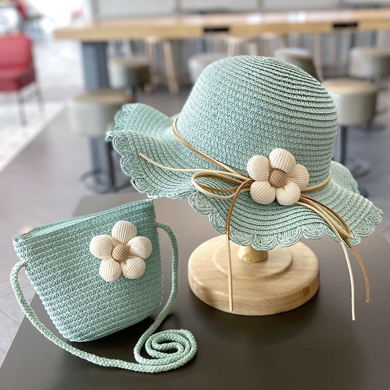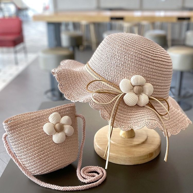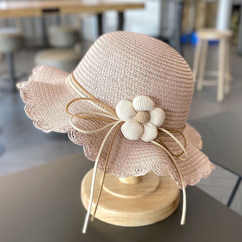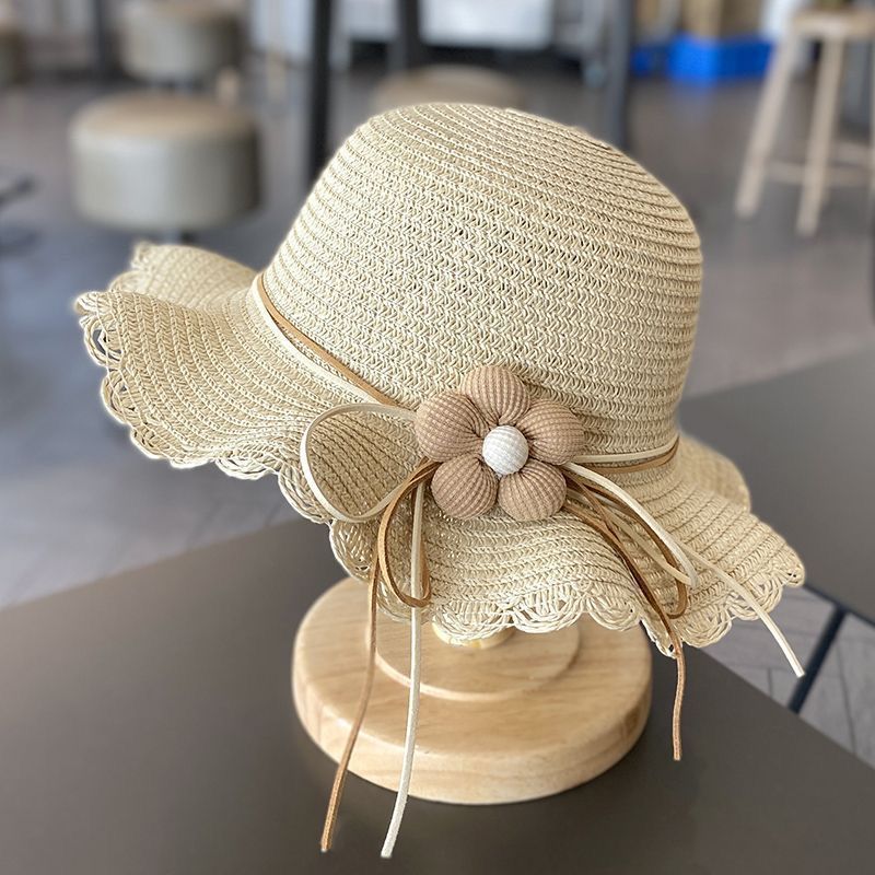 夏天女童遮阳草帽小女孩夏款公主沙滩防晒大檐帽子女宝渔夫帽批发