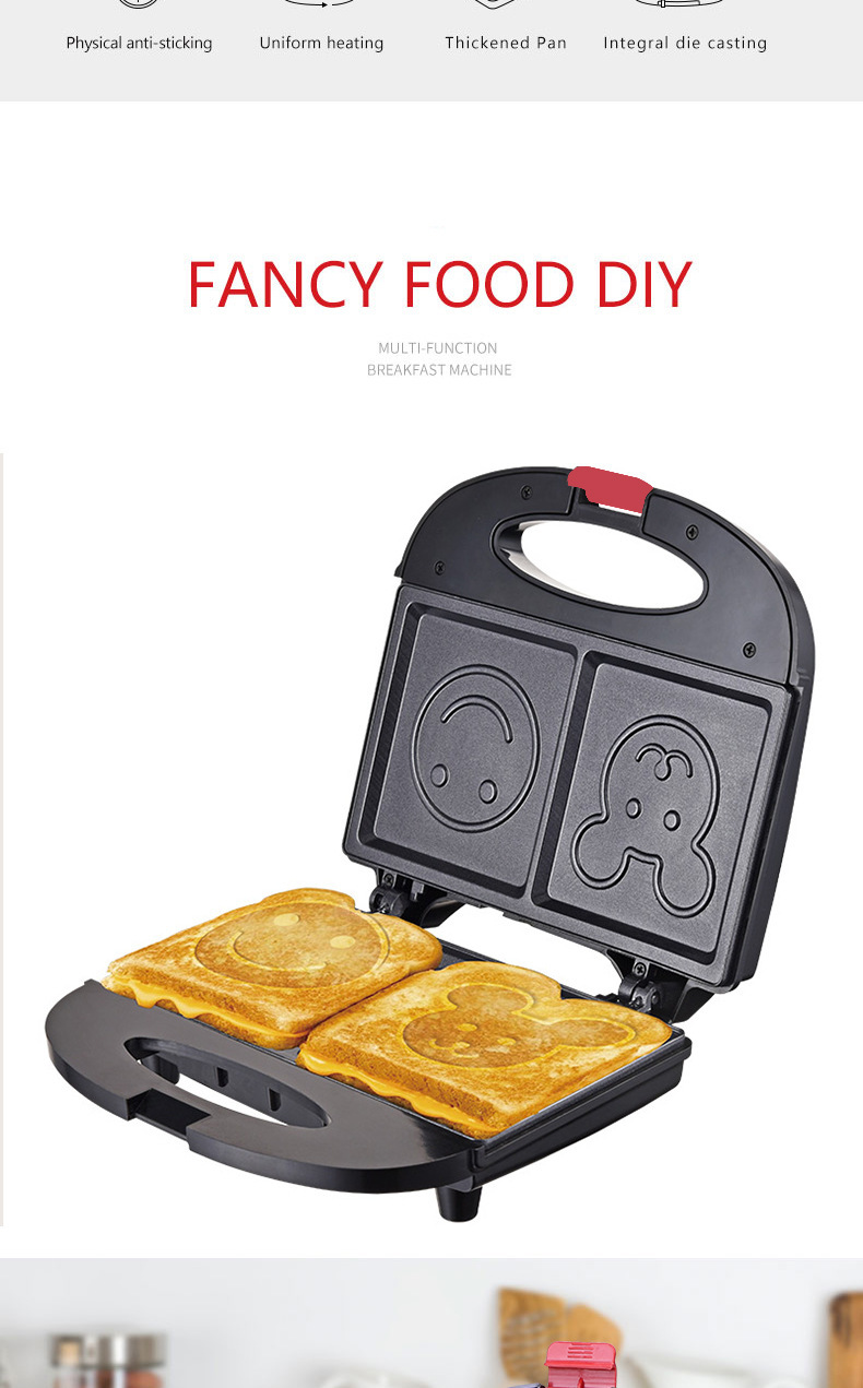110V美规家用三明治华夫机笑脸卡通图案面包机多士炉早餐机饼干机Update time: