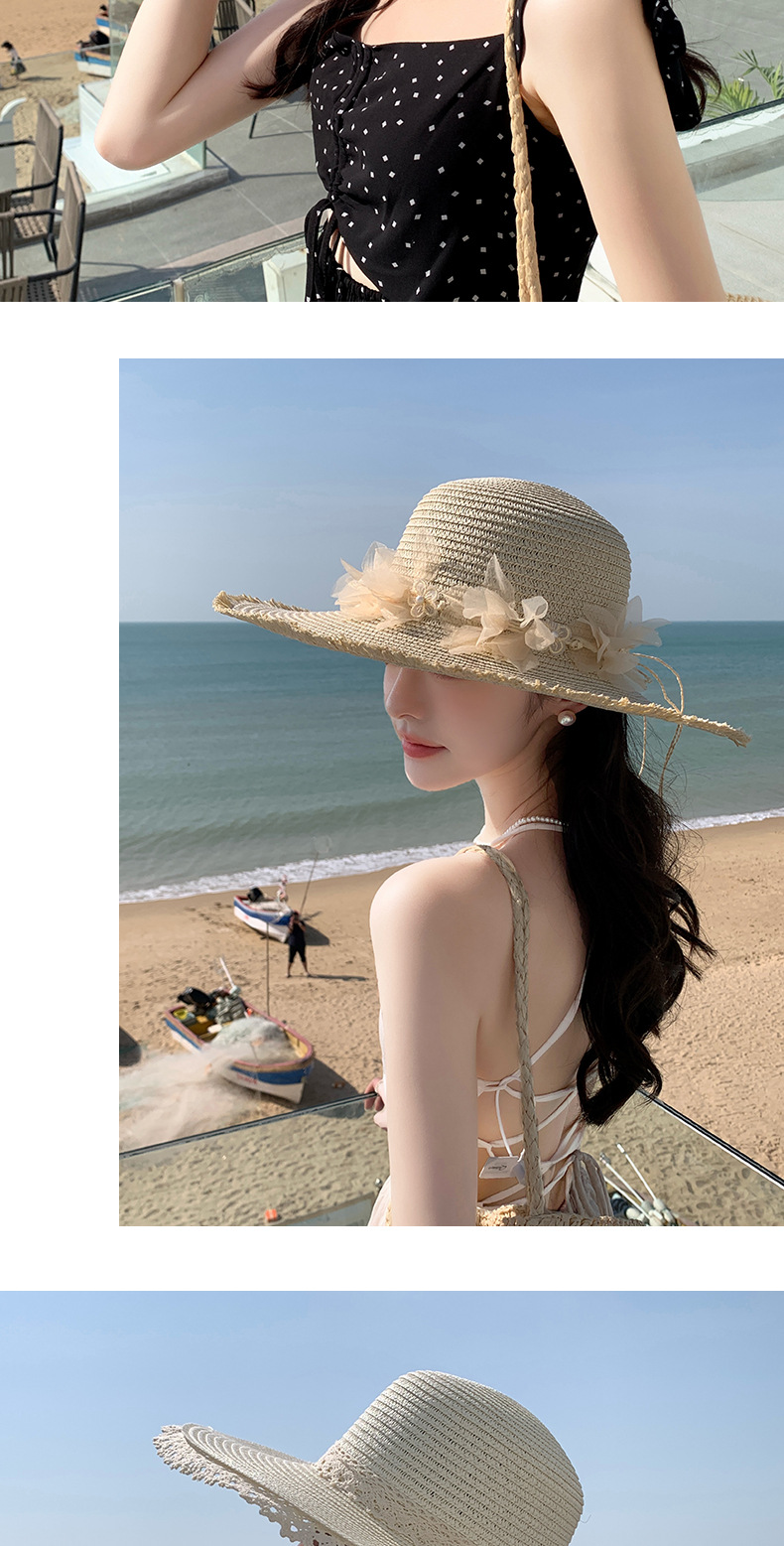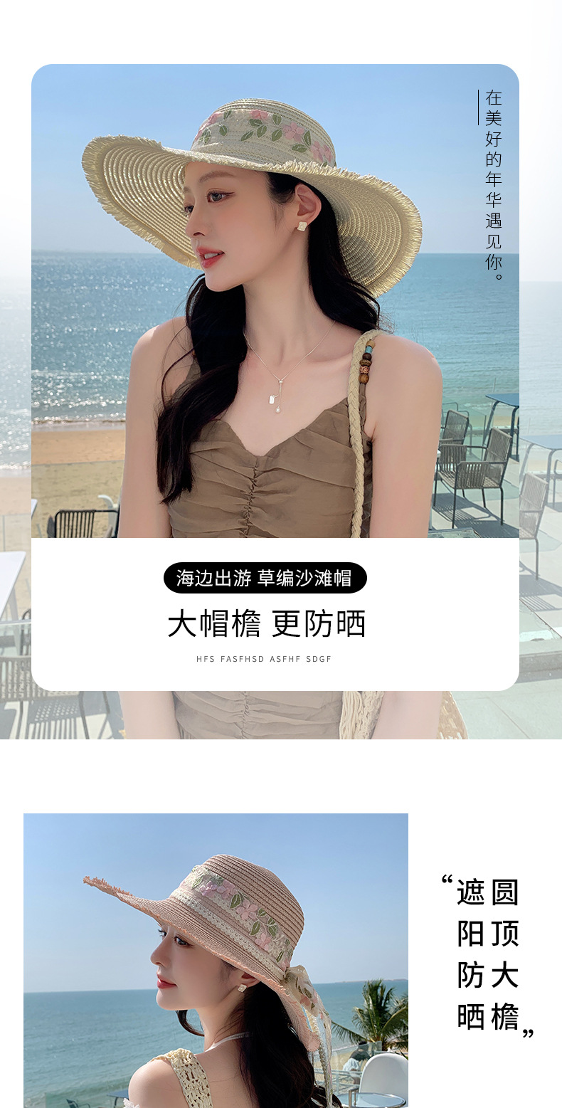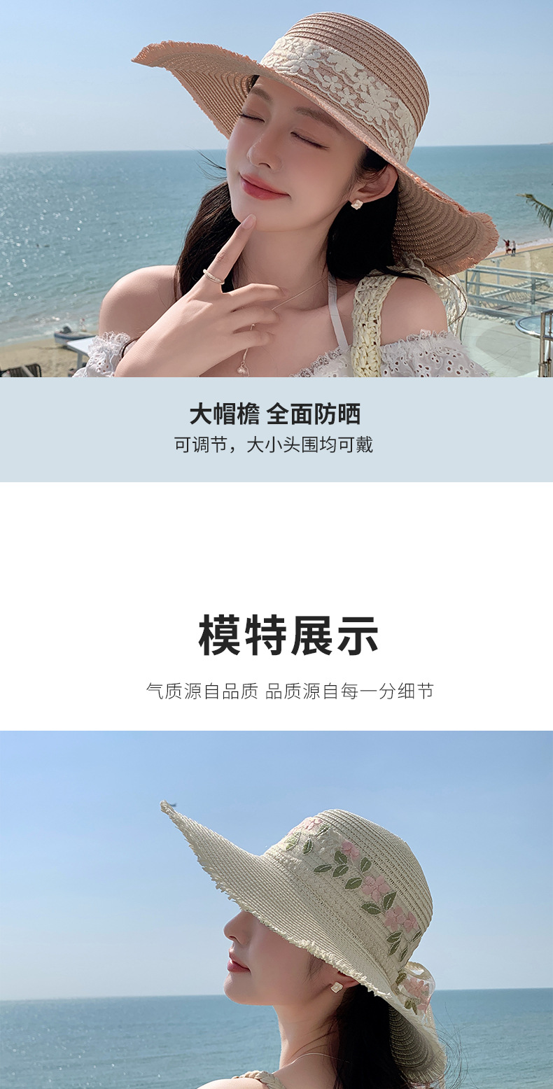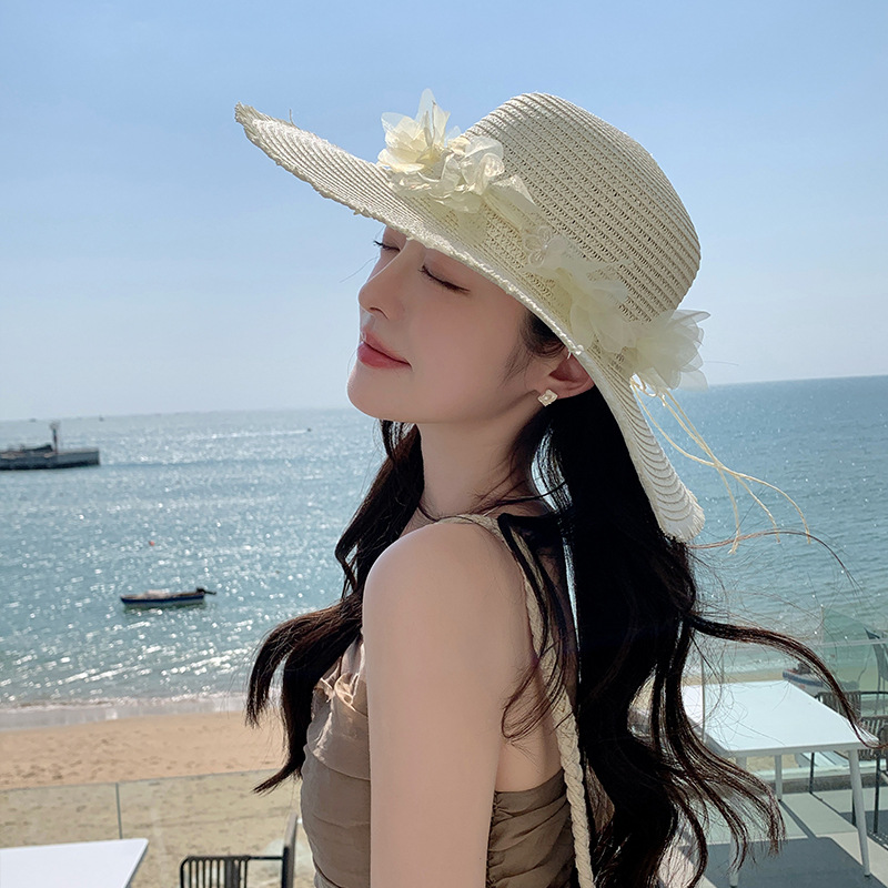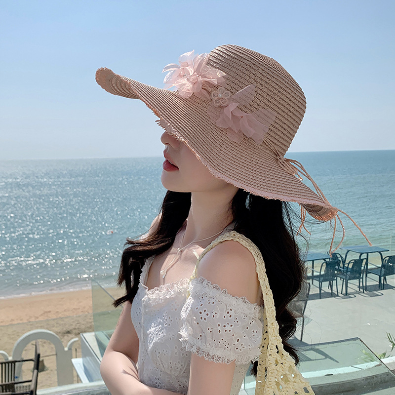 新款帽子女花朵草帽夏季大帽檐遮阳防晒帽海边度假沙滩太阳帽网红