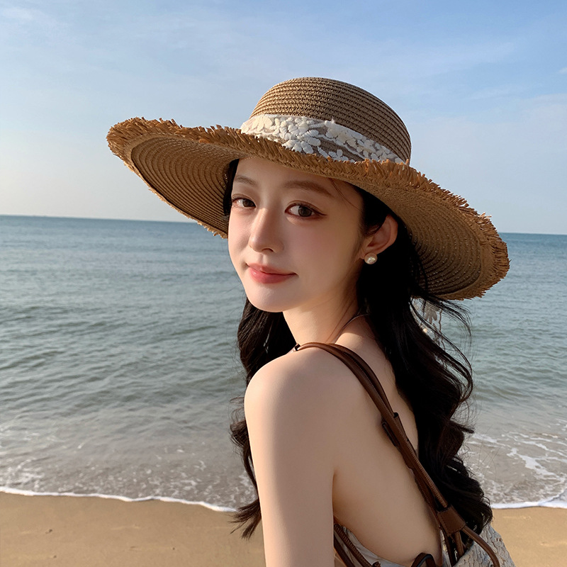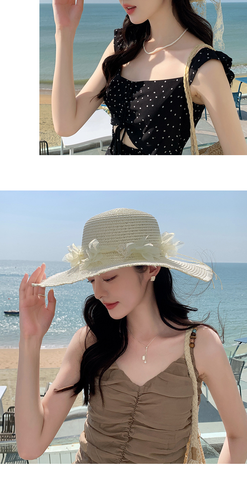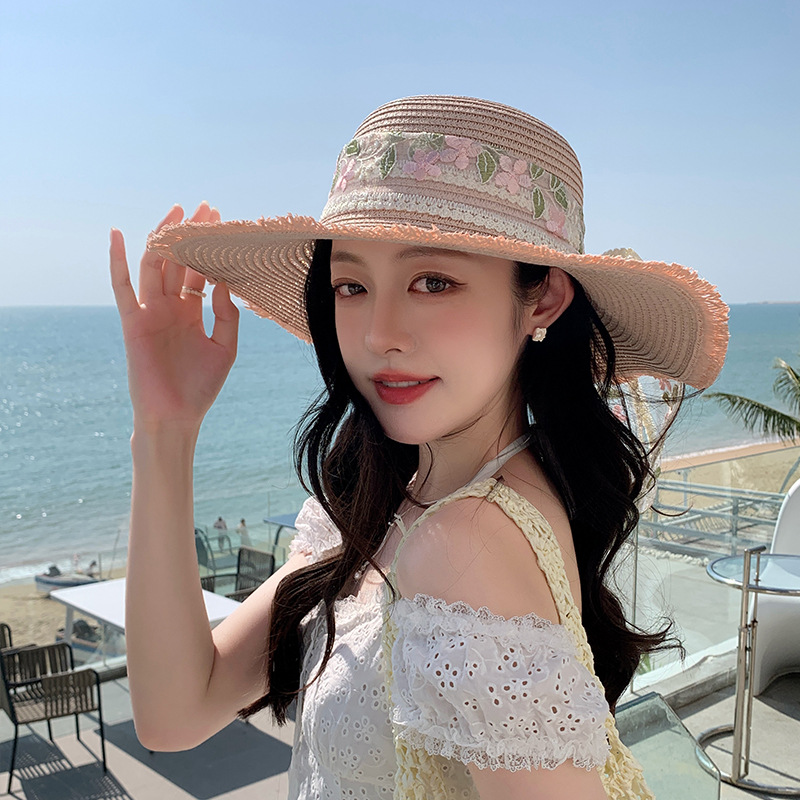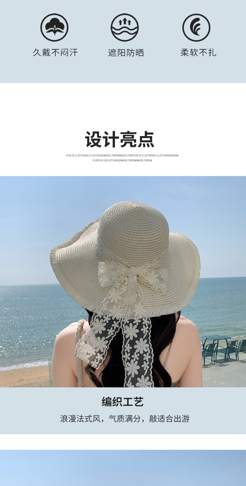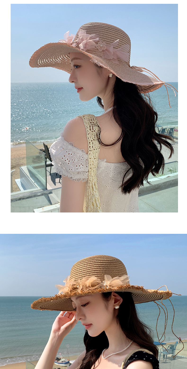 新款帽子女花朵草帽夏季大帽檐遮阳防晒帽海边度假沙滩太阳帽网红