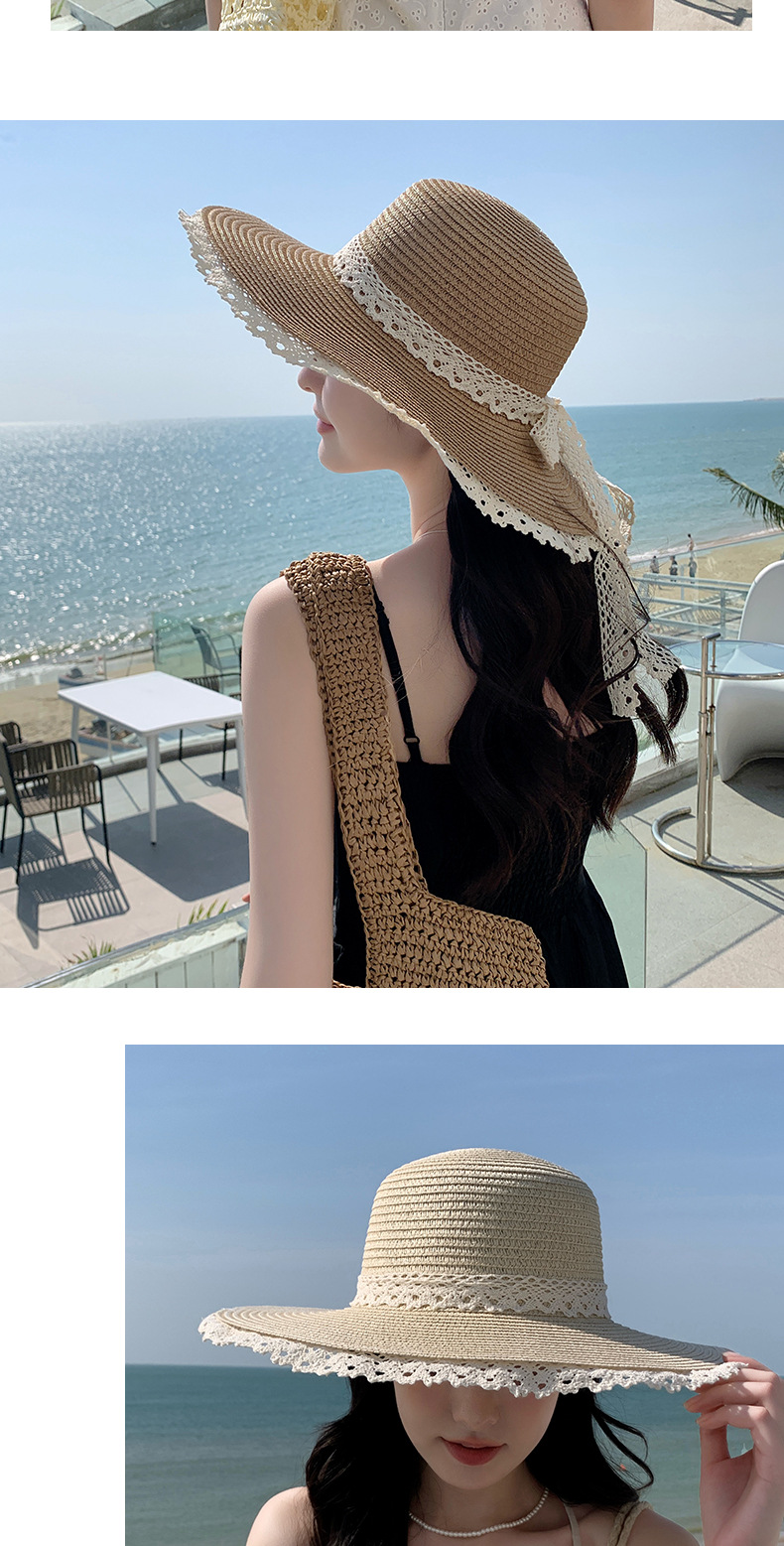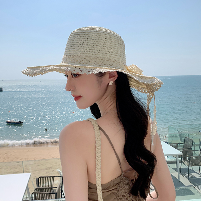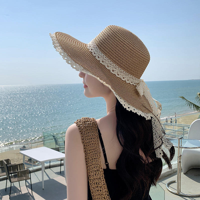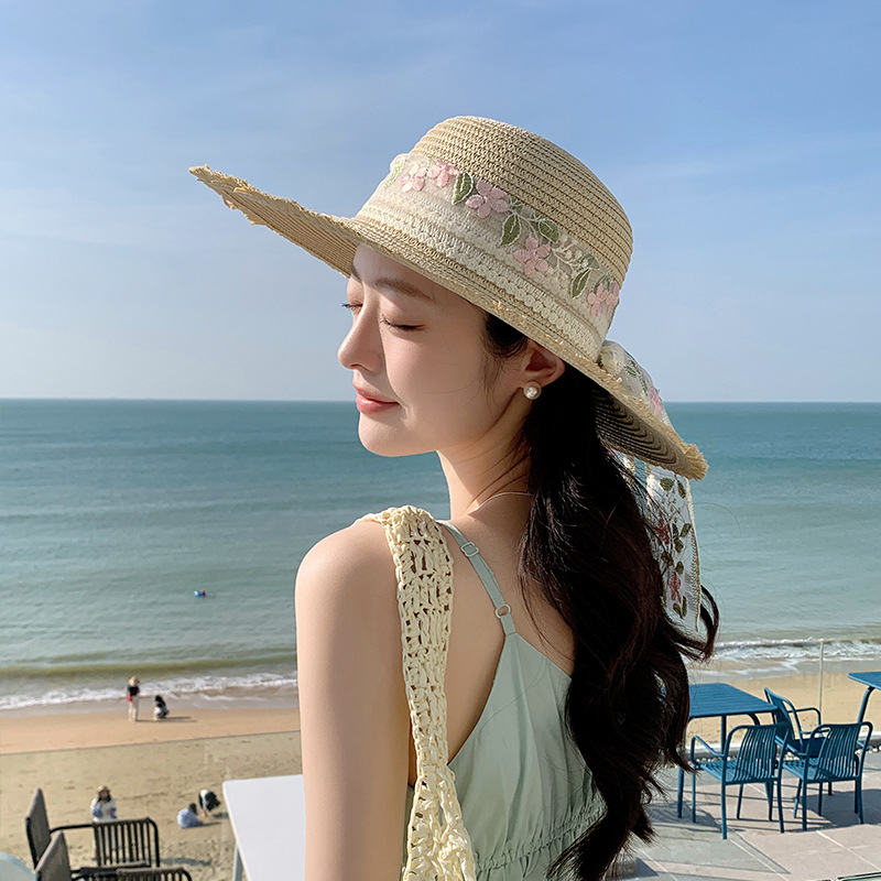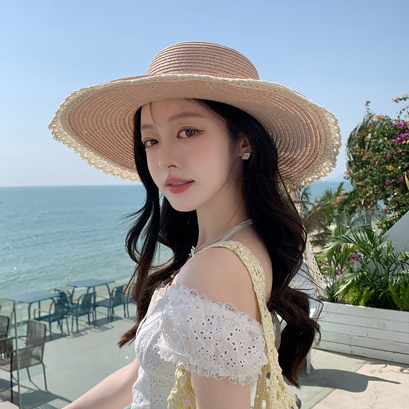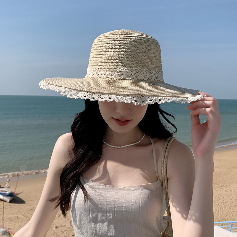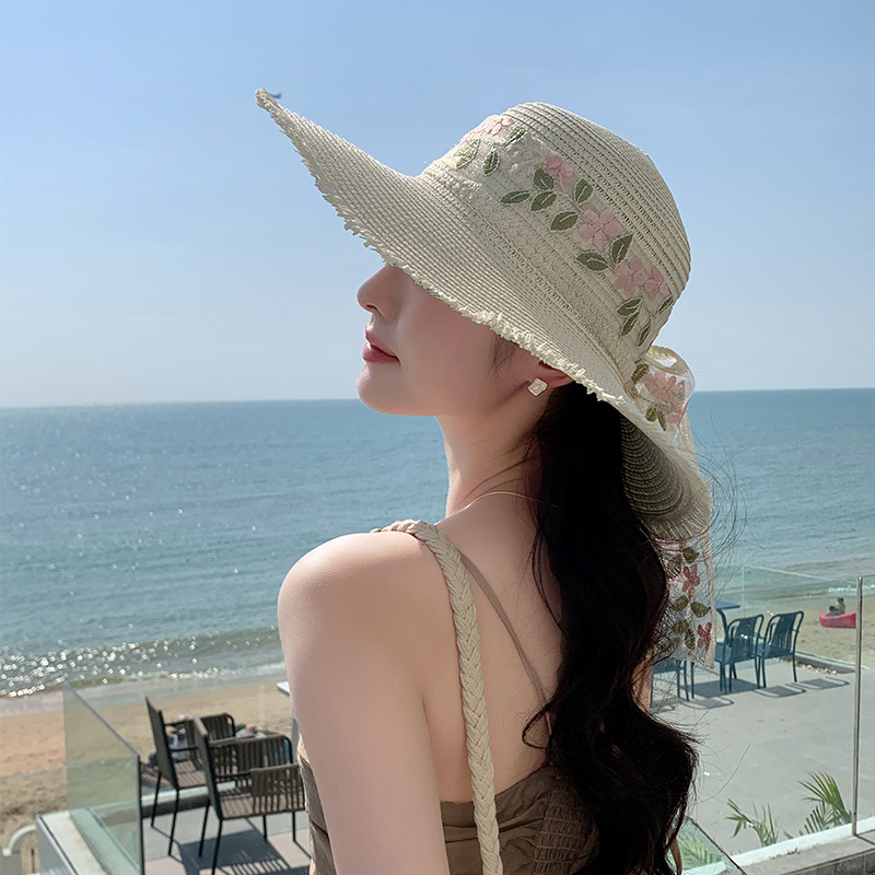 新款帽子女花朵草帽夏季大帽檐遮阳防晒帽海边度假沙滩太阳帽网红