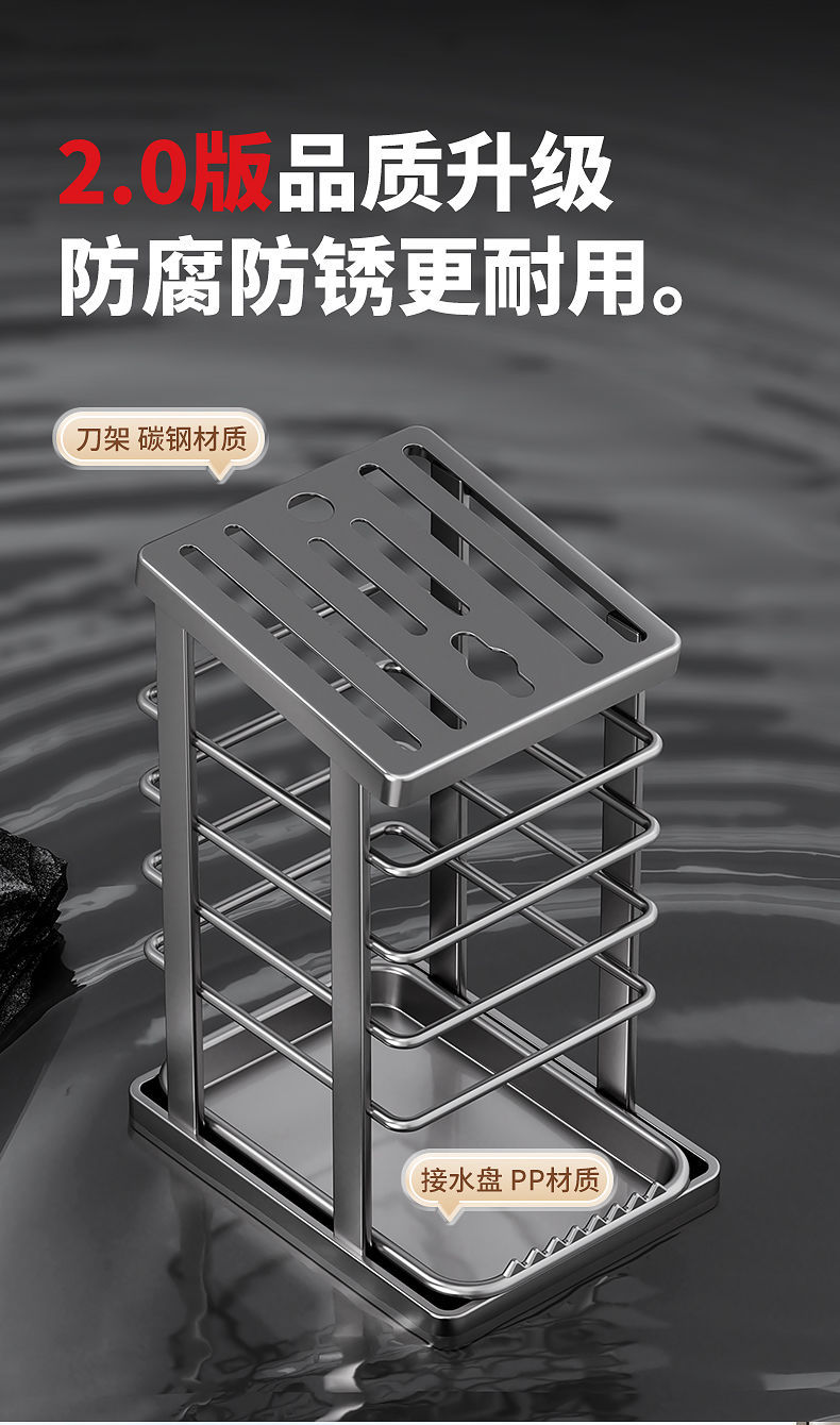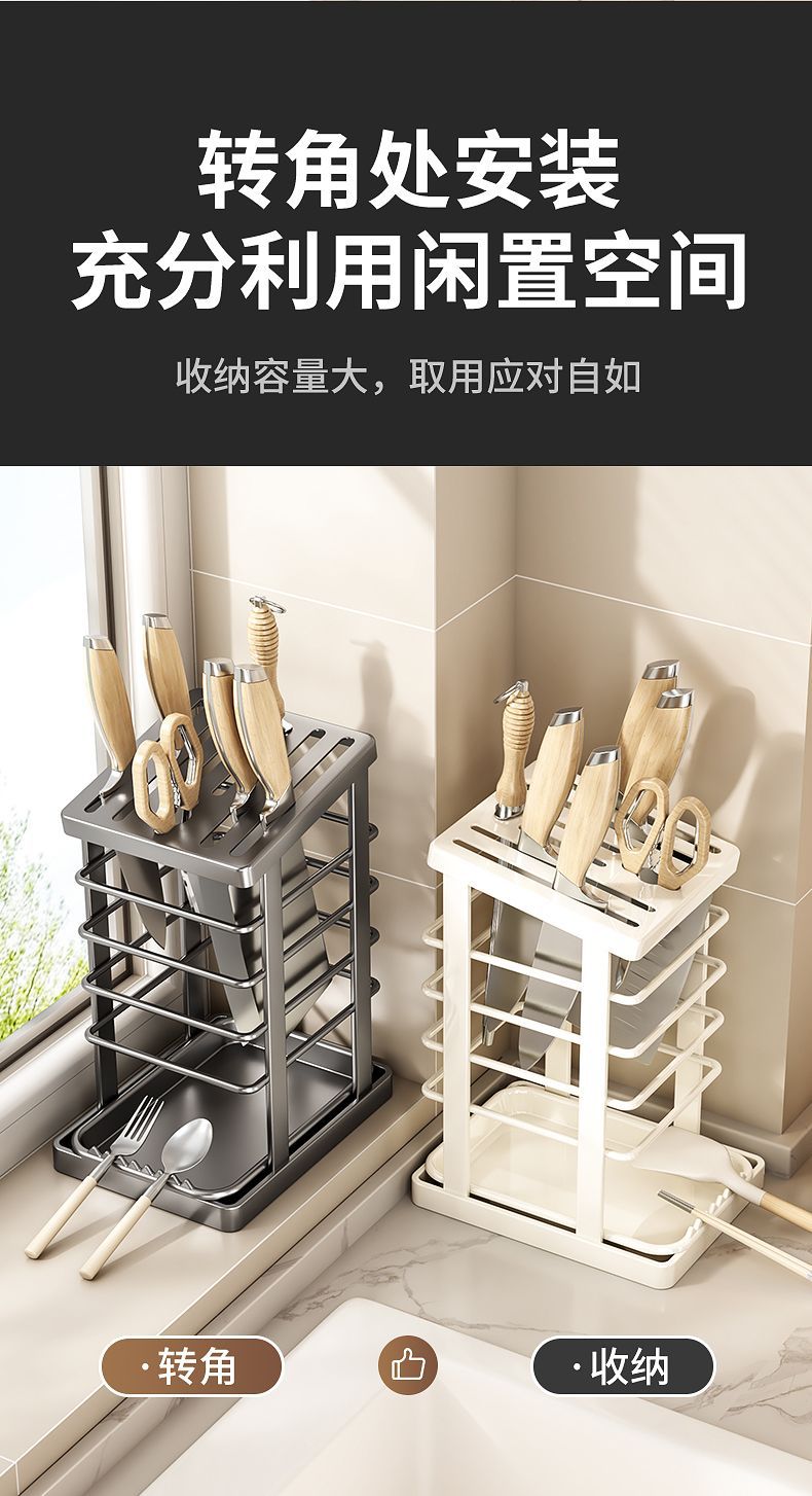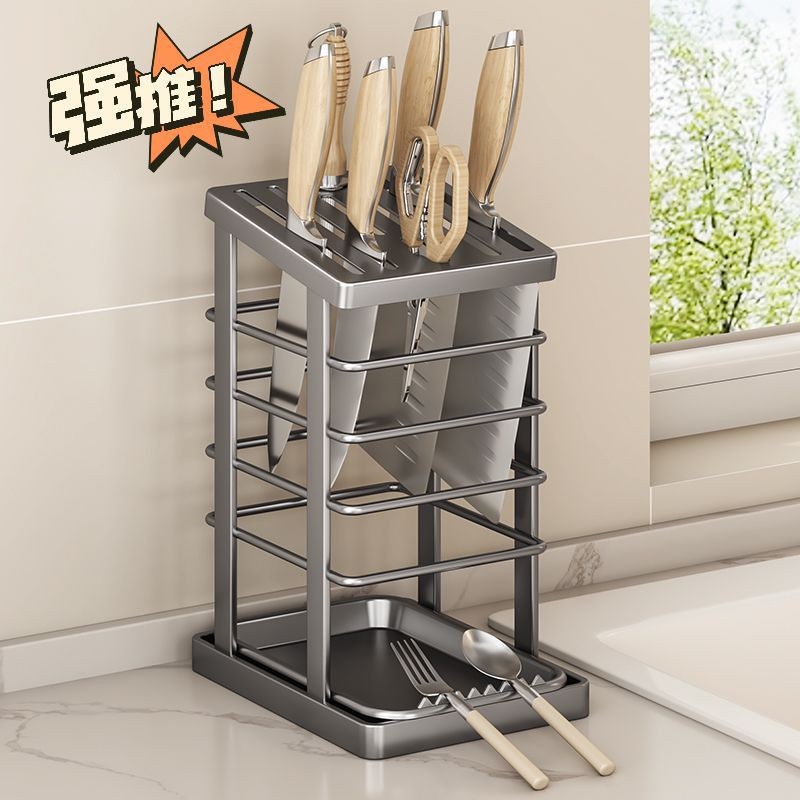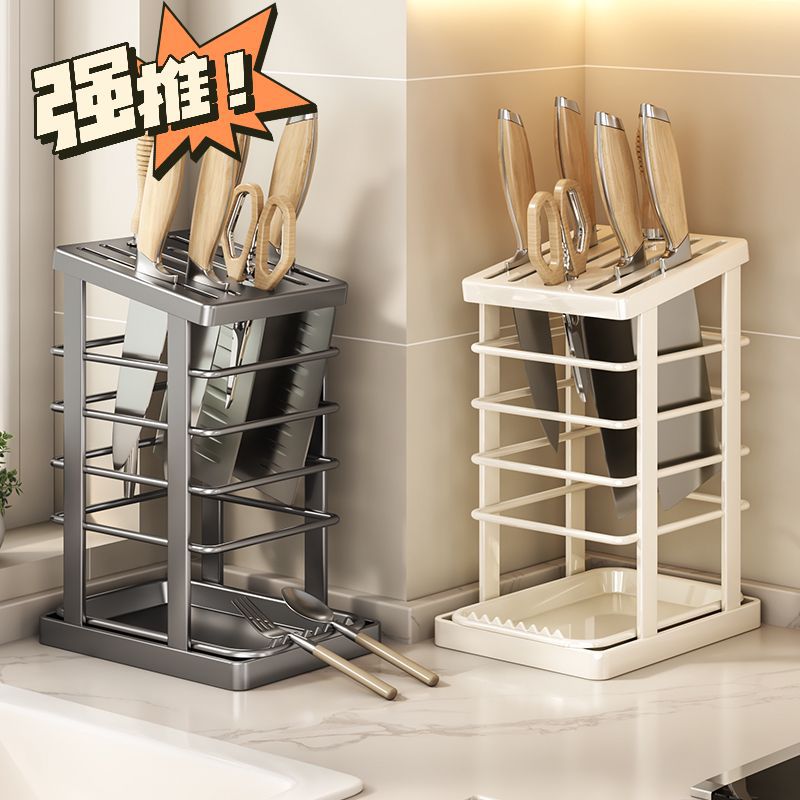厨房刀架置物架2024新款台面沥水一体刀具收纳架菜刀架子家用刀座