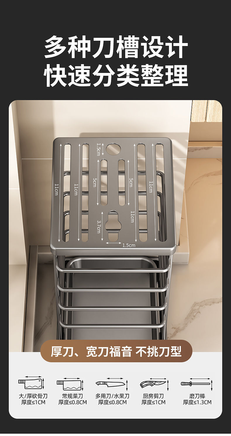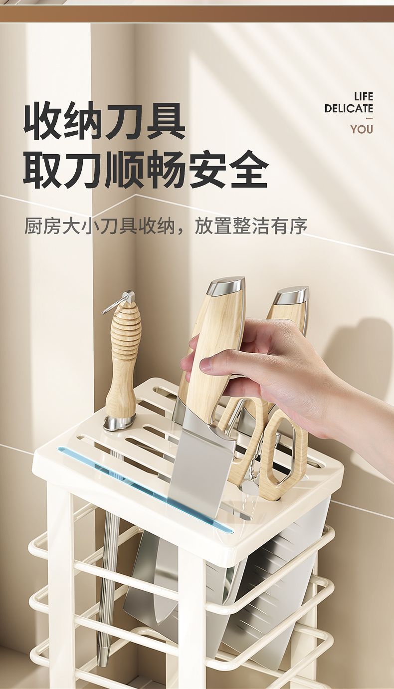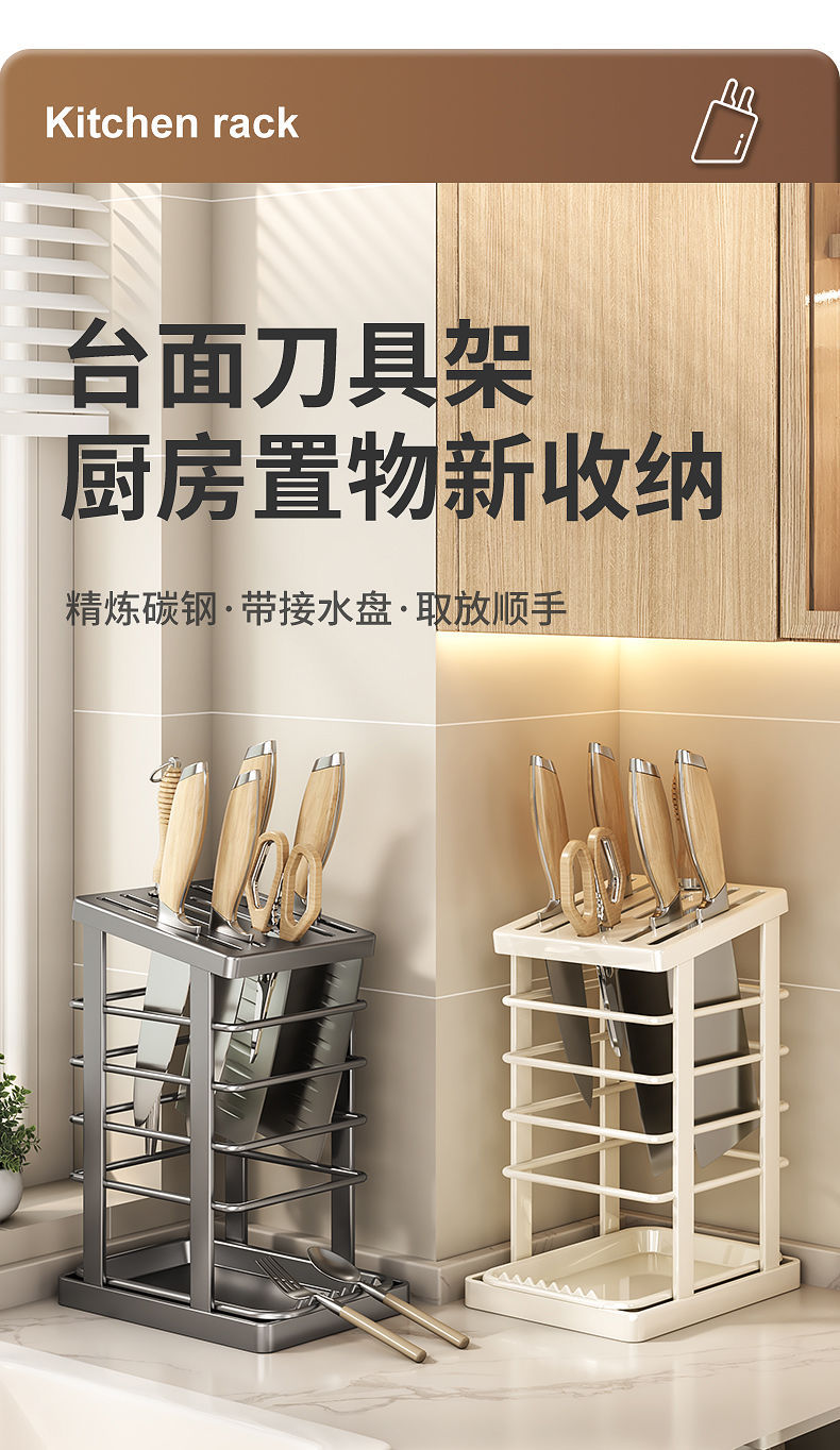 厨房刀架置物架2024新款台面沥水一体刀具收纳架菜刀架子家用刀座