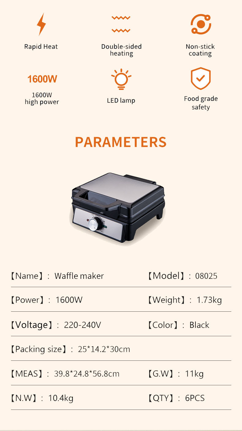 跨境大号单板两片华夫饼机吐司机烤面包机蛋糕早餐机Waffle maker