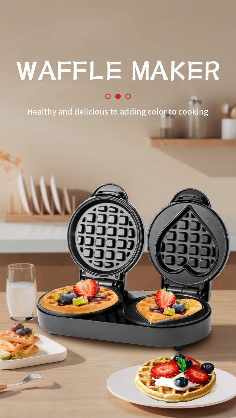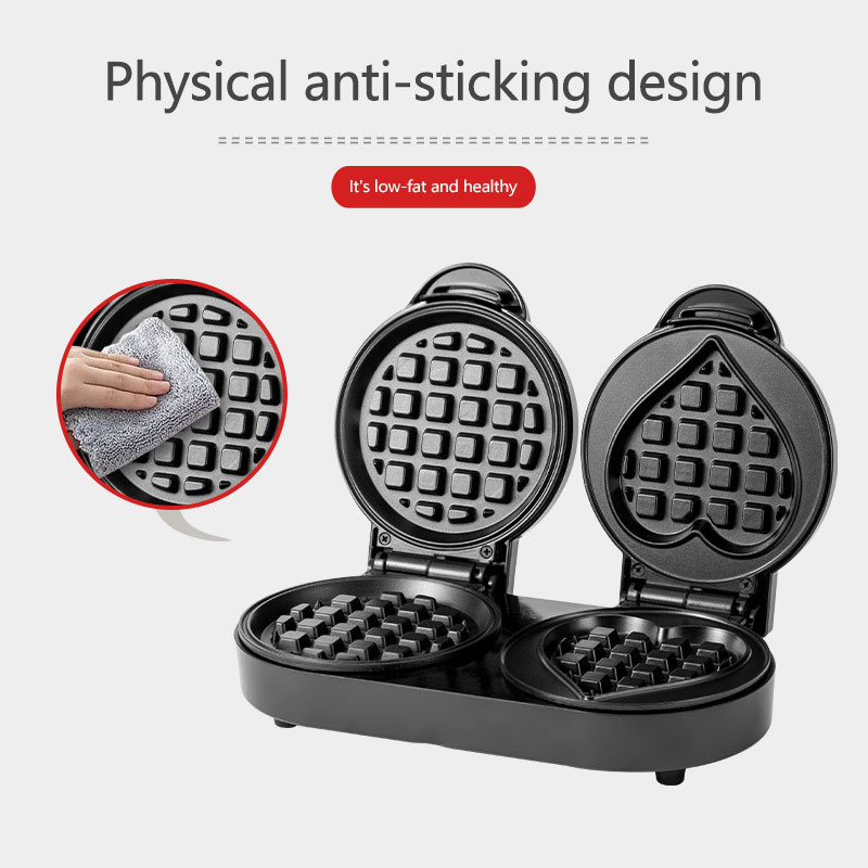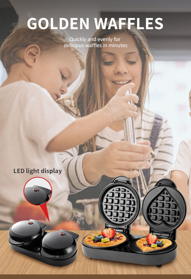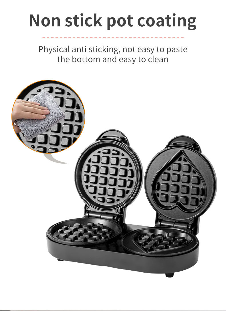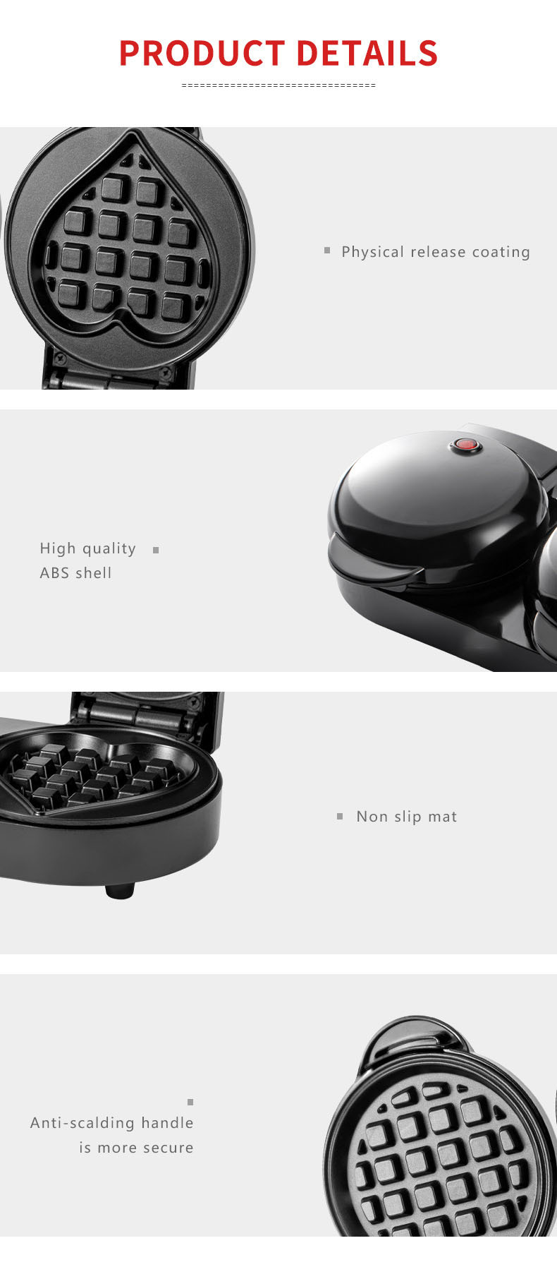欧规跨境家用早餐机华夫饼机小型便捷迷你爱心形圆形蛋糕机电饼档