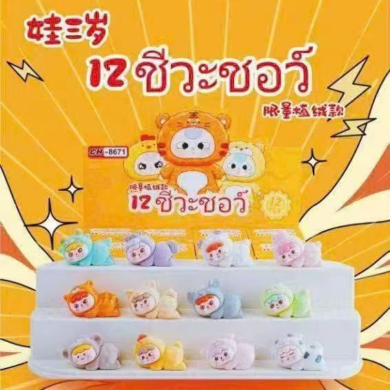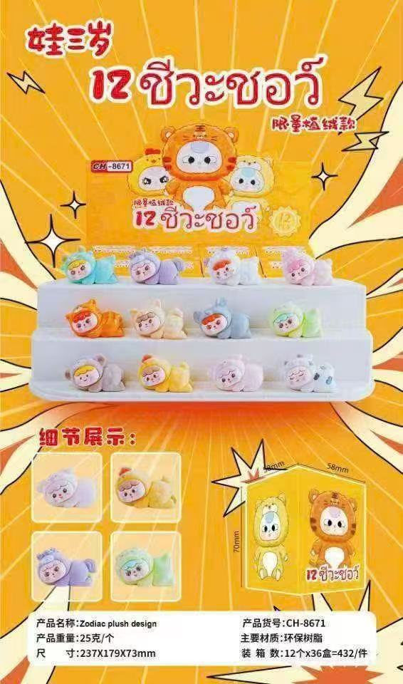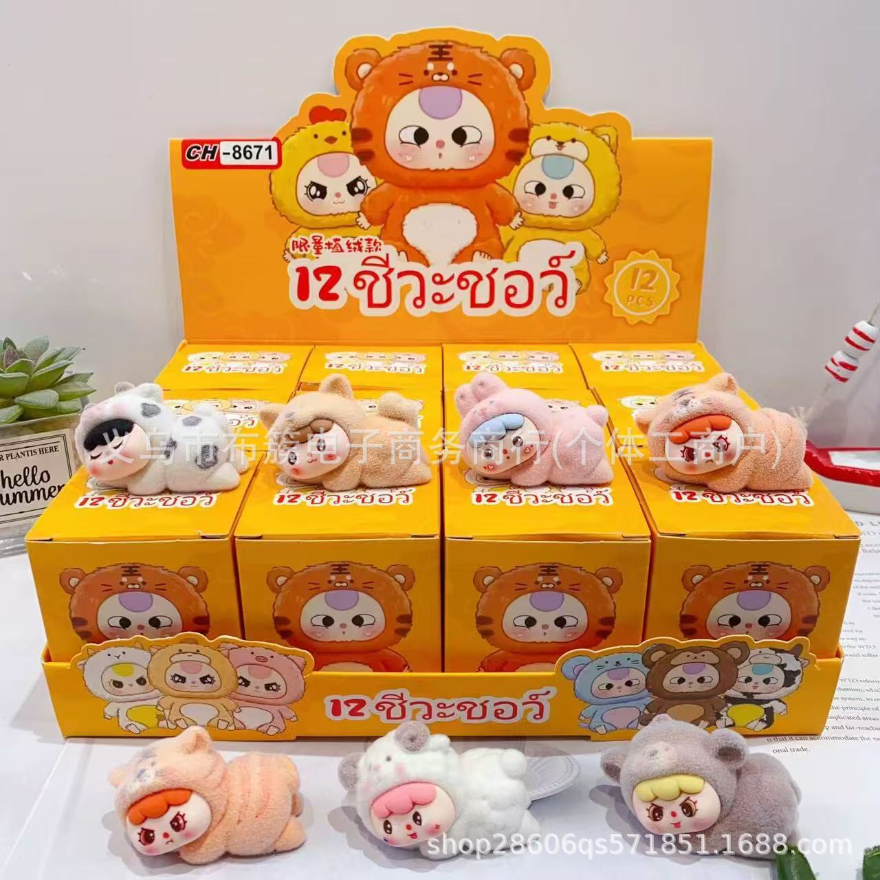 新款娃三岁十二生肖款外贸爆款12入植绒公仔盲盒手办儿童礼品玩具