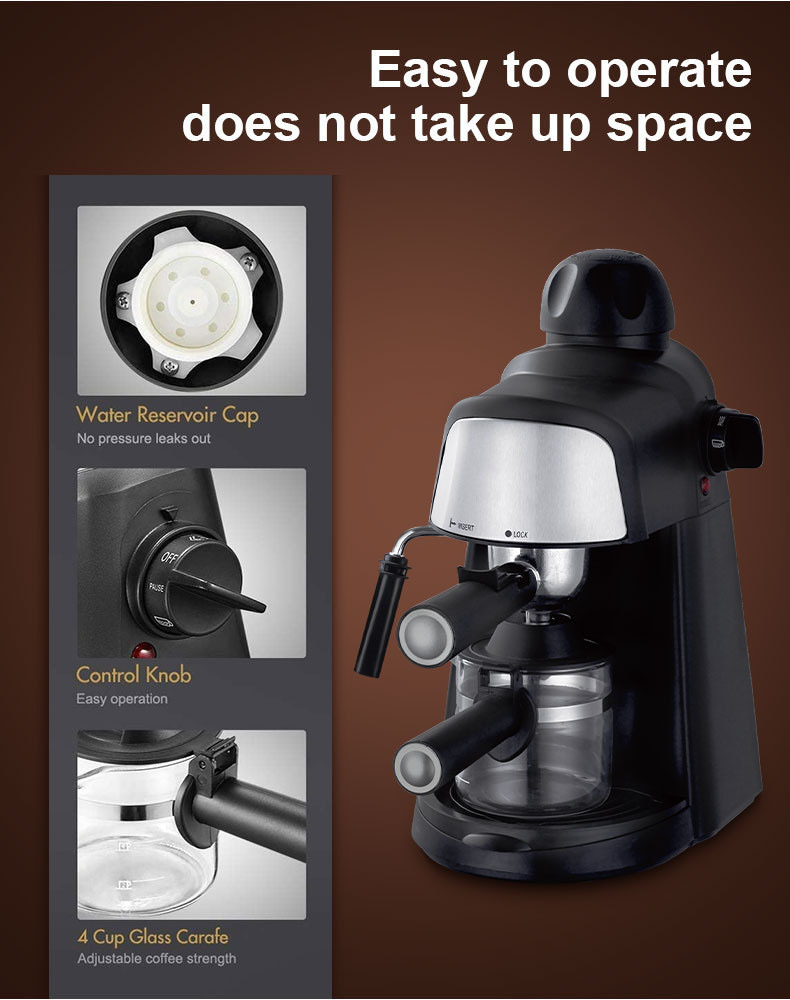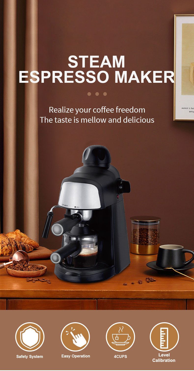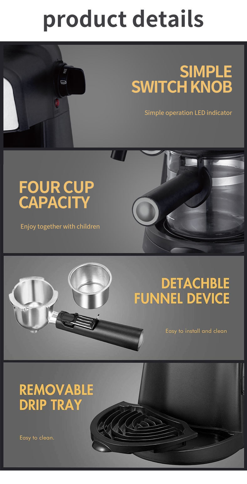 外贸热卖多功能咖啡机 家用浓缩美式意式半自动蒸汽打奶泡咖啡壶