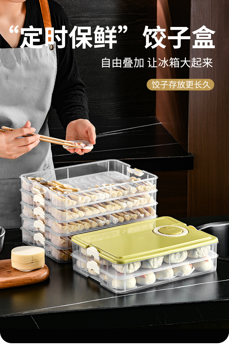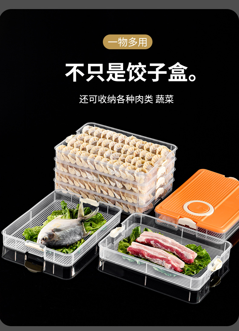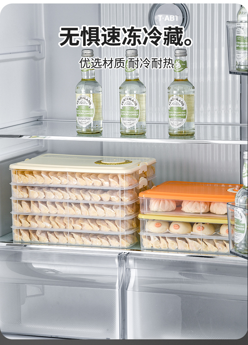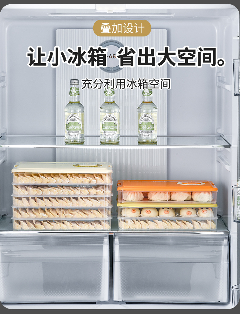 冰箱可叠加保鲜收纳盒 饺子速冻冷冻盒 带盖托盘保鲜整理储物盒