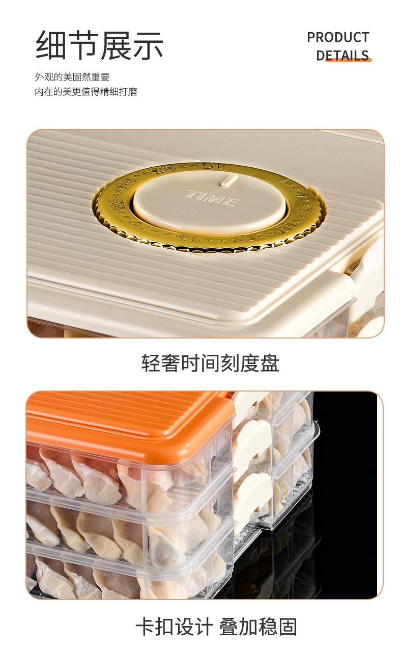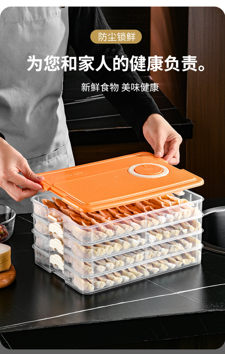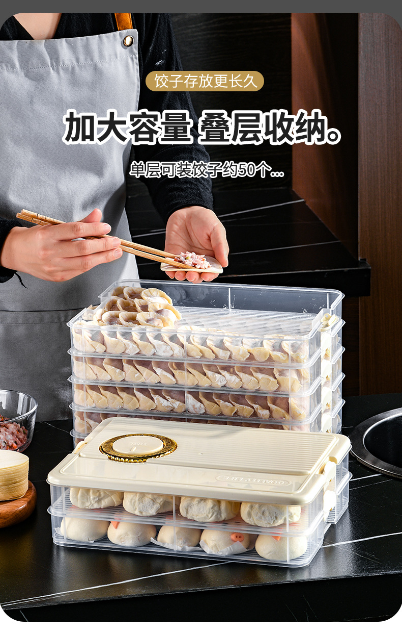 冰箱可叠加保鲜收纳盒 饺子速冻冷冻盒 带盖托盘保鲜整理储物盒