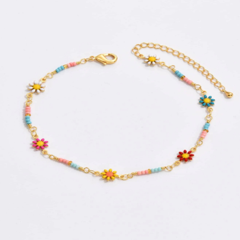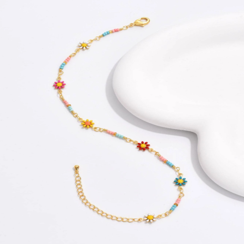 欧美跨境新品脚饰 时尚简约彩色菊花脚链波西米亚风沙滩花朵脚链